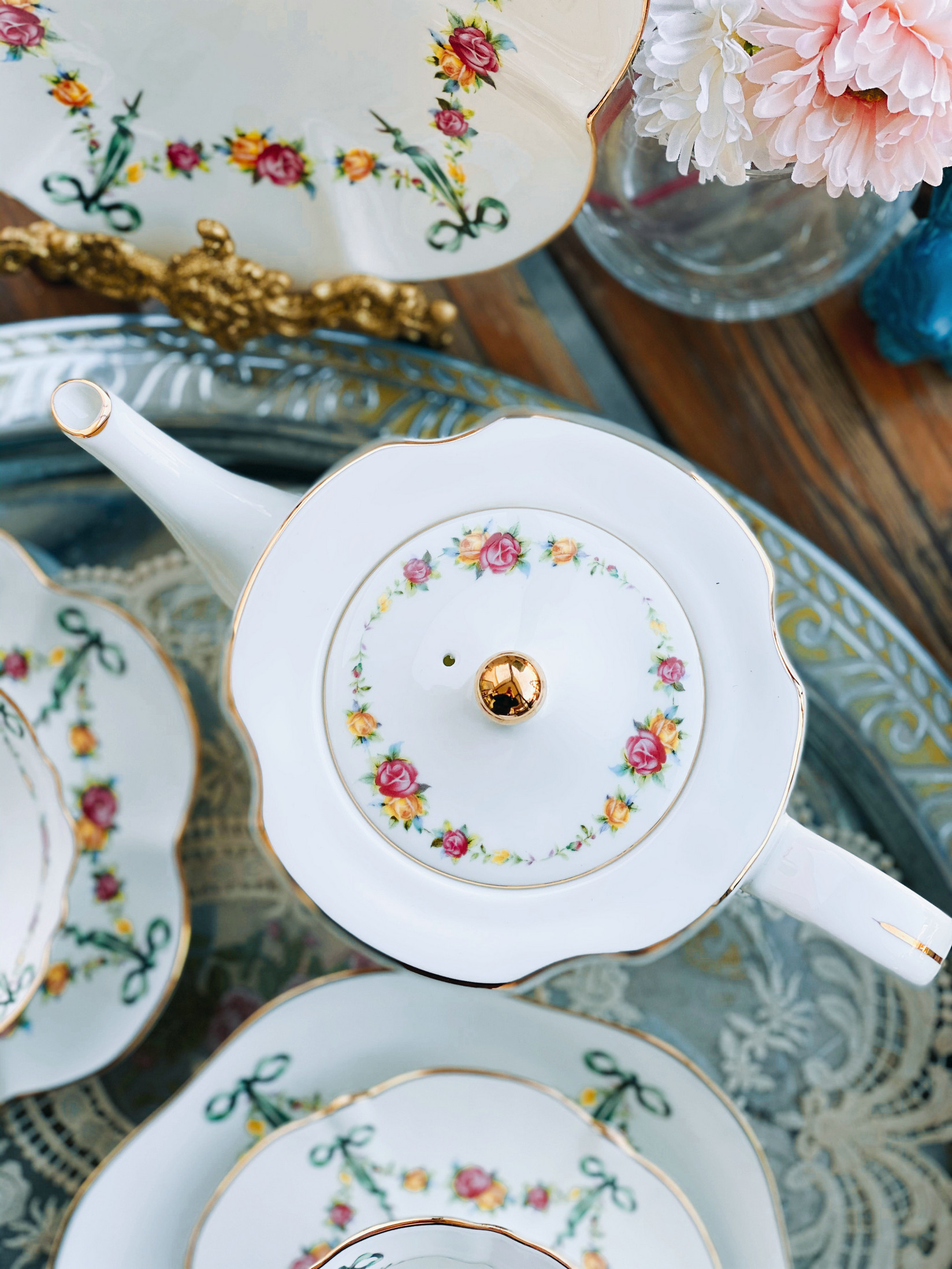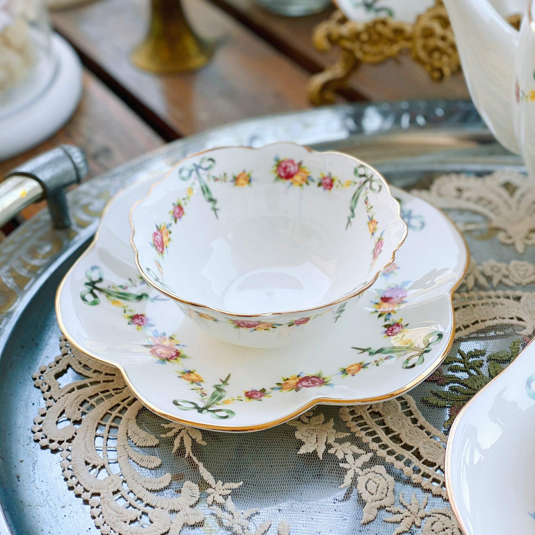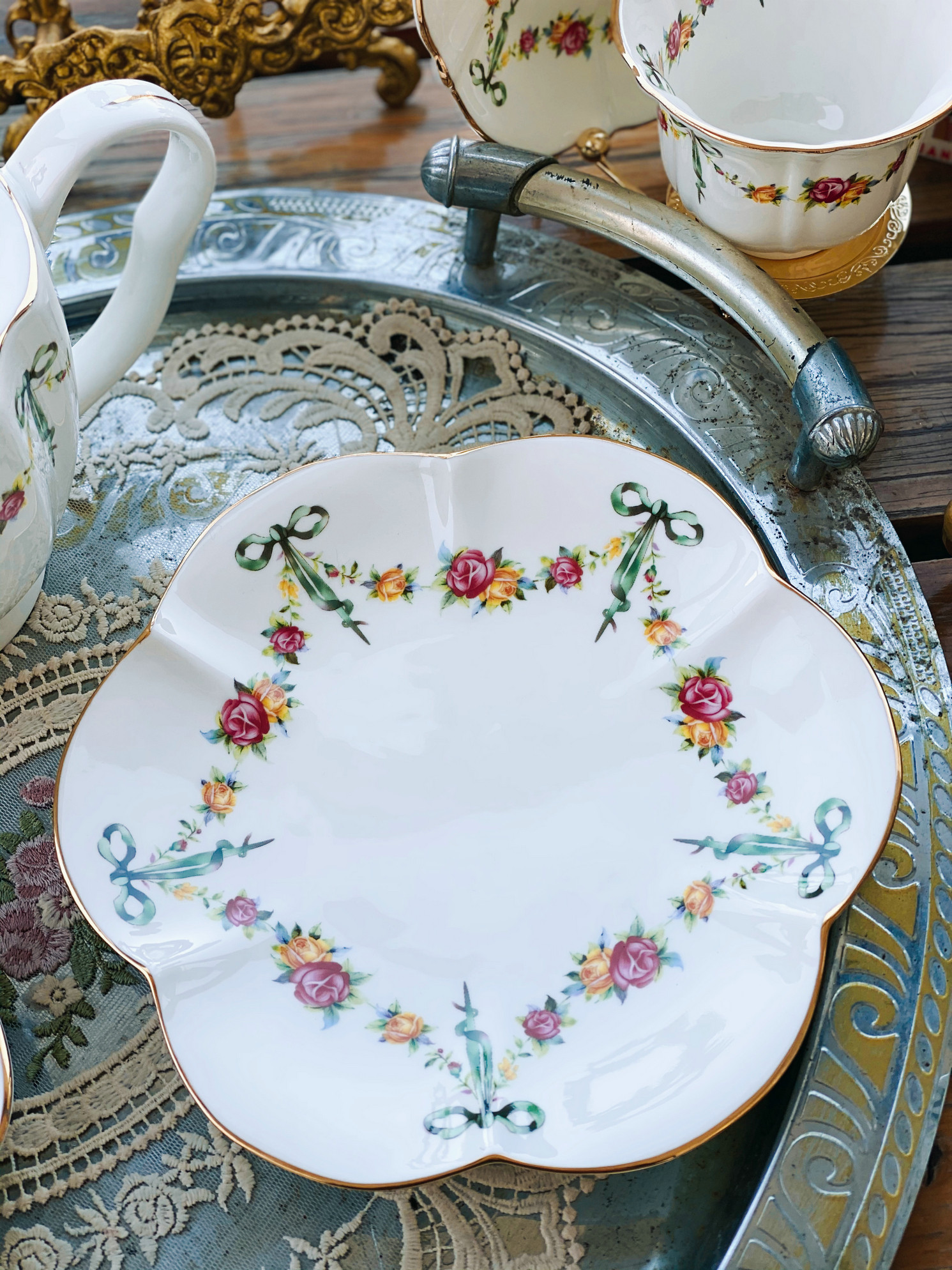 «Лента роза» выходная фарфоровая фарфоровая фарфоровая чаша кафе Cafe Cufe Cup Cup Teapot низ Обеденный чай комплект butterfly