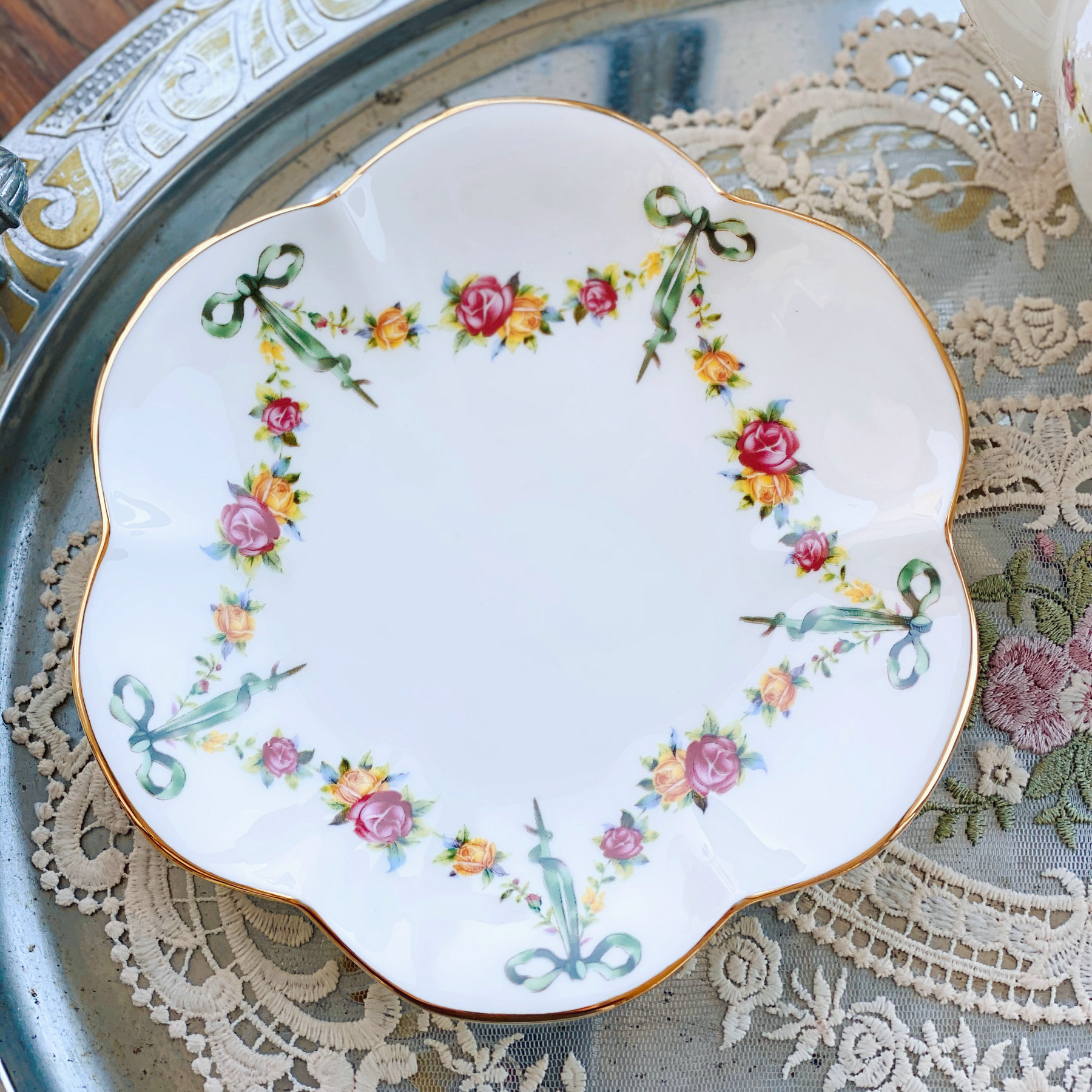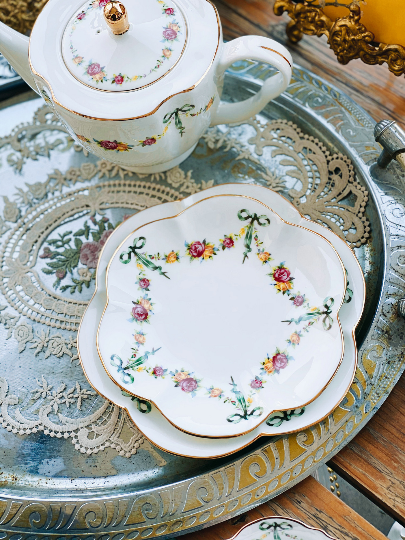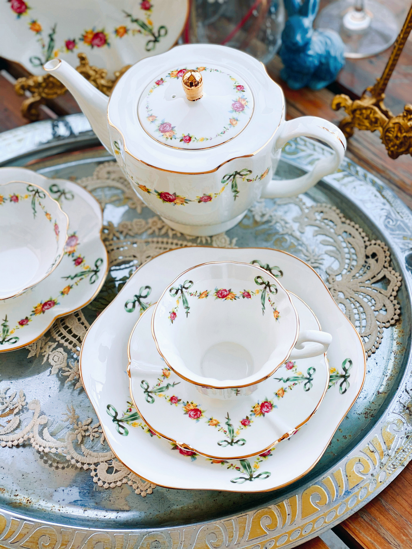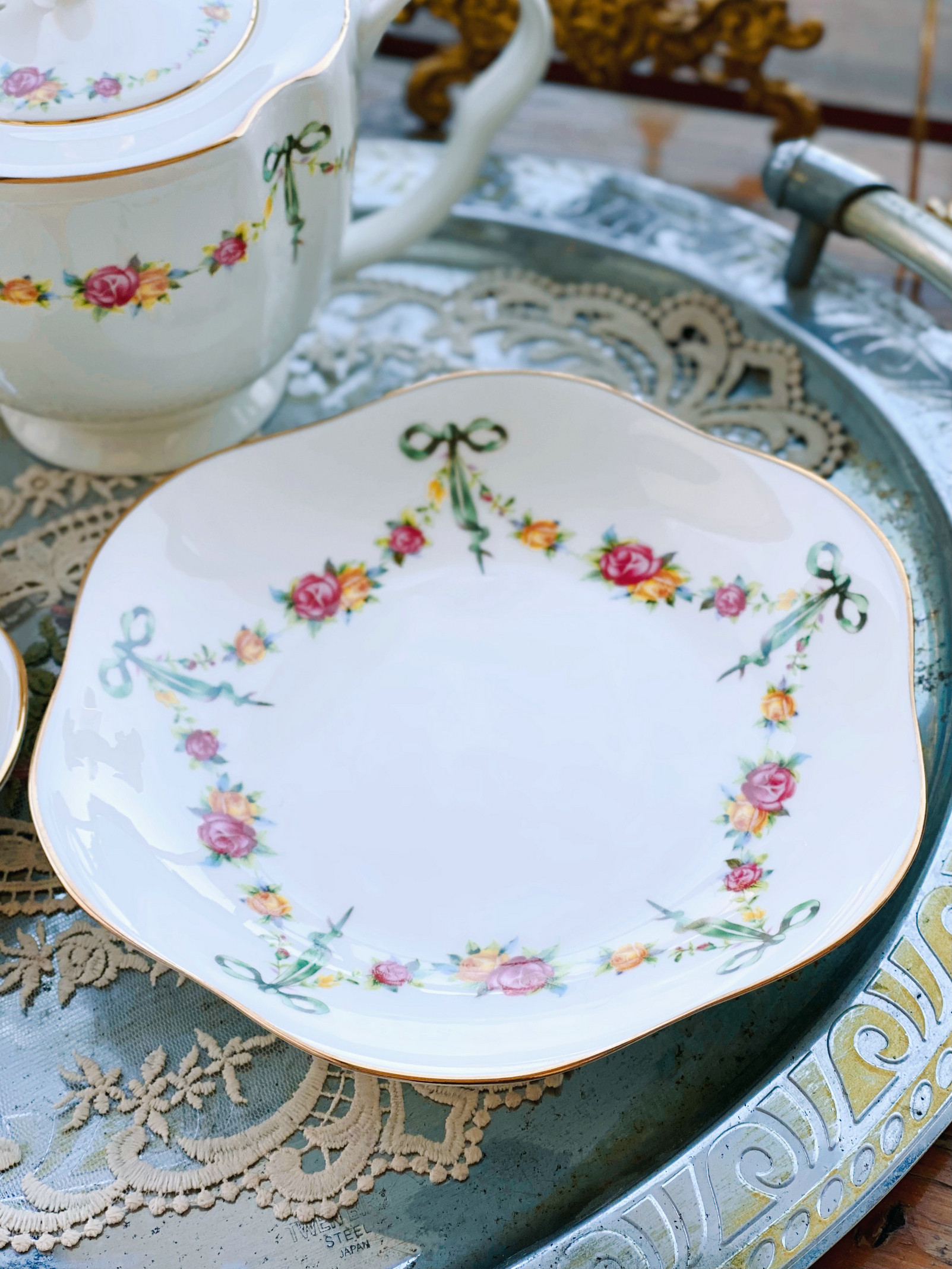 «Лента роза» выходная фарфоровая фарфоровая фарфоровая чаша кафе Cafe Cufe Cup Cup Teapot низ Обеденный чай комплект butterfly