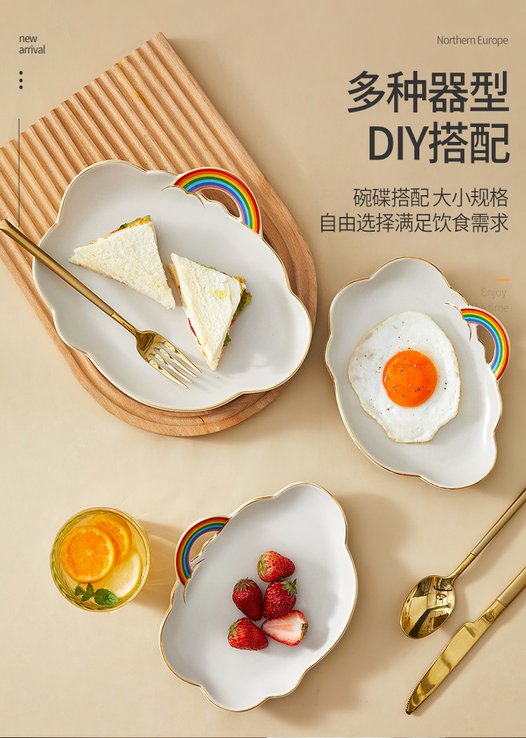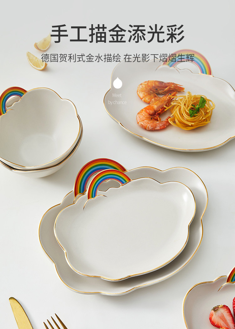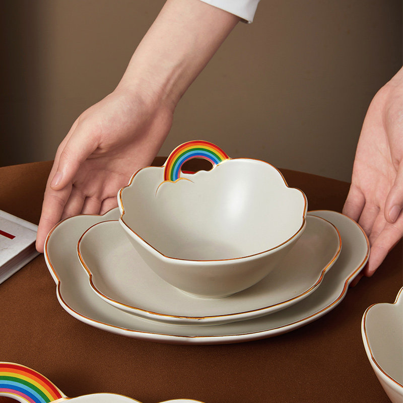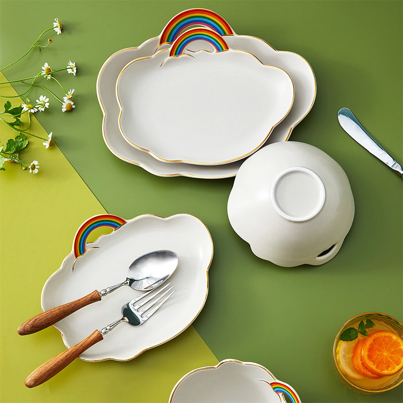 Облако цвет Радужная тарелка для завтрака ins ins высокая Красота салат чаша милая инопланетная посуда ритуальная личность.