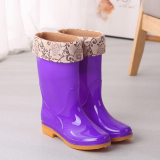 Новая коллекция Дождевые сапоги дождь обувь водонепроницаемый Обувная клейкая обувь с хлопком Сапоги популярный средние альдульта нескользящие Кухонная работа