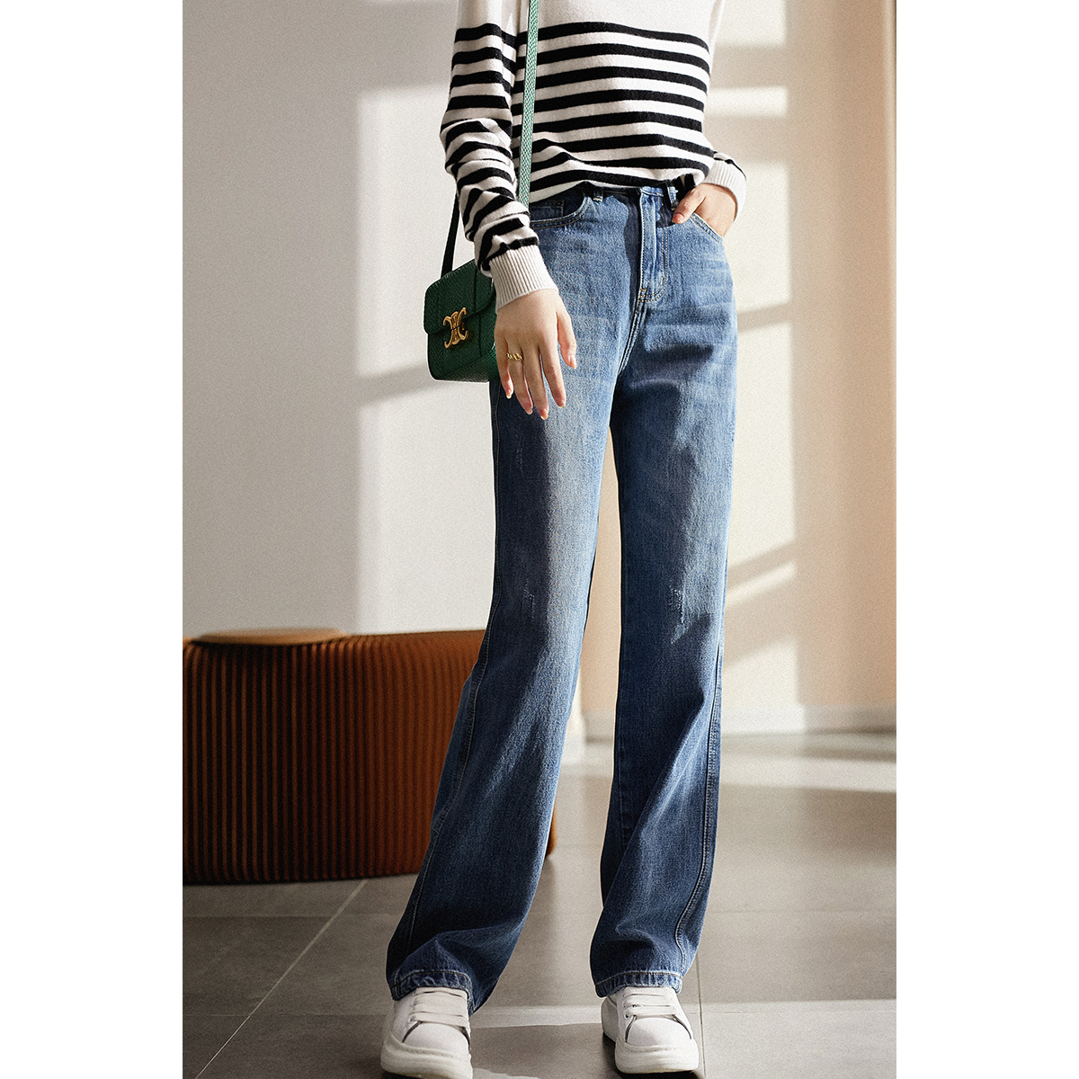 [KZK461458AG] Павильон Сяохан становится длинным ногами в секундах чистый хлопок Ультрамодные тонкие джинсы