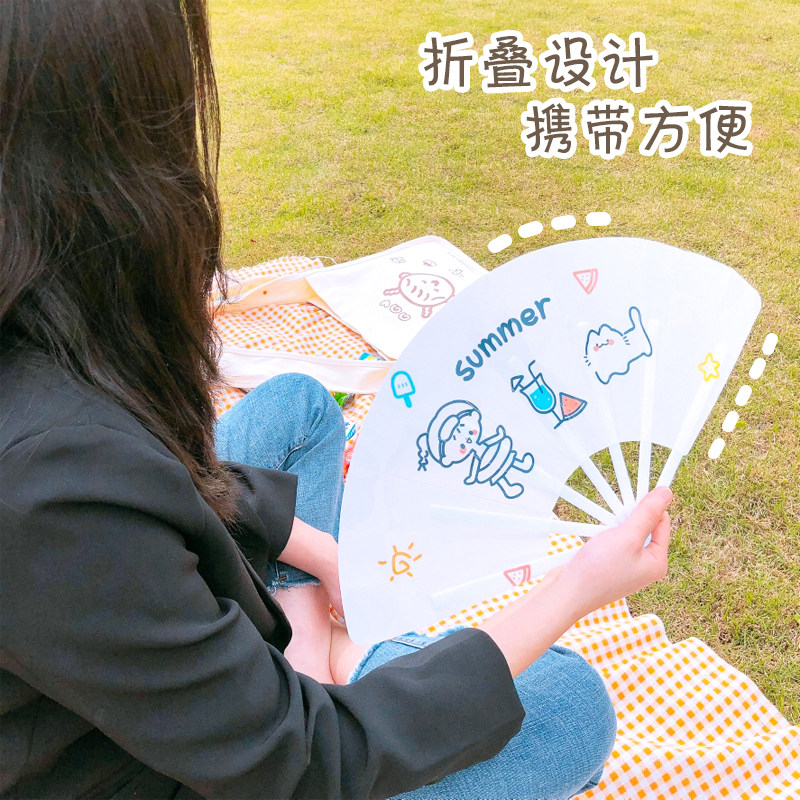 Ин мультфильм со складыванием Вентилятор милые подростковые сердца летняя рука, совок, студент, портативное охлаждение, крутая рука держа вентилятор