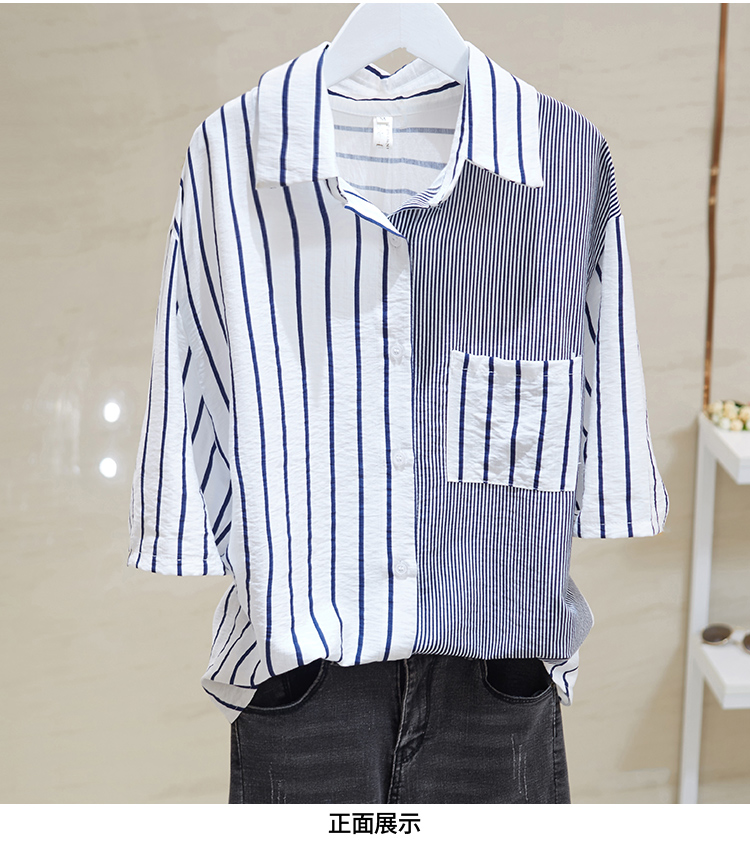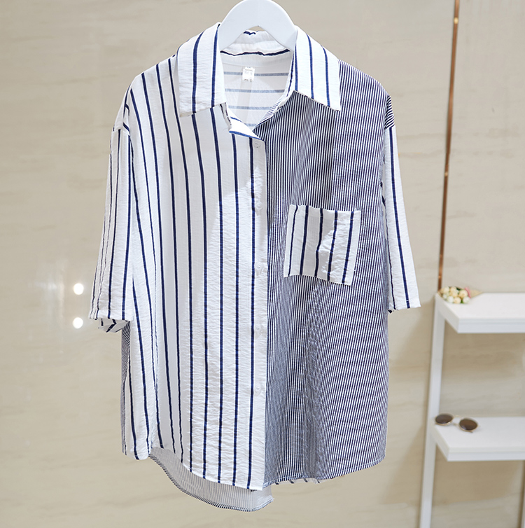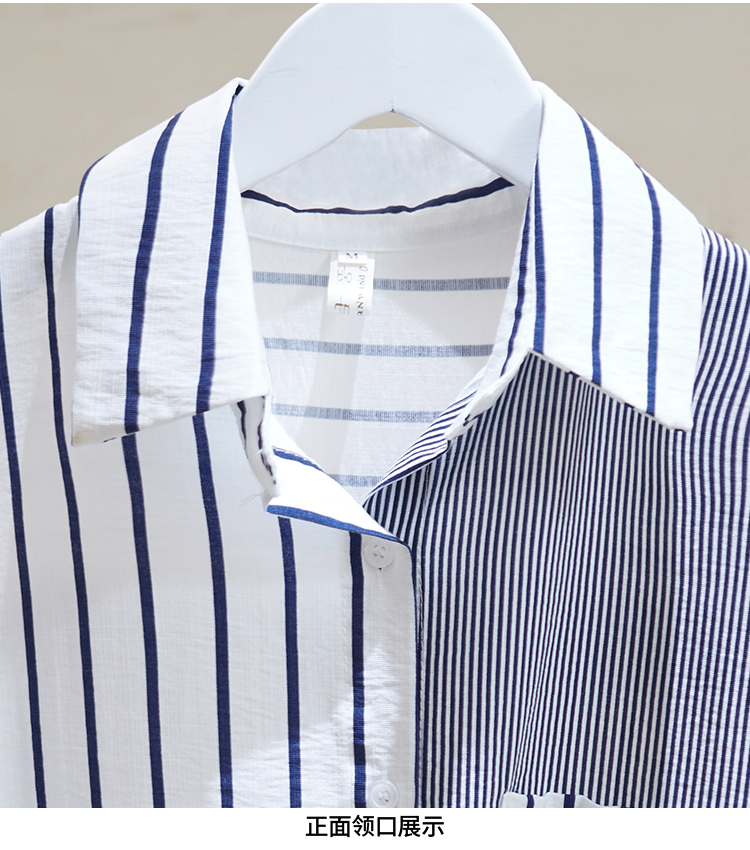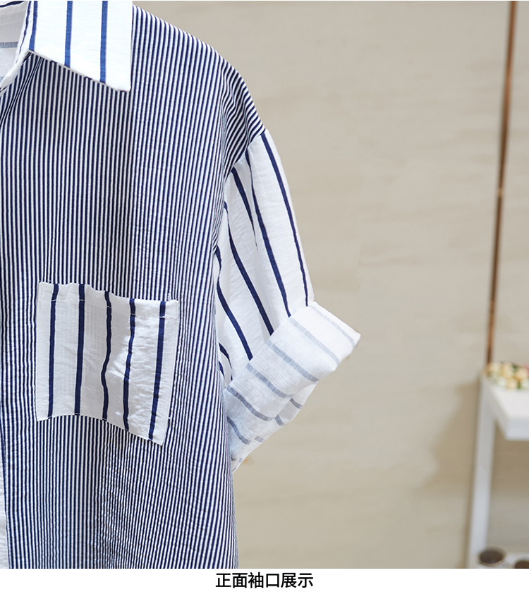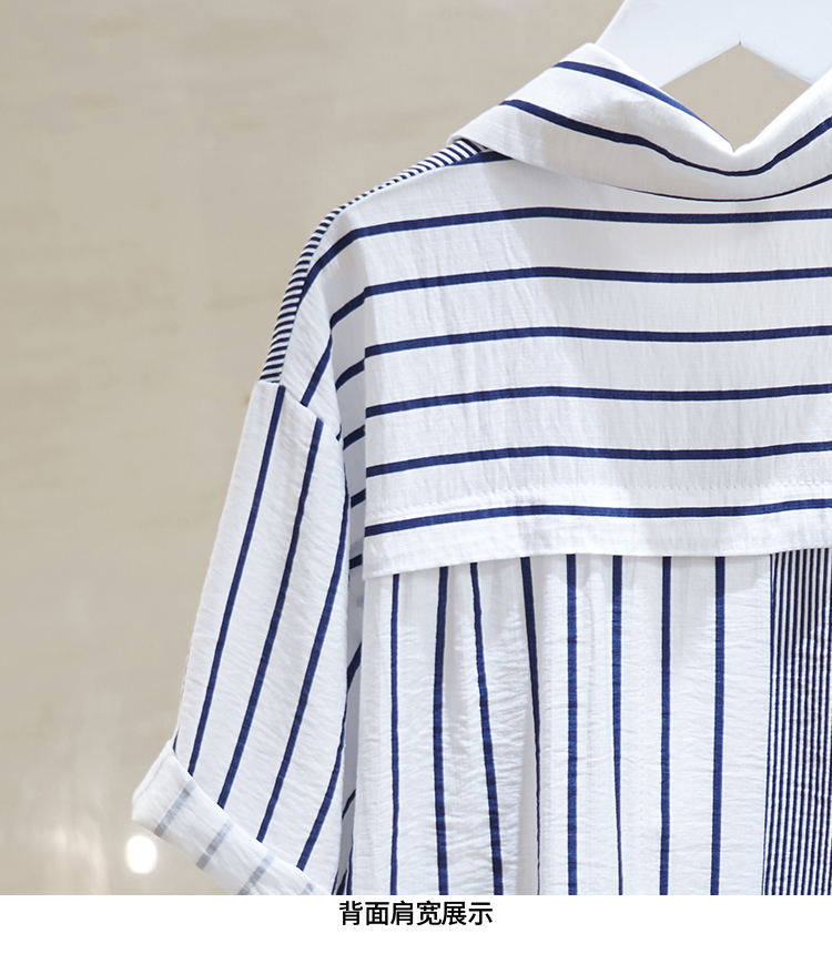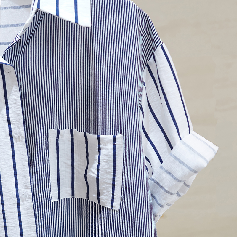Брендовая складка с застежкой Женский счетчик вывода хвост товары распродажа Сращивание полосатый принт короткий рукав сорочка Потери рубашка bf верх Одежда