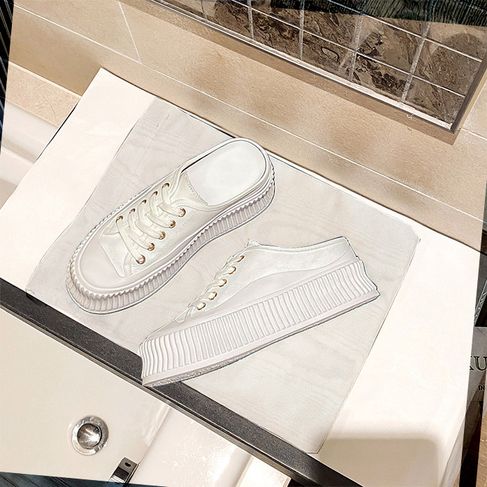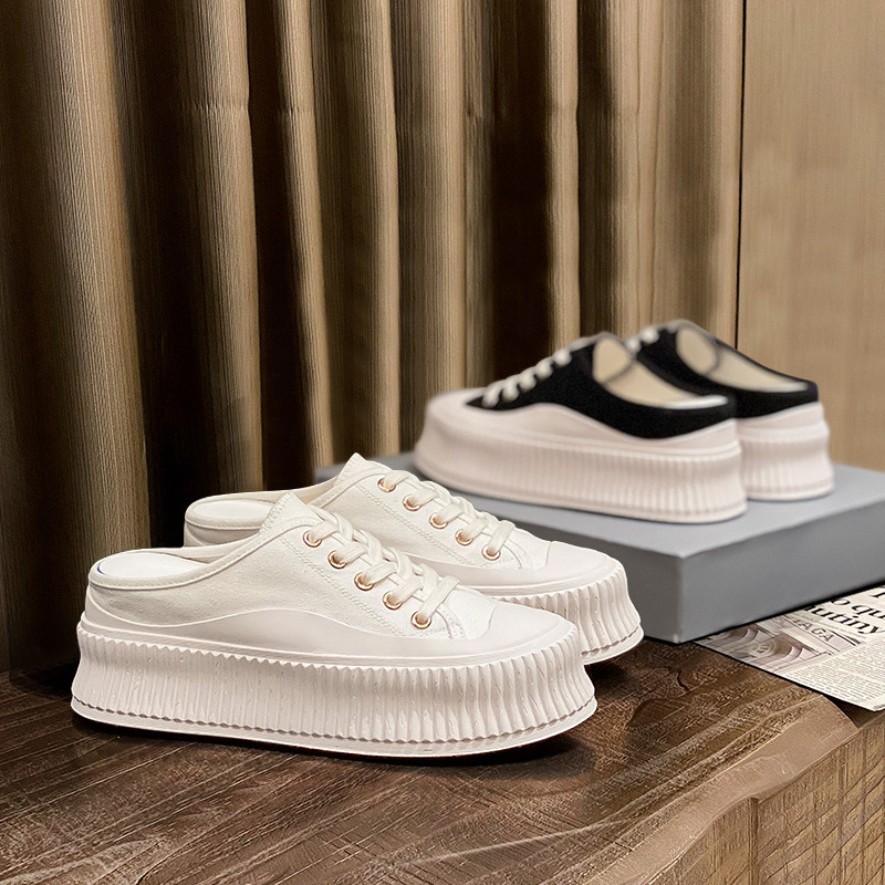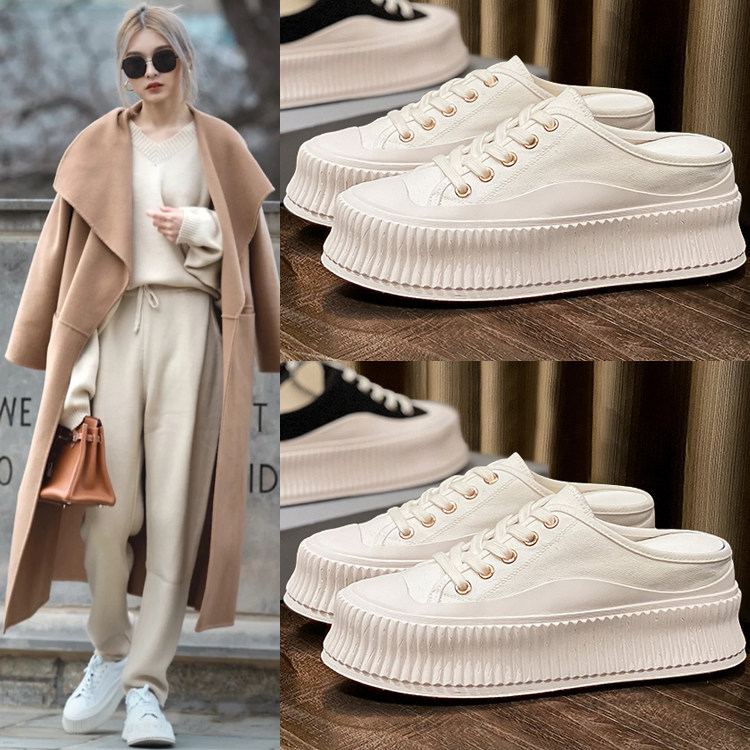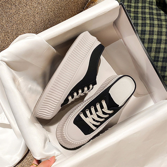 Ленивый человек пакет Головной половину тапки Женская носить 2021 лето новая коллекция воздухопроницаемый кеды Приращение высокая толстая Стейк обувь
