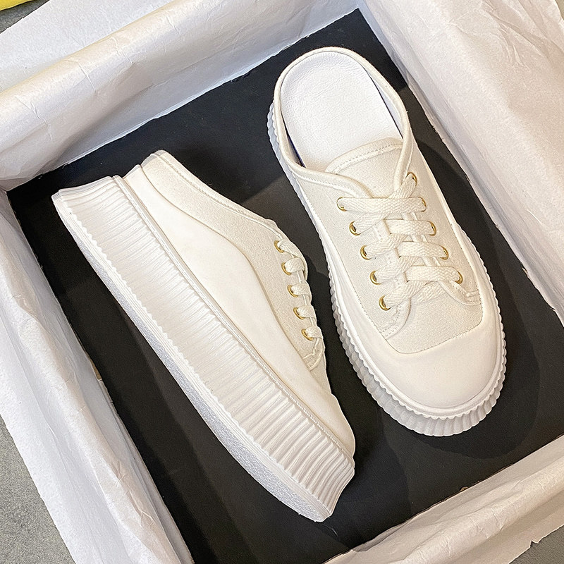 Ленивый человек пакет Головной половину тапки Женская носить 2022 лето новая коллекция ботинки женские кеды увеличивать высокая обувь толстая Стейк обувь