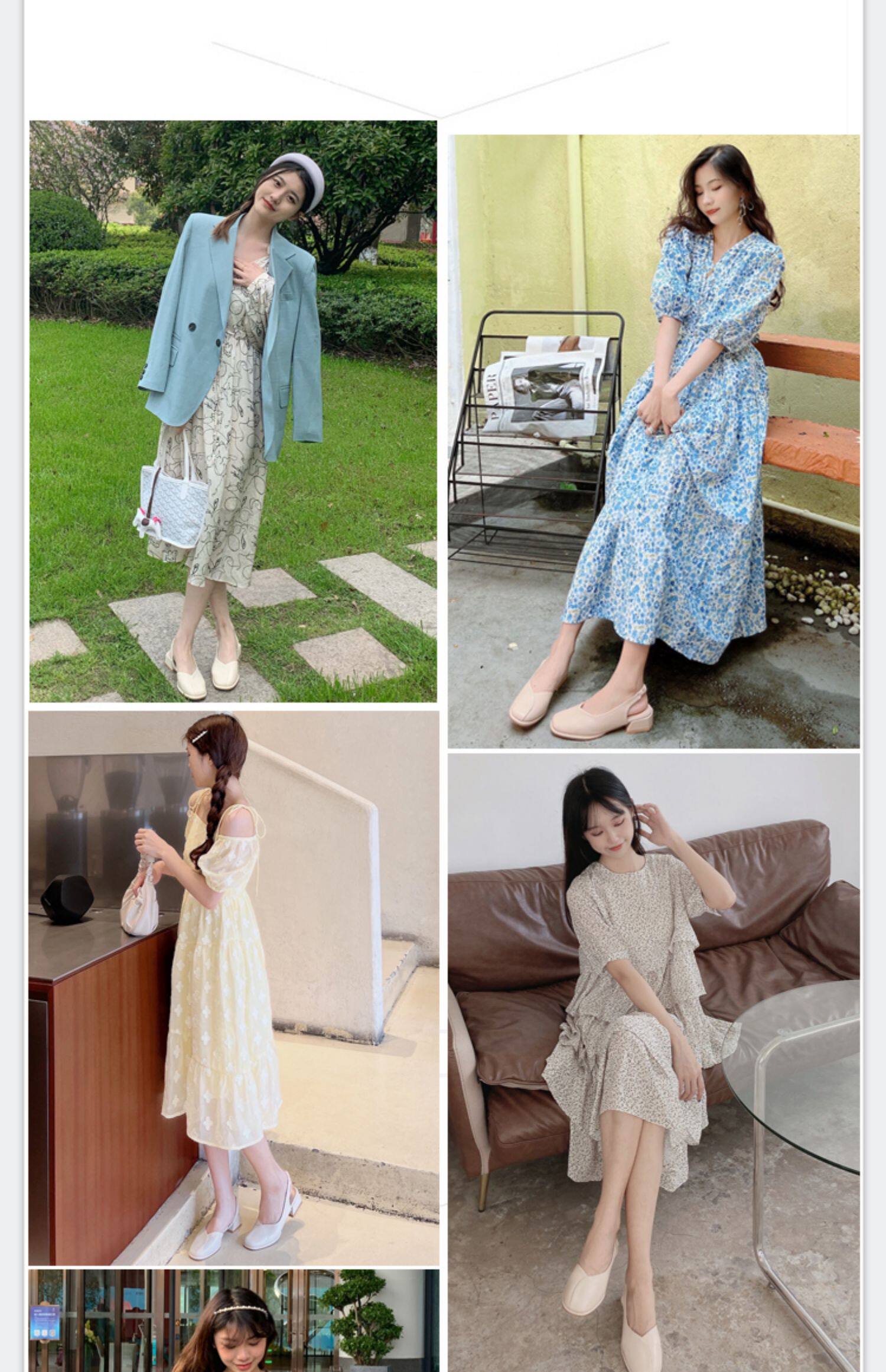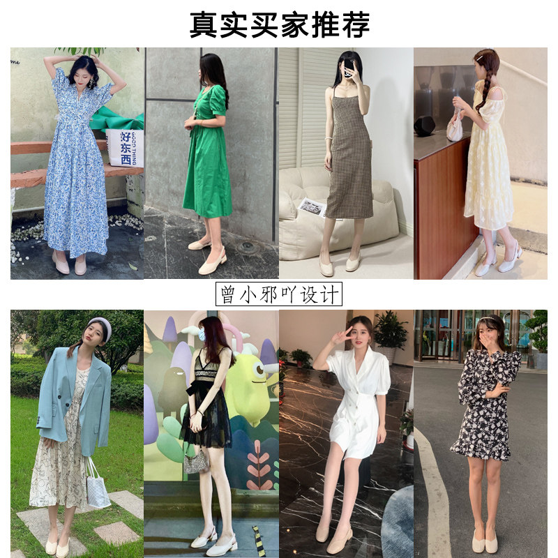 Пакет Головы Сандалии Женский Летний Феи Ветер 2022 новая коллекция Fangtou в женской обуви широкий каблук Искусственный стиль светло рот туфли