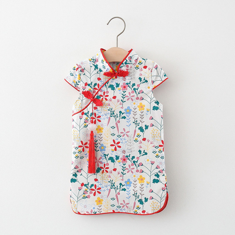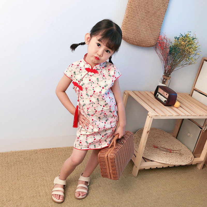 Китайский стиль детское на девочку Платье лето детские Улучшена юбка Cheongsam на младенца женский детские для маленькой принцессы юбка