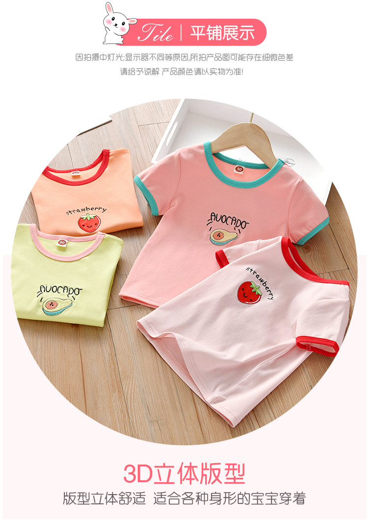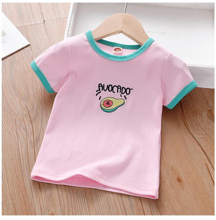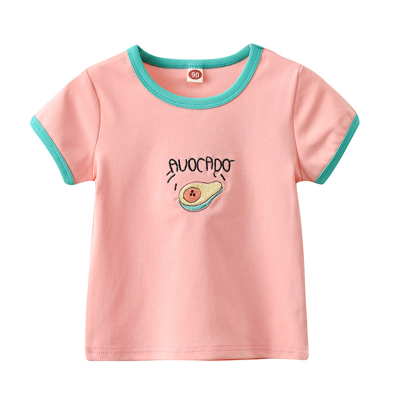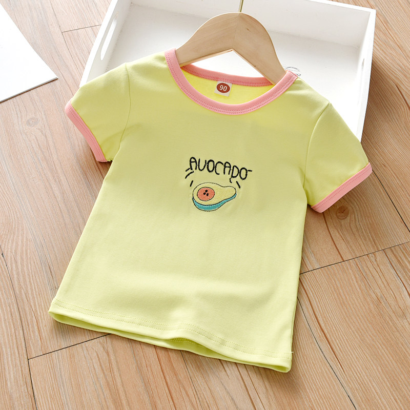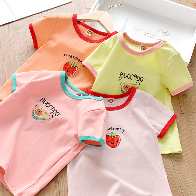 Детские Летняя футболка детское новая коллекция на девочку Фруктовая вышивка верх Одежда детские лето для отдыха короткий рукав Футболка