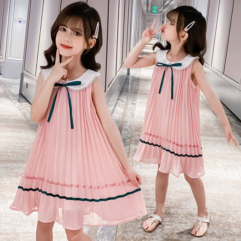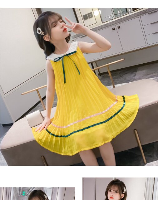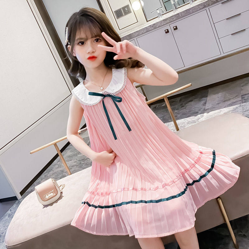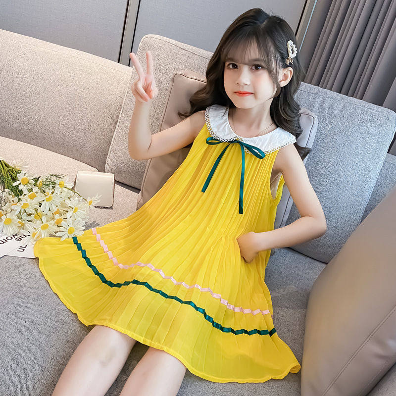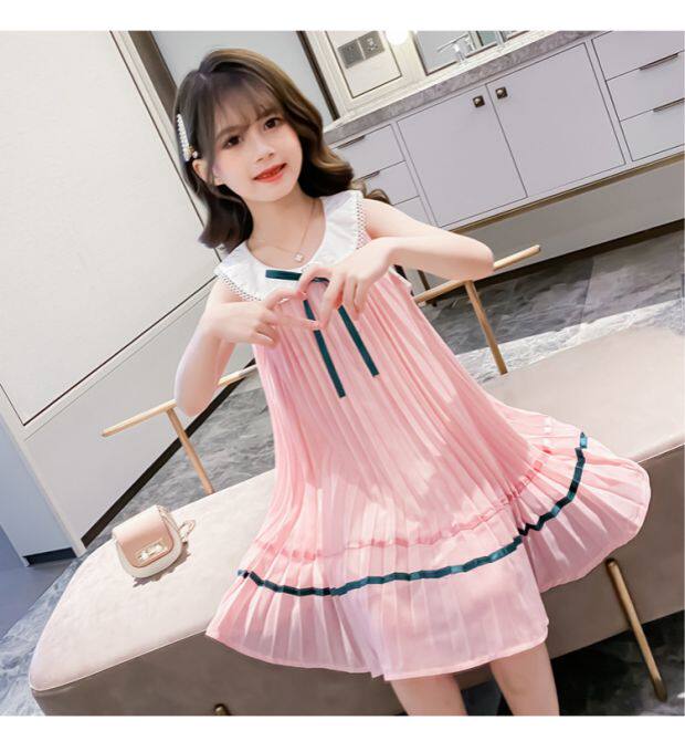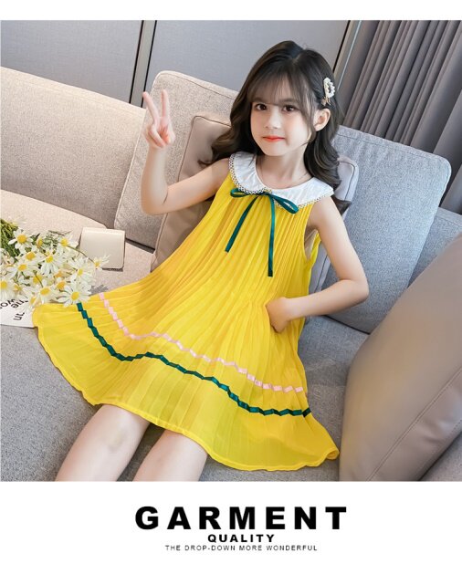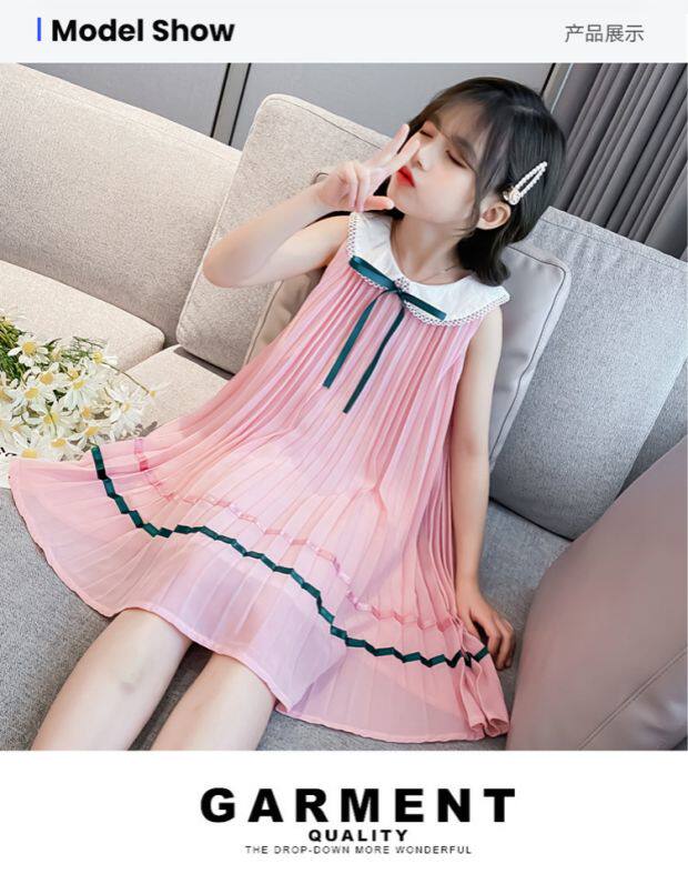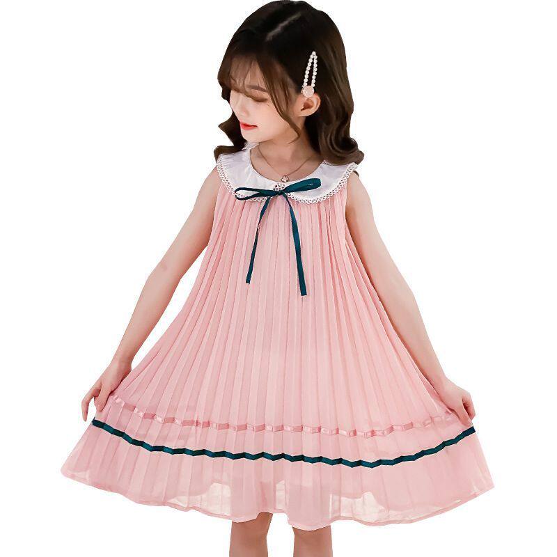 На девочку Летнее платье для маленькой принцессы Юбка кукла платья сплошной цвет корейская версия Жилет юбка модный иностранный большой детский рукав юбка