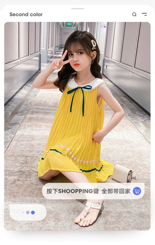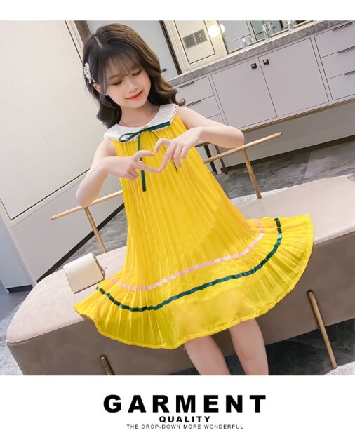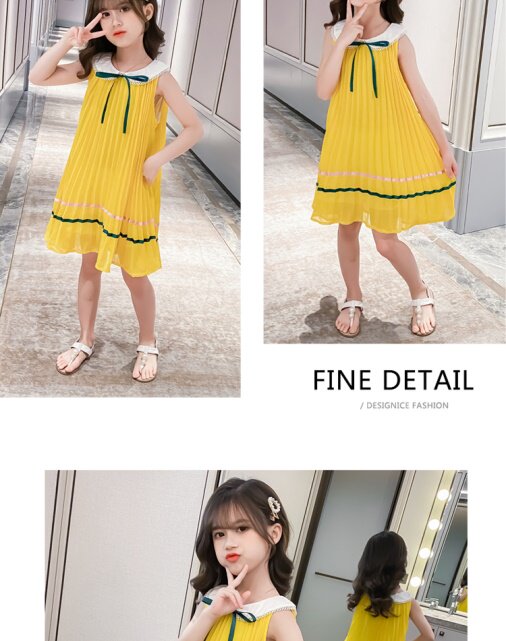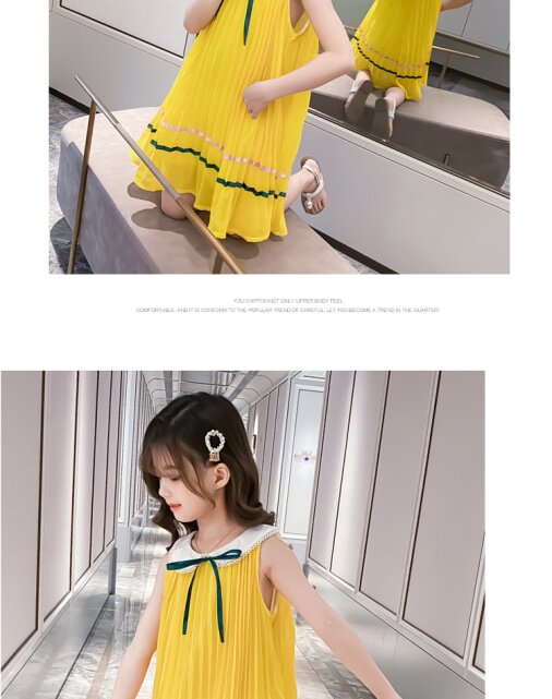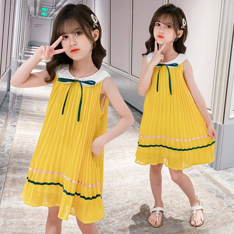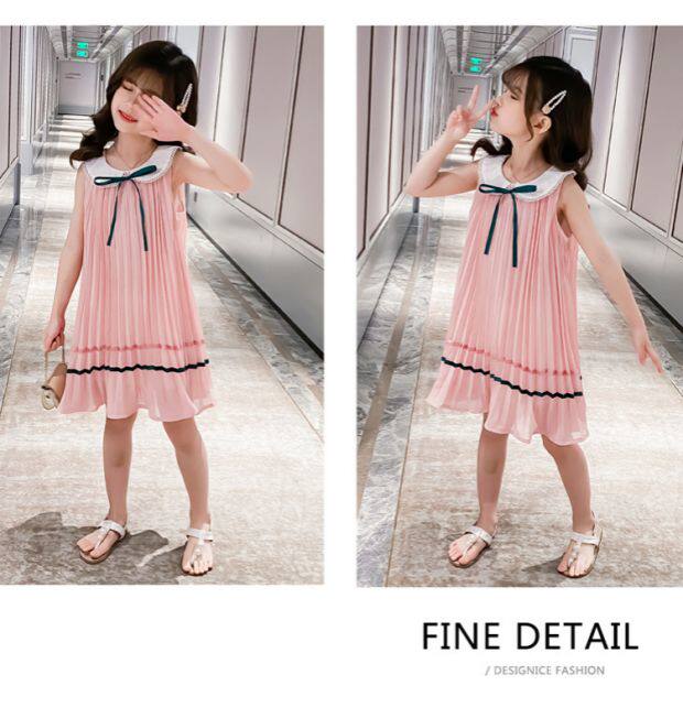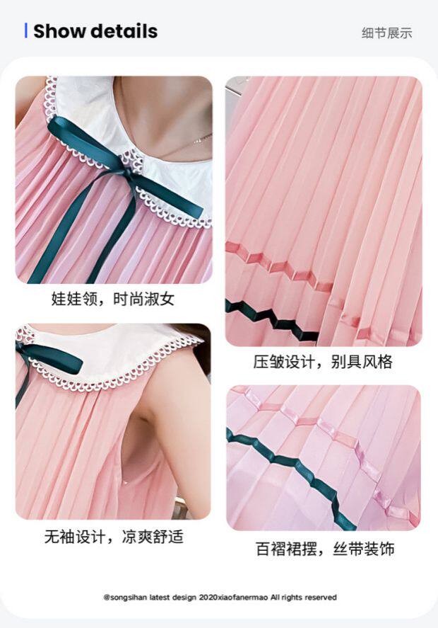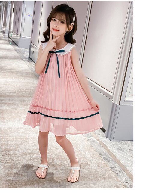 На девочку Летнее платье для маленькой принцессы Юбка кукла платья сплошной цвет корейская версия Жилет юбка модный иностранный большой детский рукав юбка