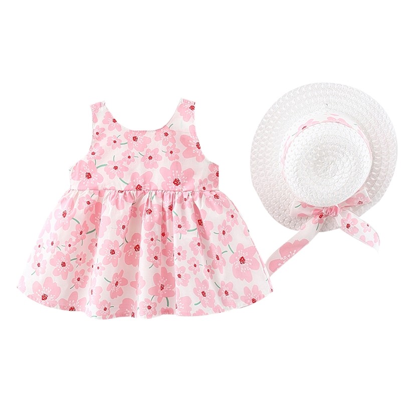 На девочку Платье лето чистый хлопок Хрупкий для маленькой принцессы Лето детские Летний жилет юбка шапка