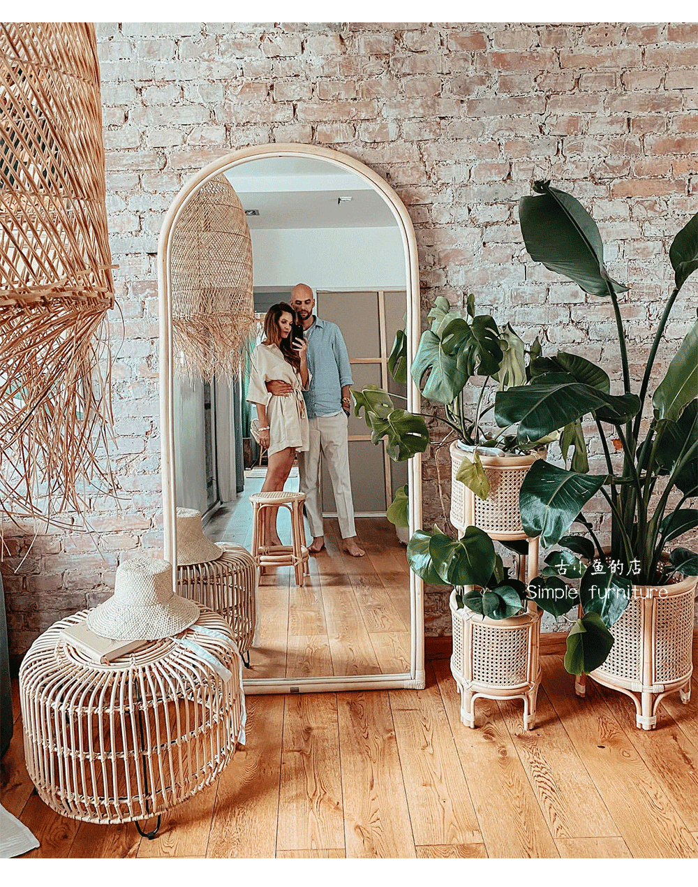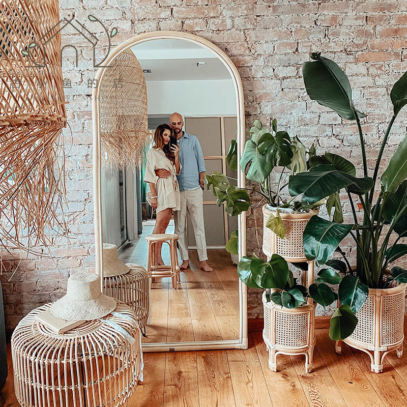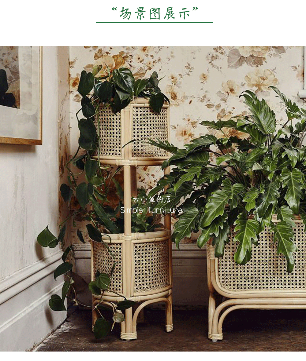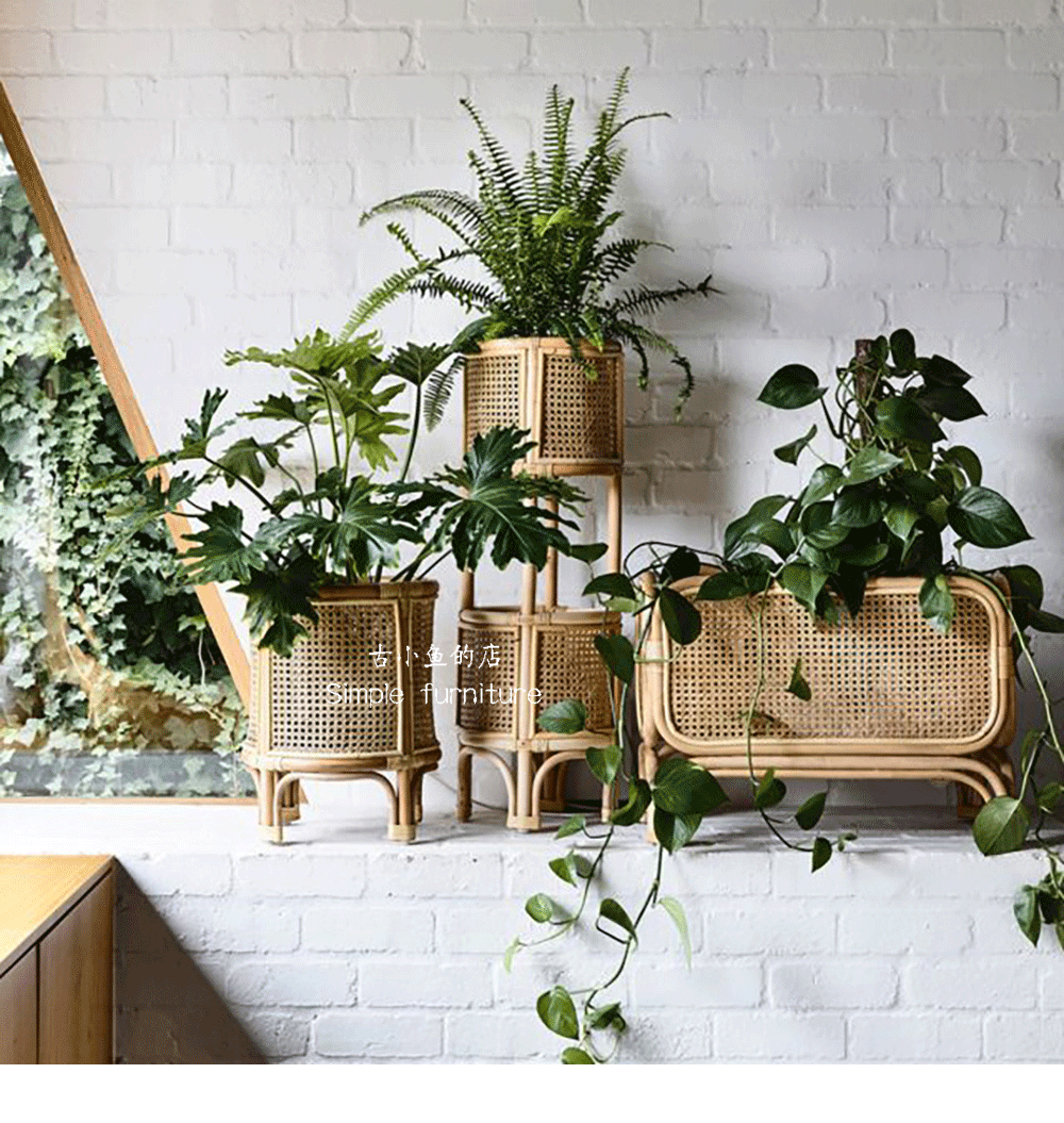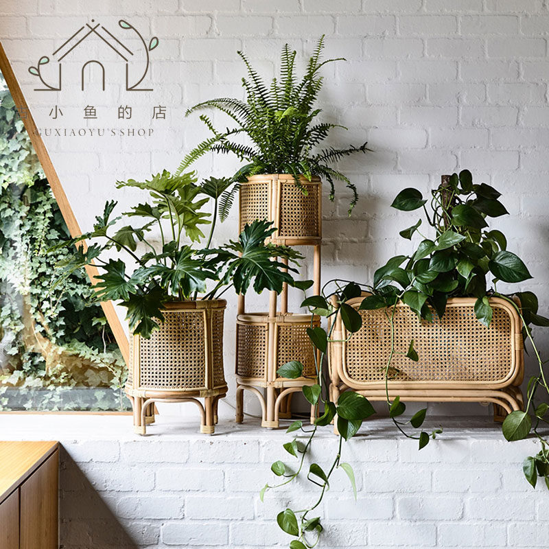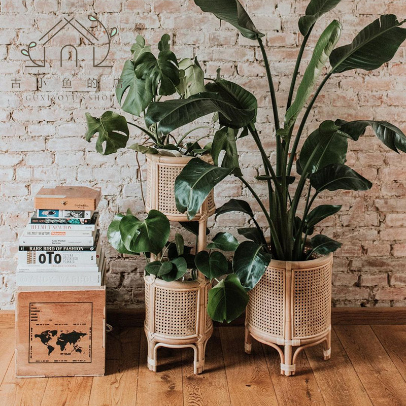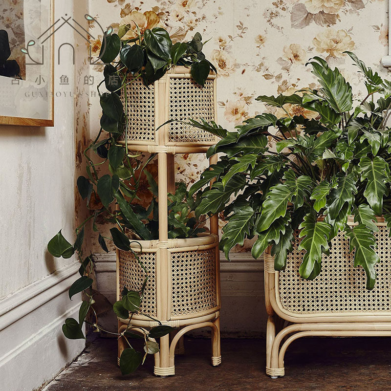 Древняя рыбка, скандинавская подставка для цветов из ротанга, напольная полка, домашний цветочный горшок, украшение для гостиной, многослойная цветочная корзина