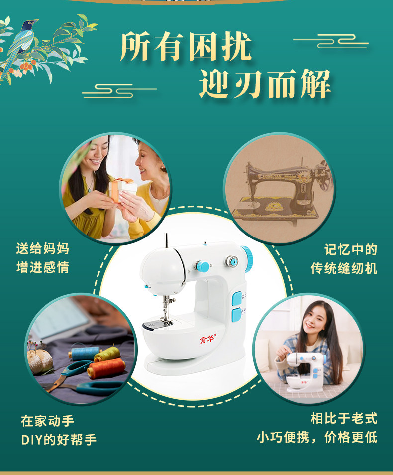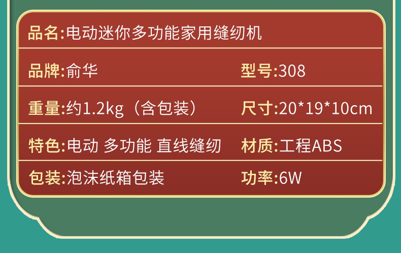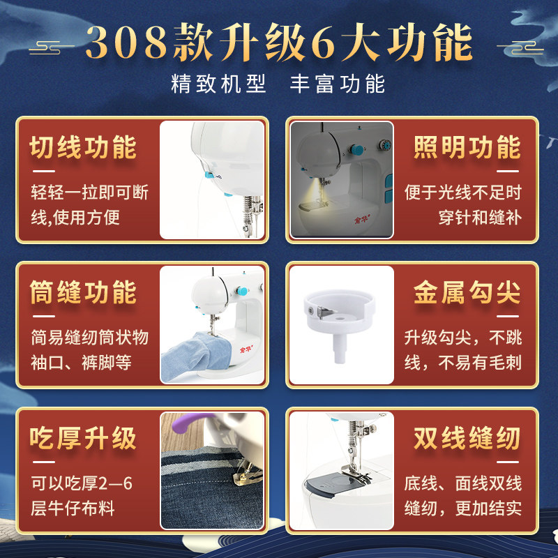 Yuhua 308 Швейная машина Home Electric Mall Mini Handheld Миниатюрная едь толстая Многофункциональность полностью автоматическая Швейная машина