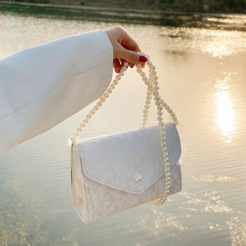 Винтаж Нежное кружево пакет с жемчужинами Сказочный пакет один Плечо популярный маленький аромат для отдыха цепь полосатый Ворота пакет
