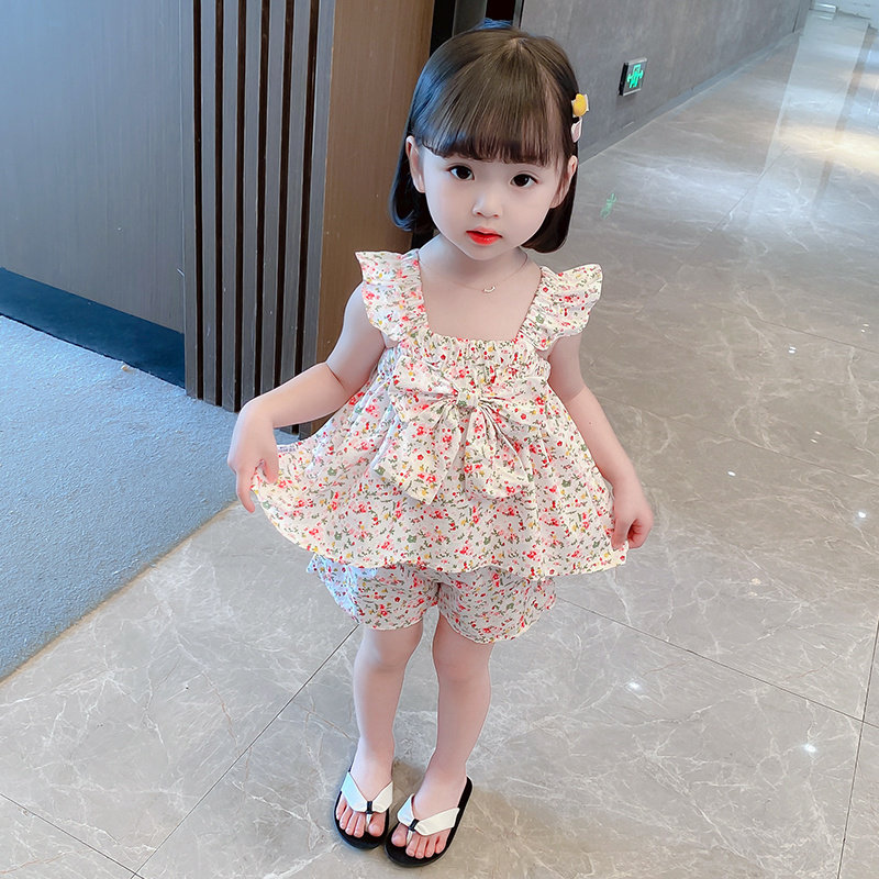 На девочку комплект Летнее платье детское Пар детские Летняя иностранная девушка новая коллекция модный чистый хлопок детские одежда