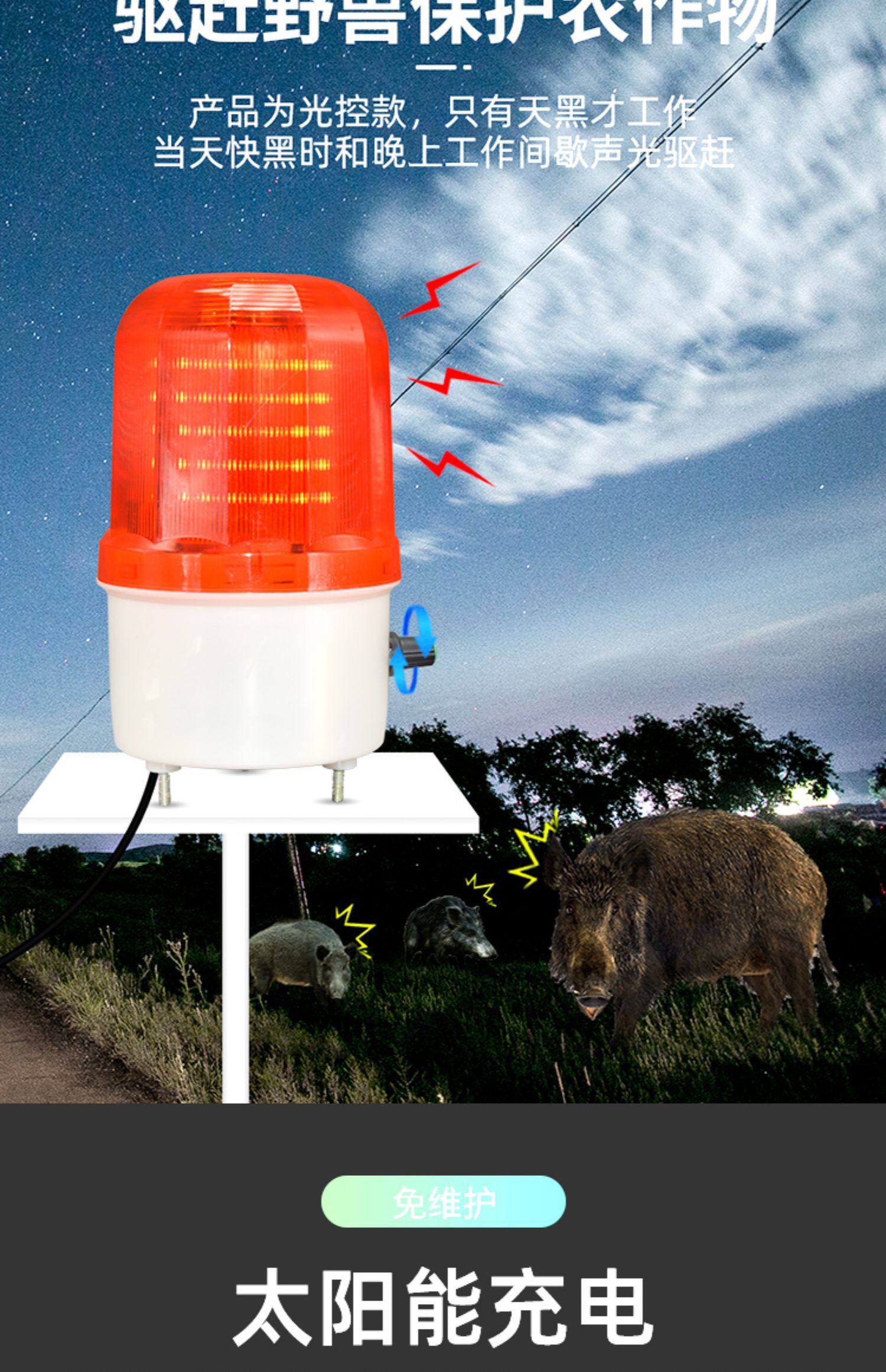 Артефактное солнечное предупреждение со звуком напуганным диким кабаном свет Длинно продолжение доступности Вспышка свет Заново свет