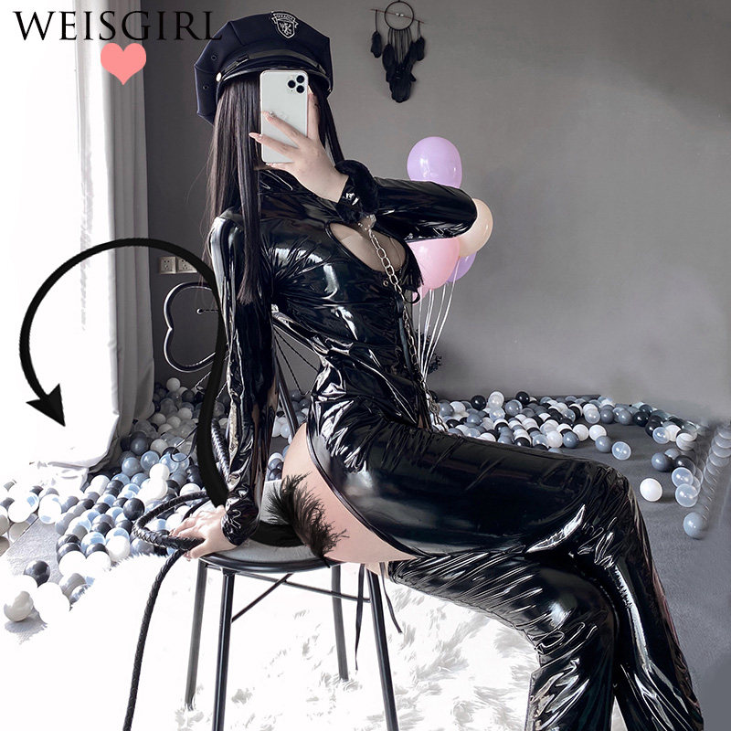 Ночной клуб лаковая кожа сексуальная форма королевы комплект Косплей равномерное искушение специальный агент J Полицейский инструктор COS