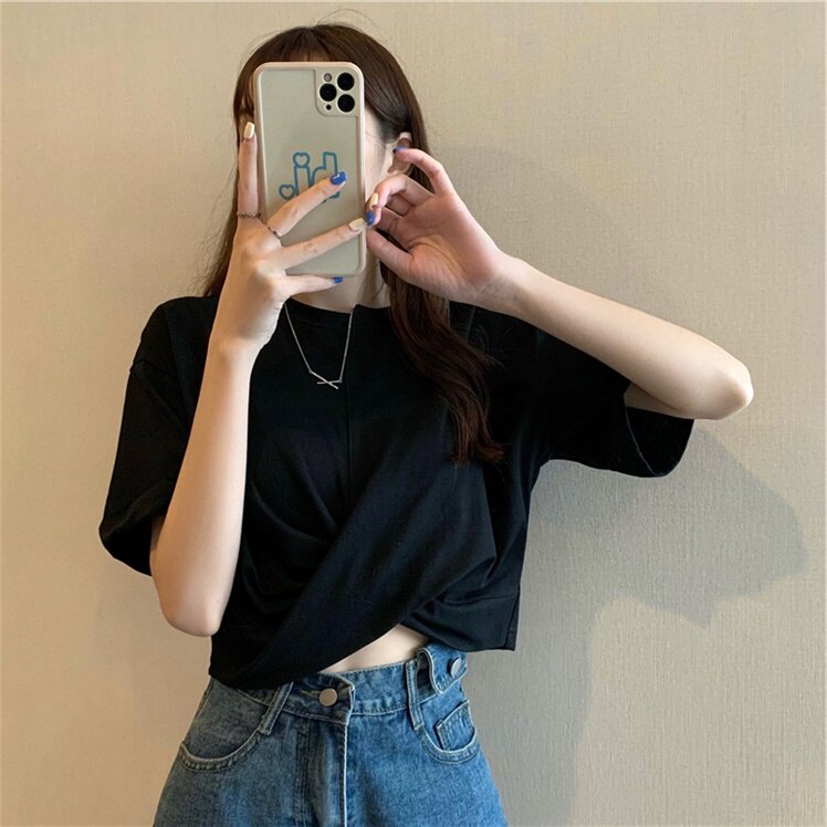 Лето короткий рукав Футболка женский лето 2021 новая коллекция белый короткий верх Дизайн одежды, маленький, маленький, лето, прилив