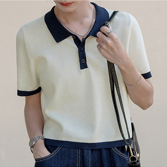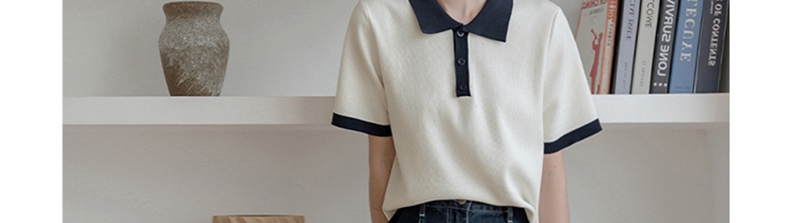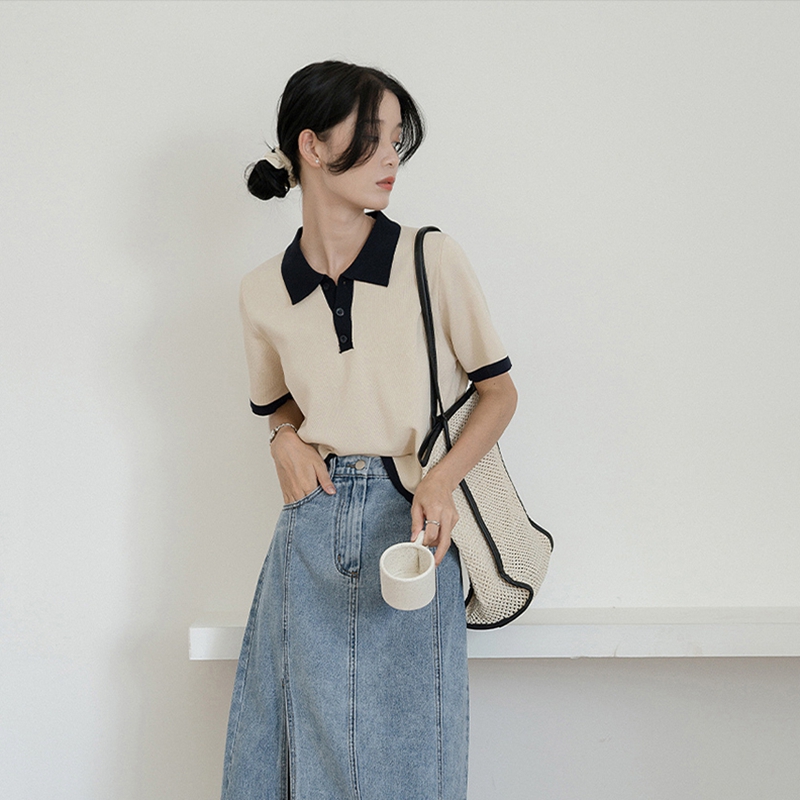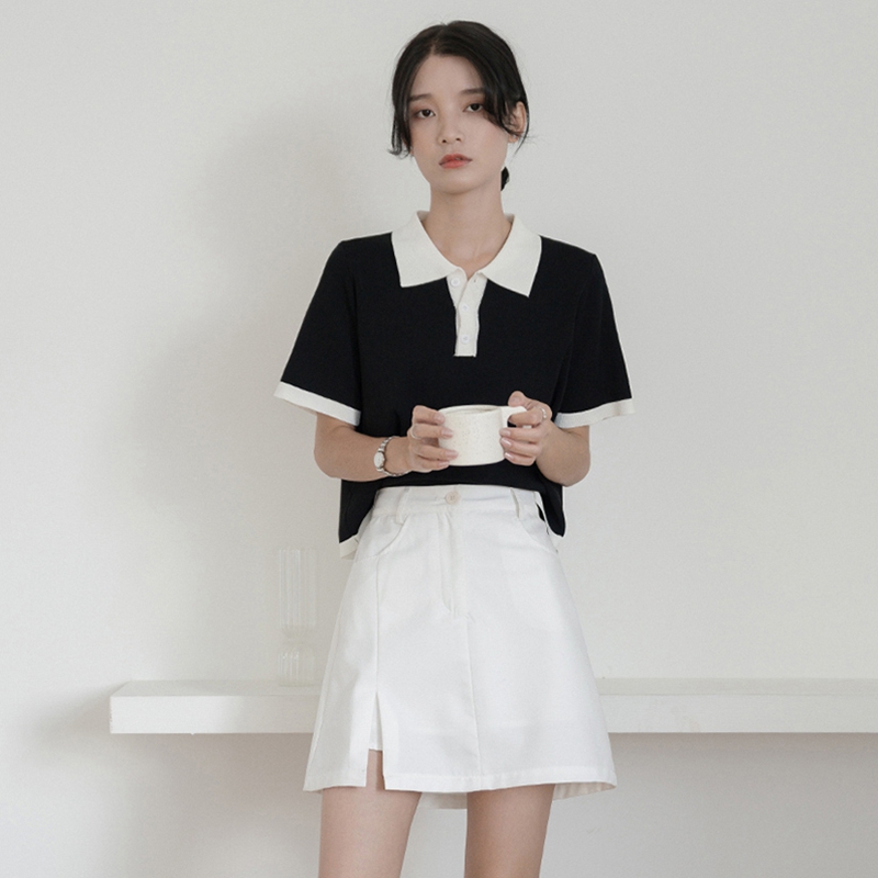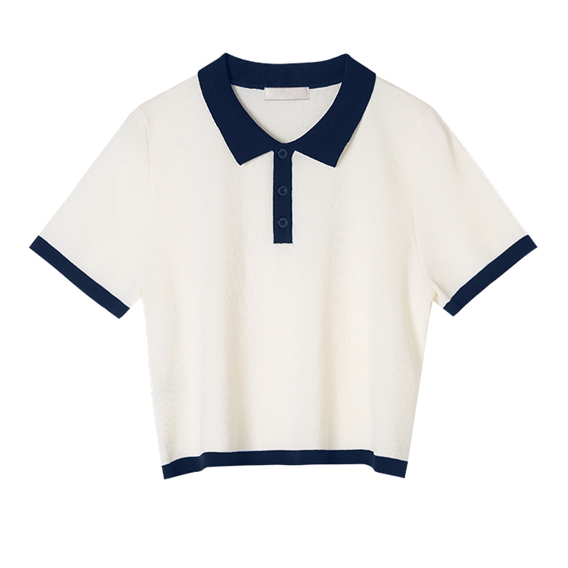 Французский маленький ветер белый трикотажный Рубашка короткий рукав Поло рубашка женское лето тонко стиль Футболка верх Одежда короткий меньшинство прогрессивный