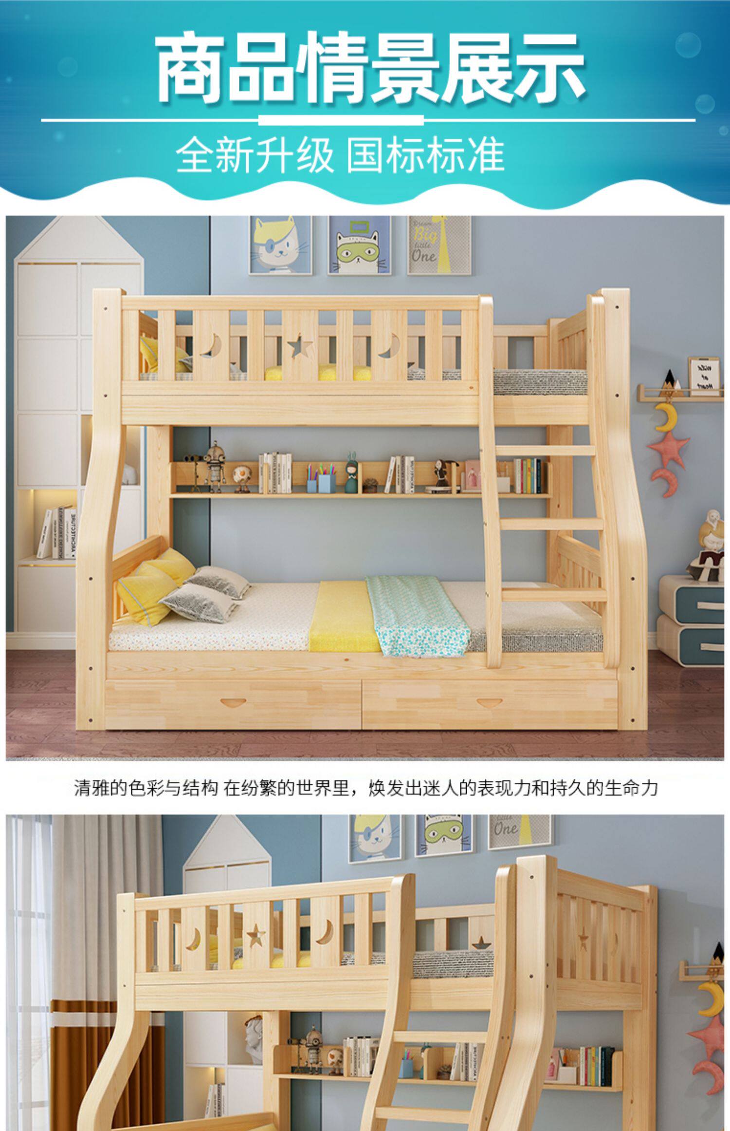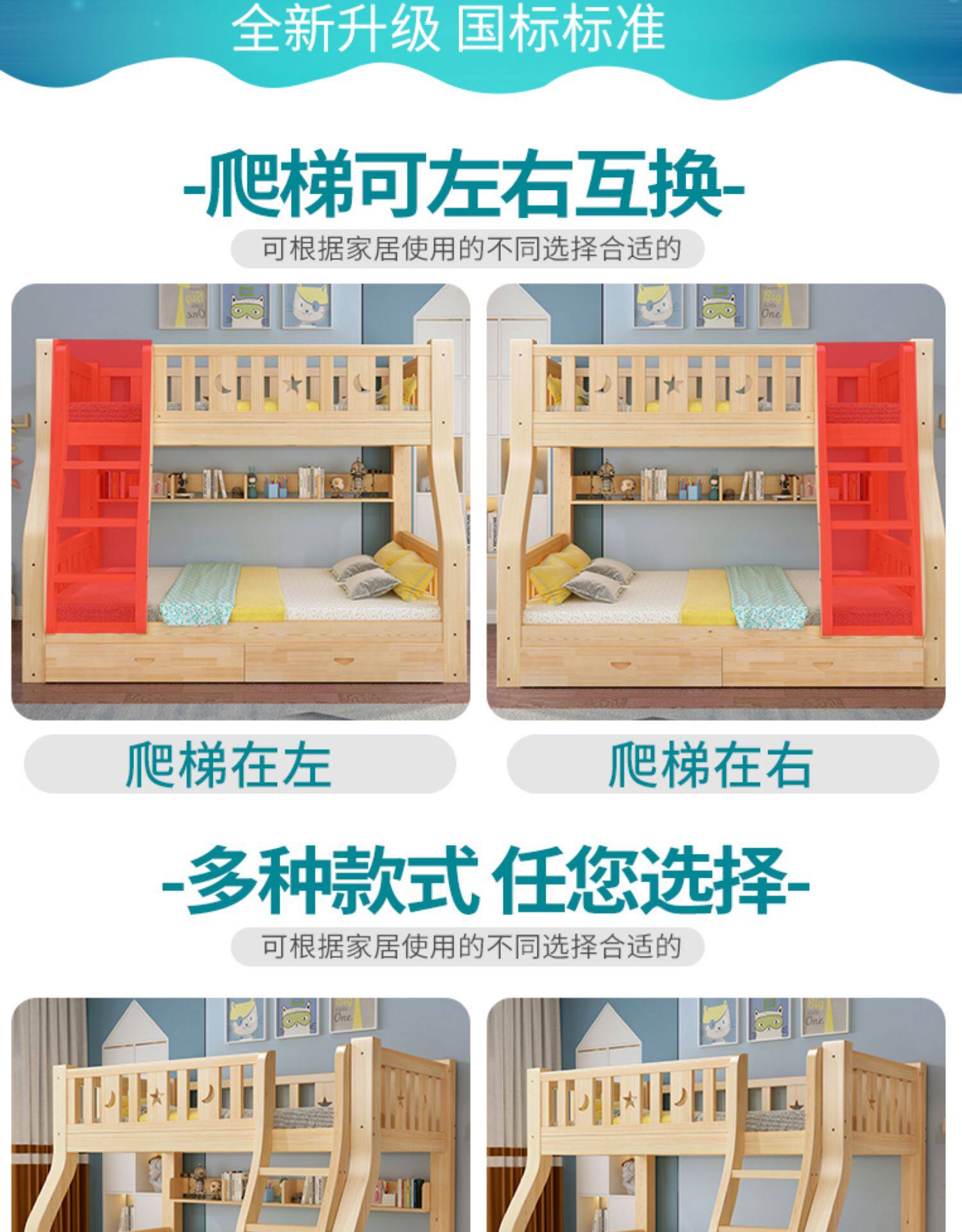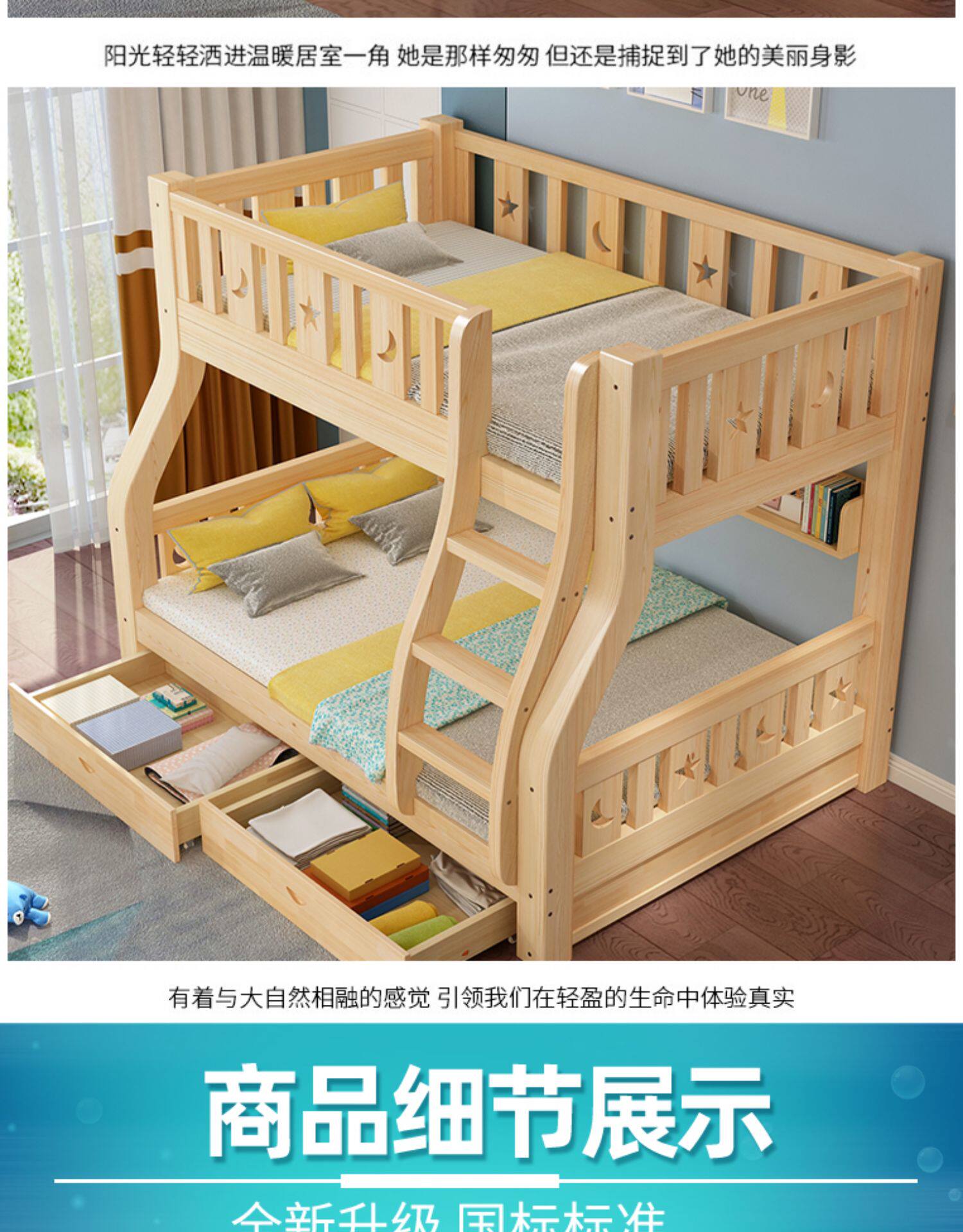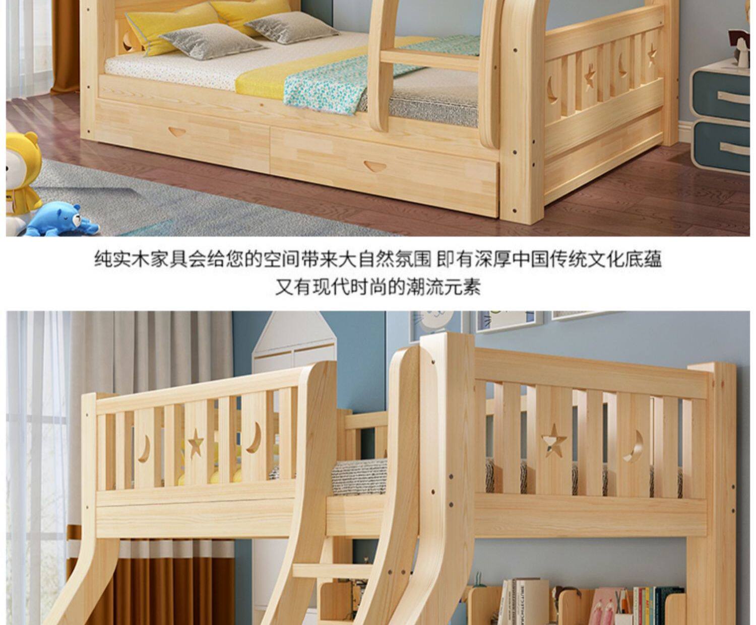 Твердая древесина верх и низ кровать двухслойный Кровать два слоя высокая Поздняя двуспальная кровать верх и низ Постельное белье детские Кровать матери с кроватью