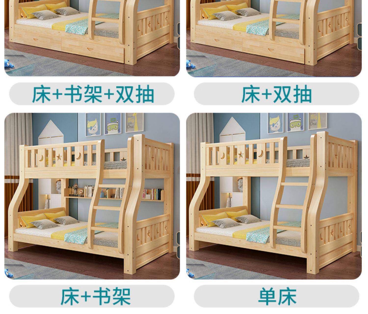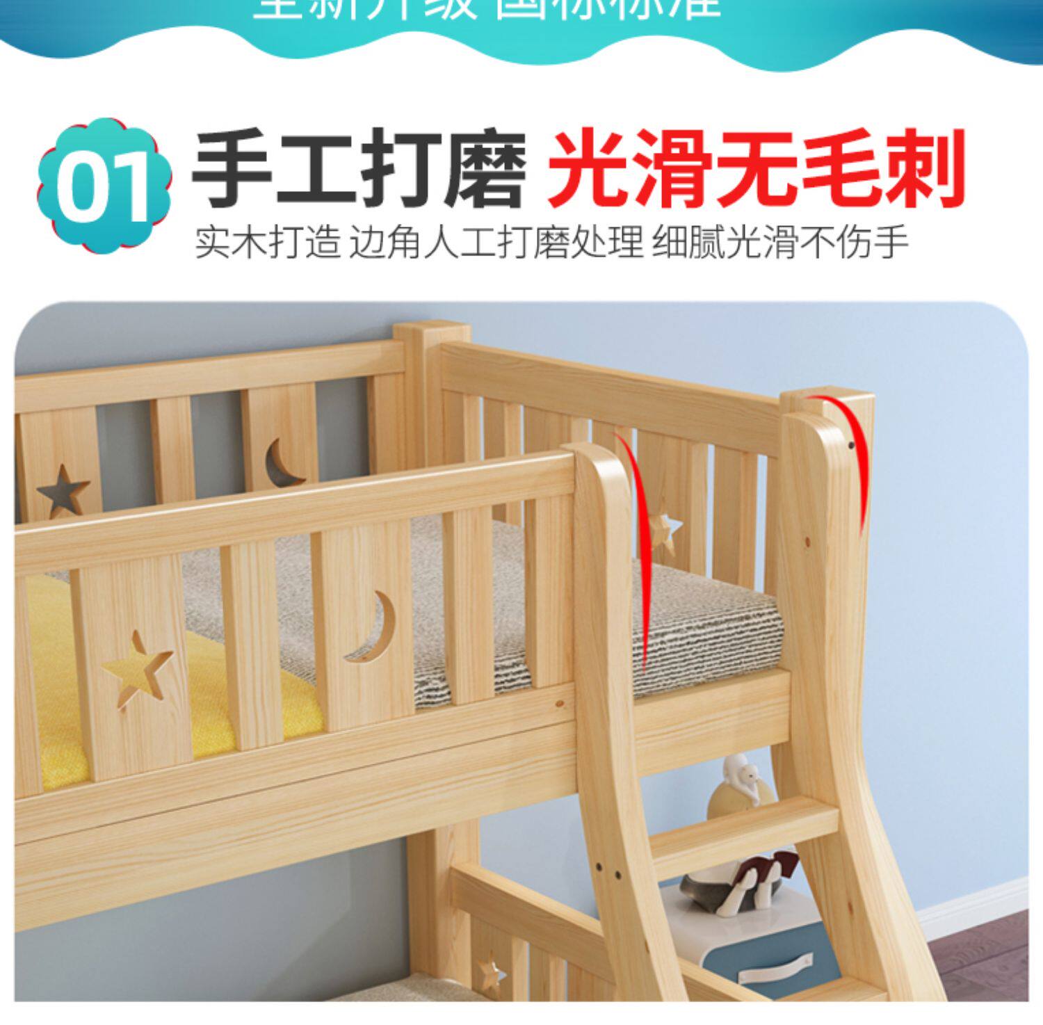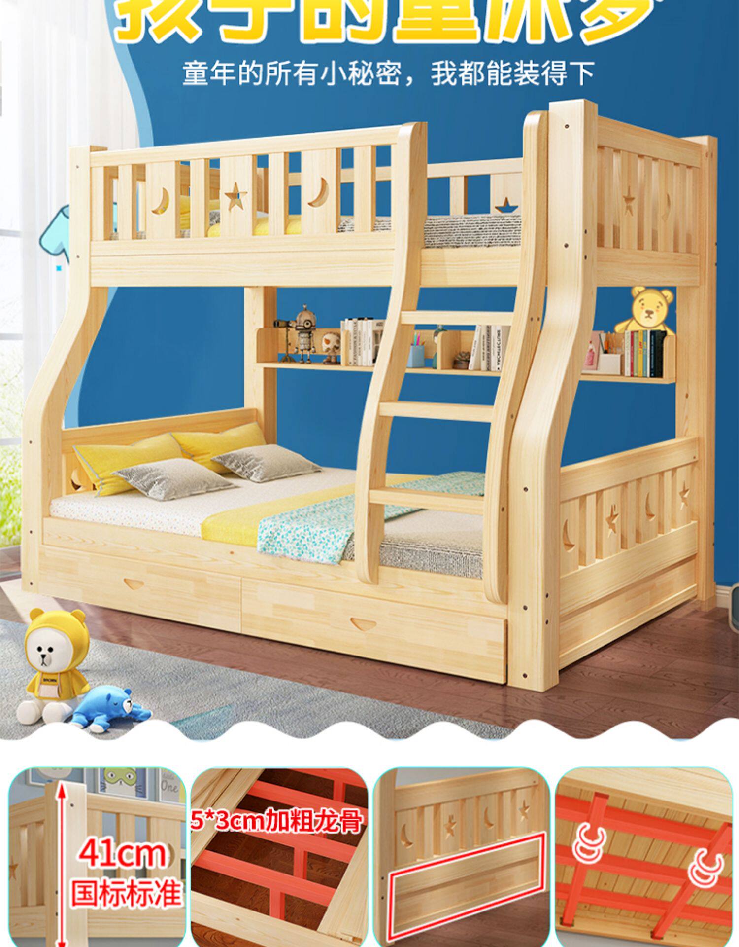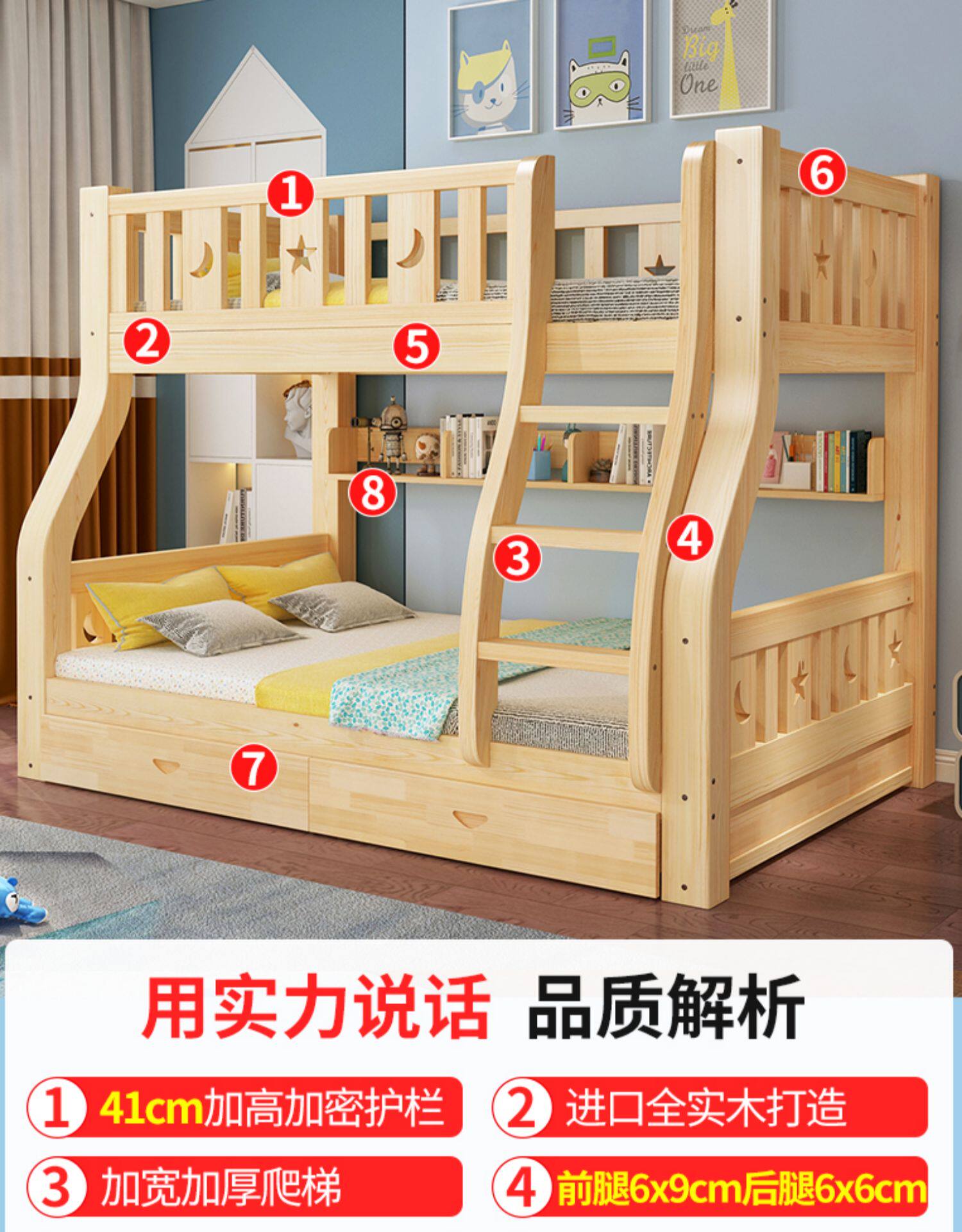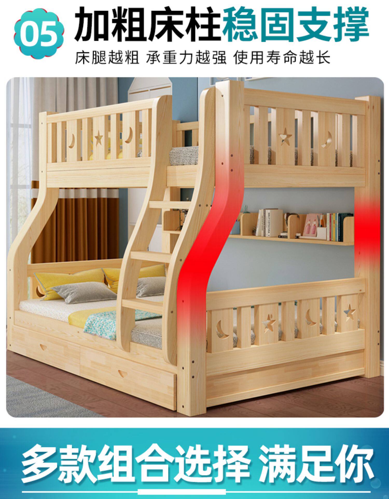 Твердая древесина верх и низ кровать двухслойный Кровать два слоя высокая Поздняя двуспальная кровать верх и низ Постельное белье детские Кровать матери с кроватью