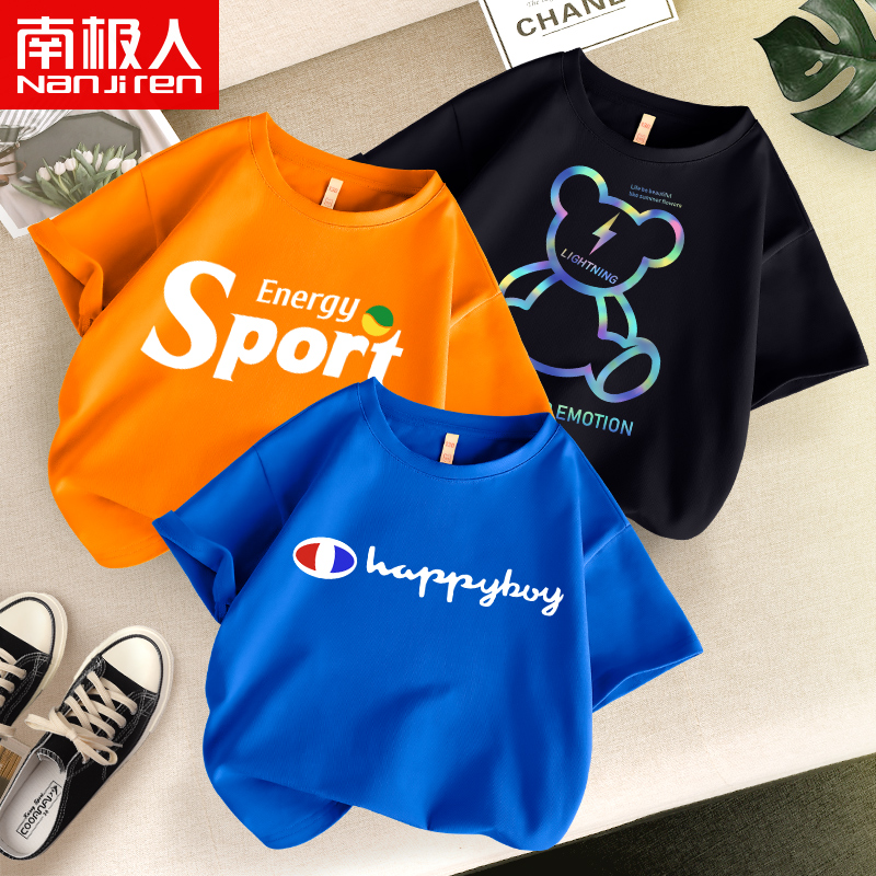 На мальчика Футболка короткий рукав чистый хлопок 2022 новая коллекция Одежда большой ребенок мужской Летнее платье детское Половина рукава детские верх Подводное лето