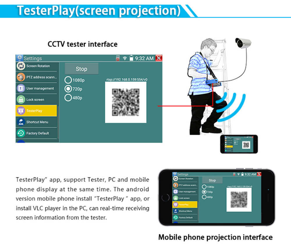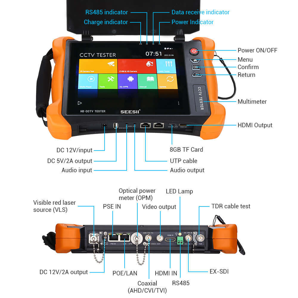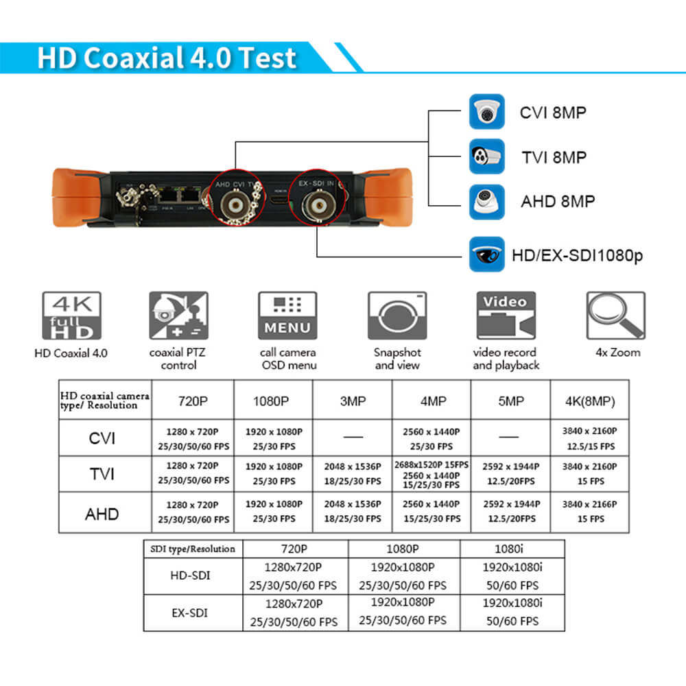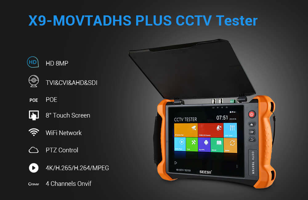 X9-MOVTADHS 8" HD CCTV Tester IP Camera Tester Monitor 4K Re