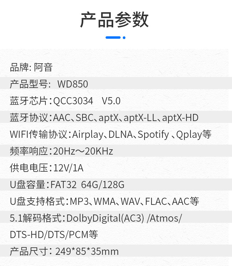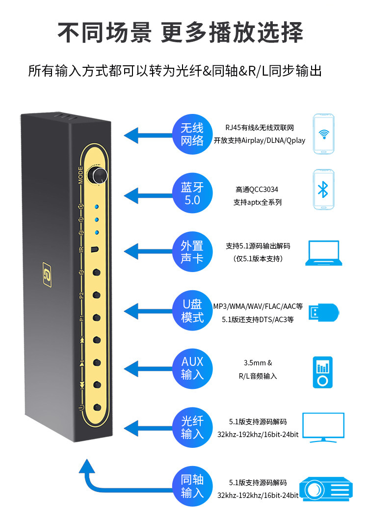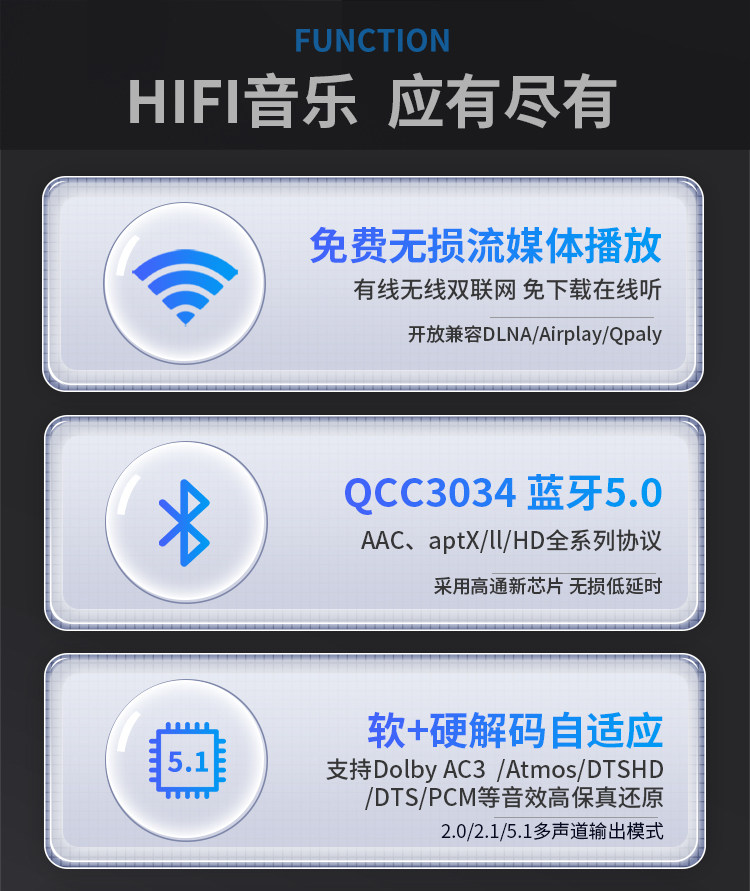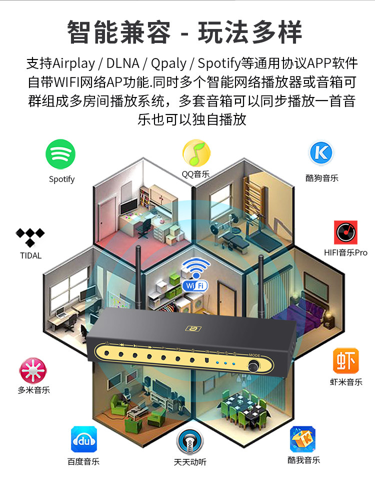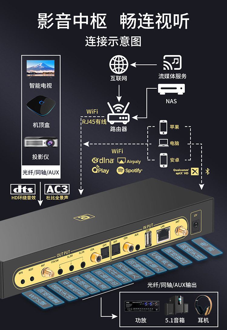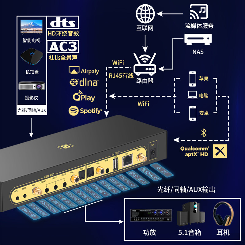 Wi-Fi Streaming Media Player APTXHD синий Зуб 5.0 частота Получить 5,1 жесткого декодирования DTSHD полностью Jingsheng AC3.