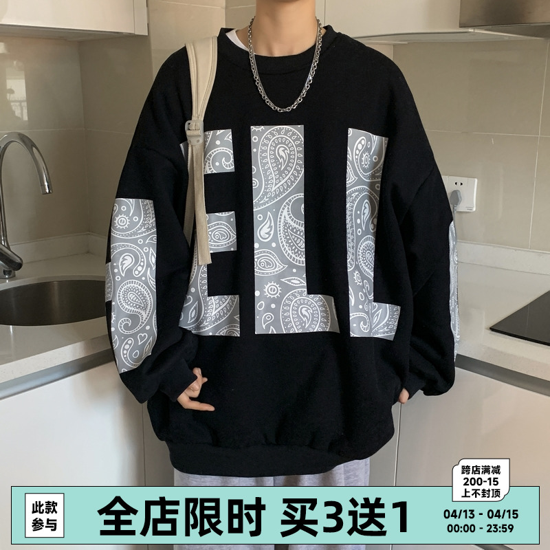 Толстовка мужской oversize демисезонный Сезон свободно круглый воротник без крышка большой размер модные ins для влюбленной пары Пакет капюшон куртка
