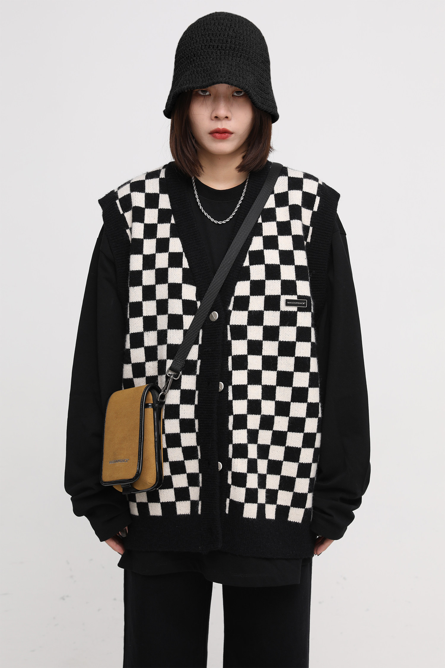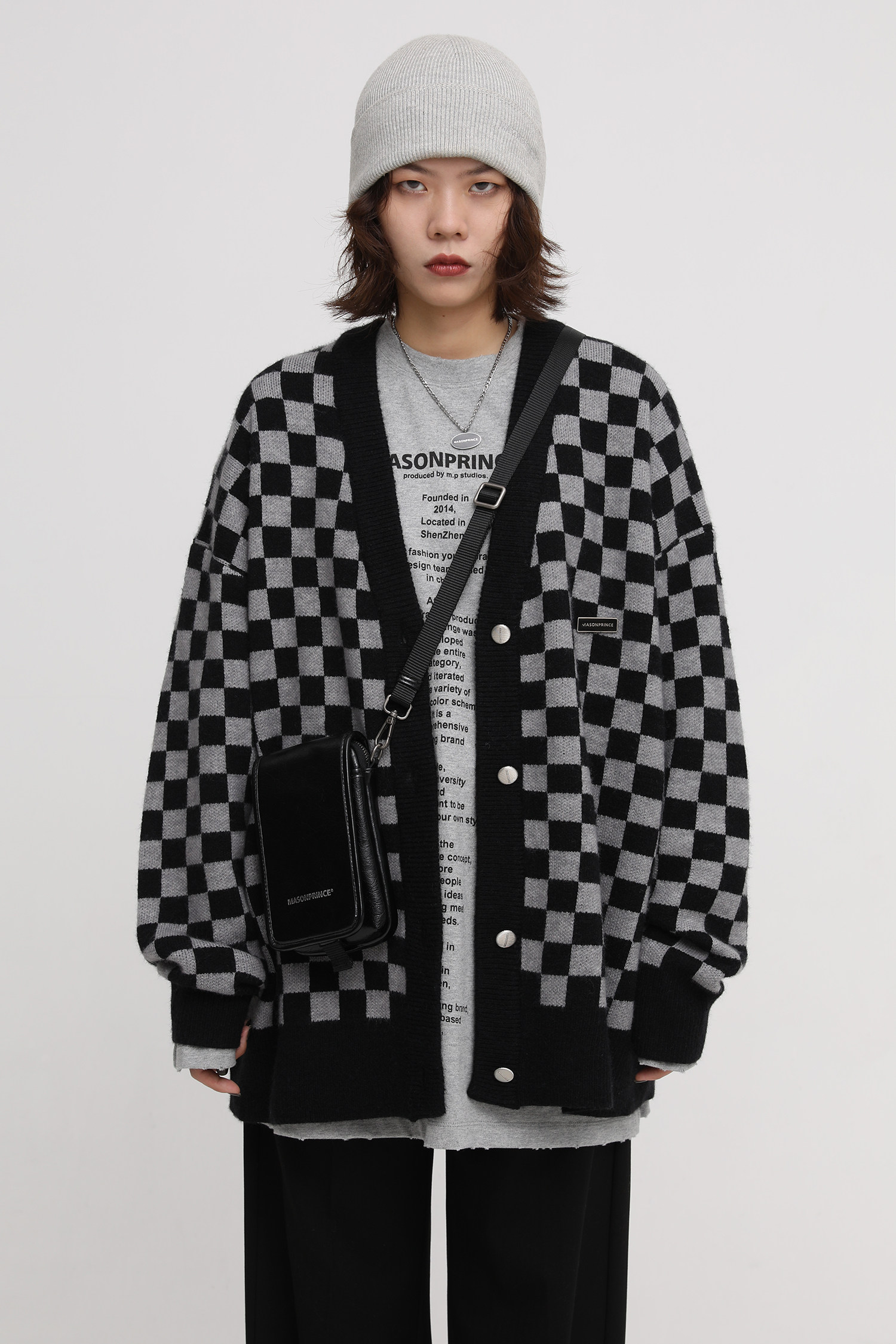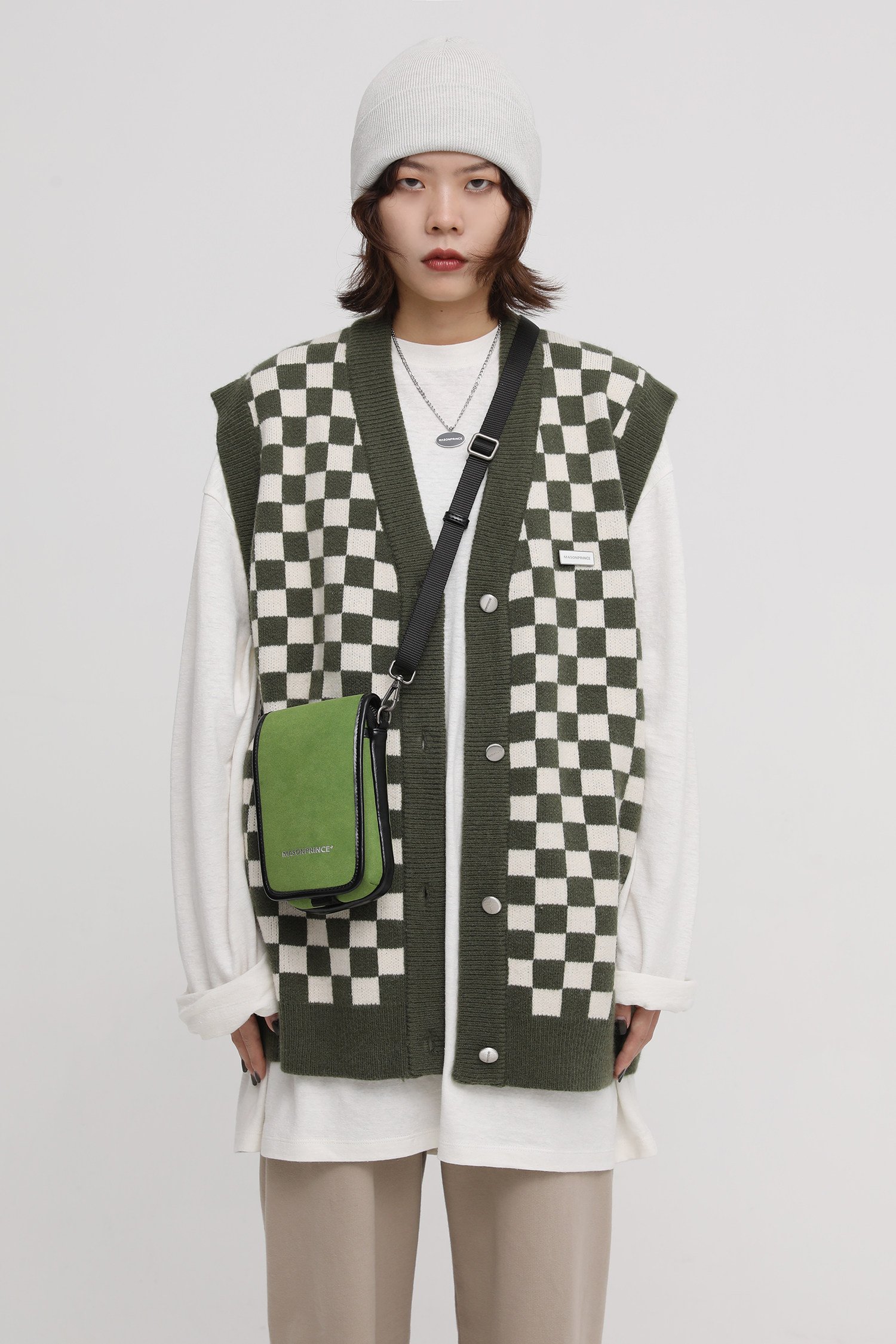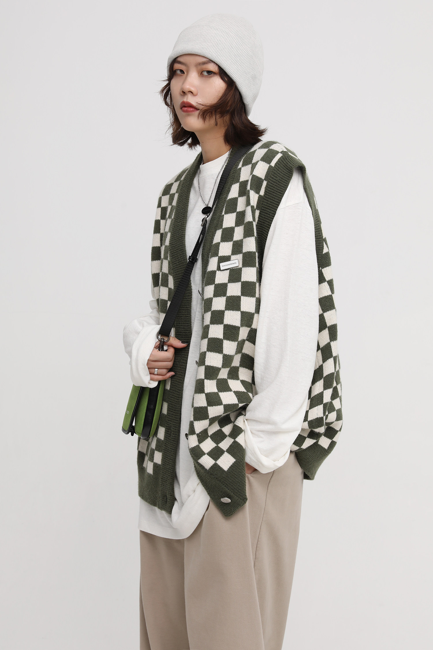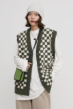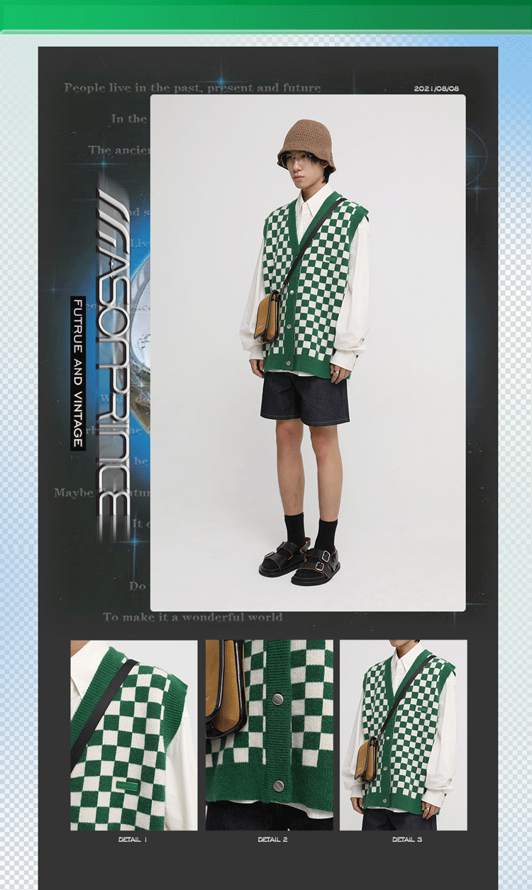 【Прилив woo эксклюзивный】MasonPrince демисезонный новая коллекция Свободная шахматная доска верх Одежда мужской трикотажный кардиган Жилет