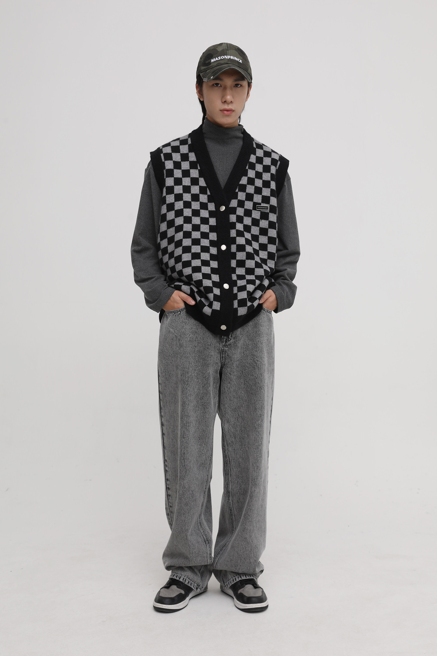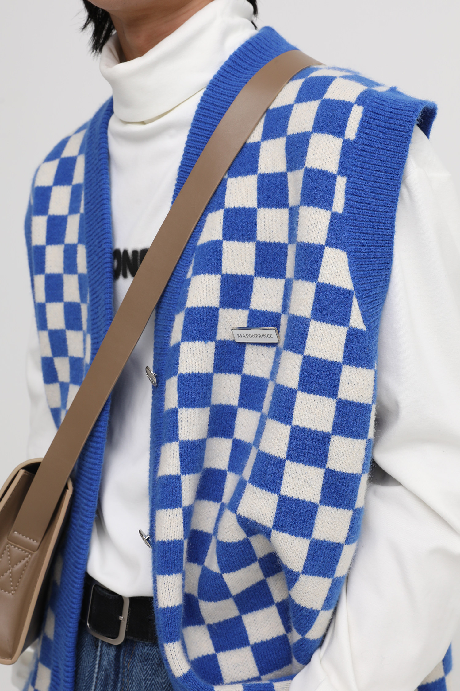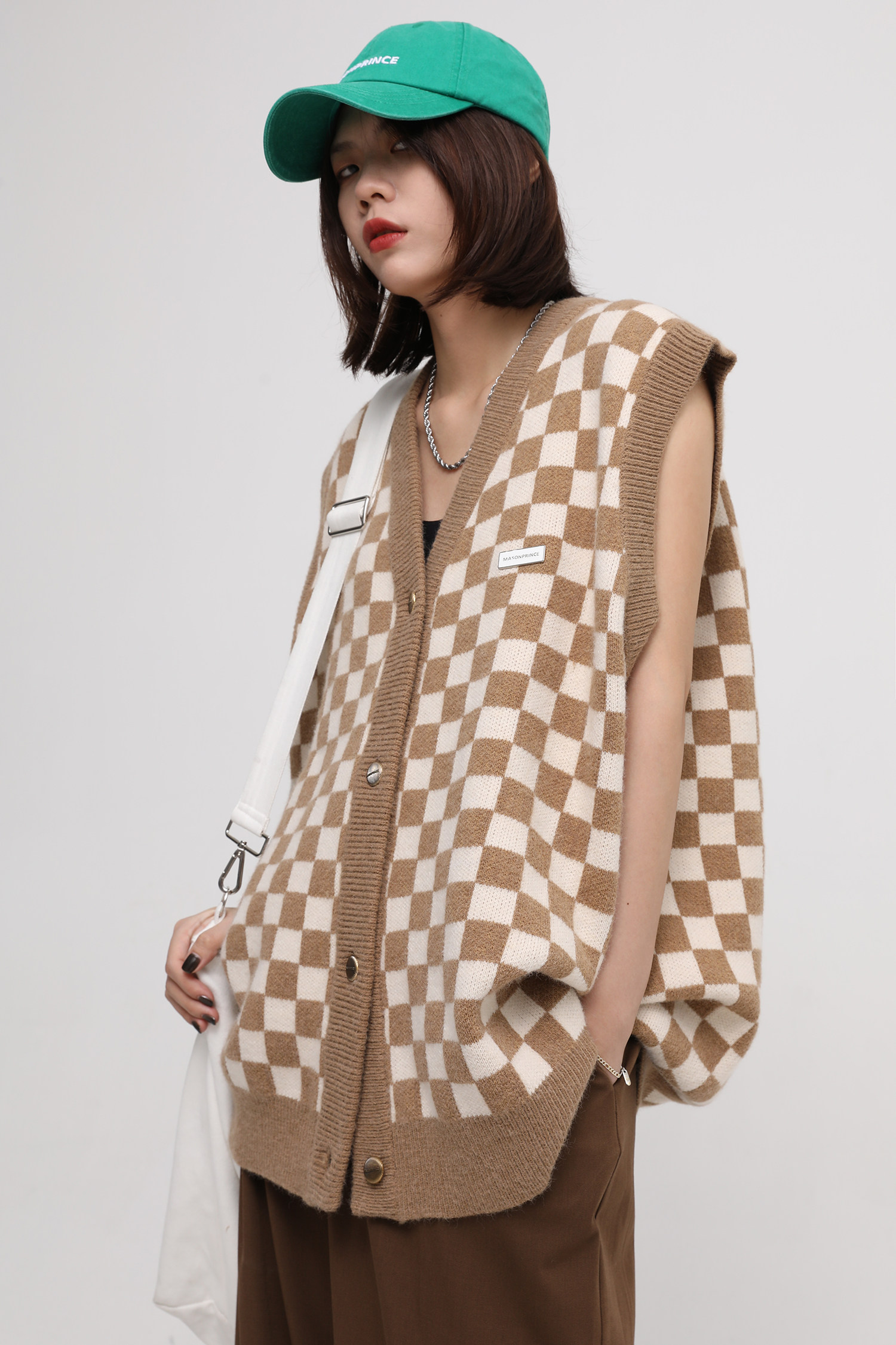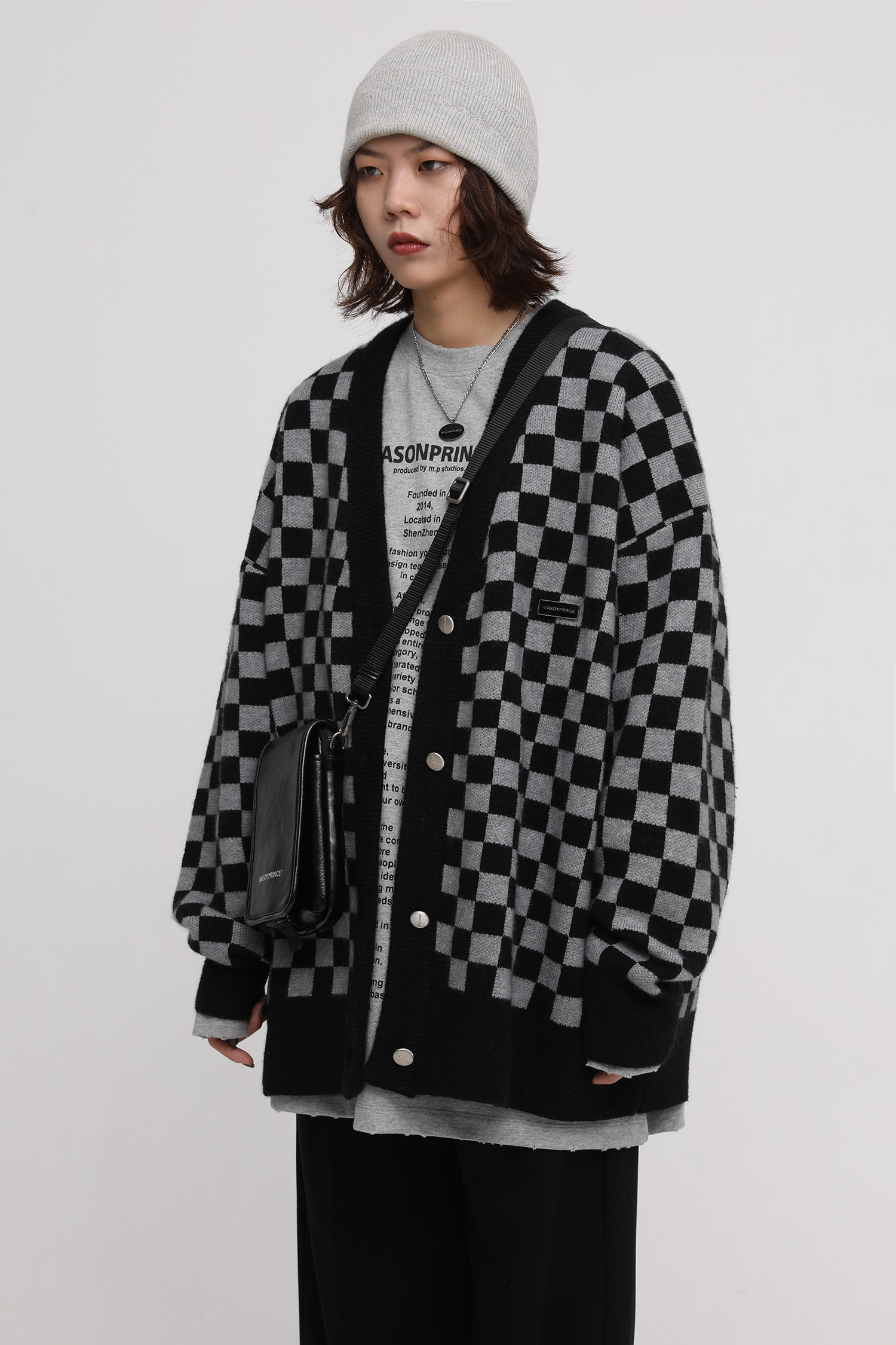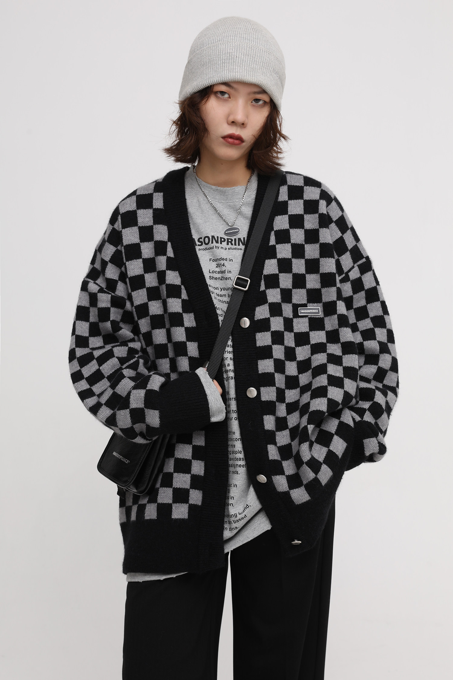 【Прилив woo эксклюзивный】MasonPrince демисезонный новая коллекция Свободная шахматная доска верх Одежда мужской трикотажный кардиган Жилет