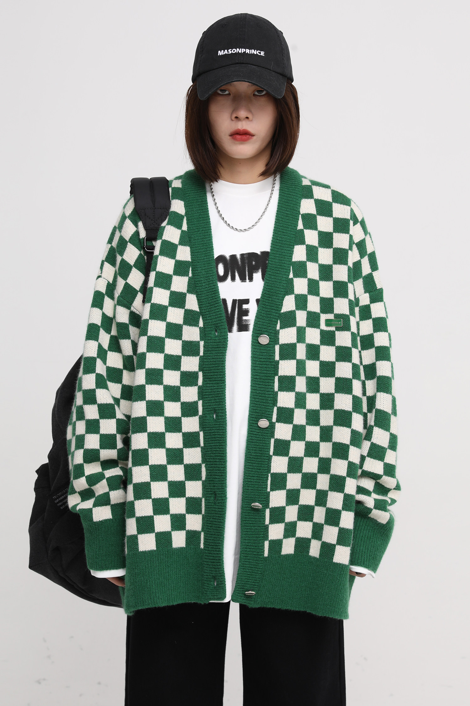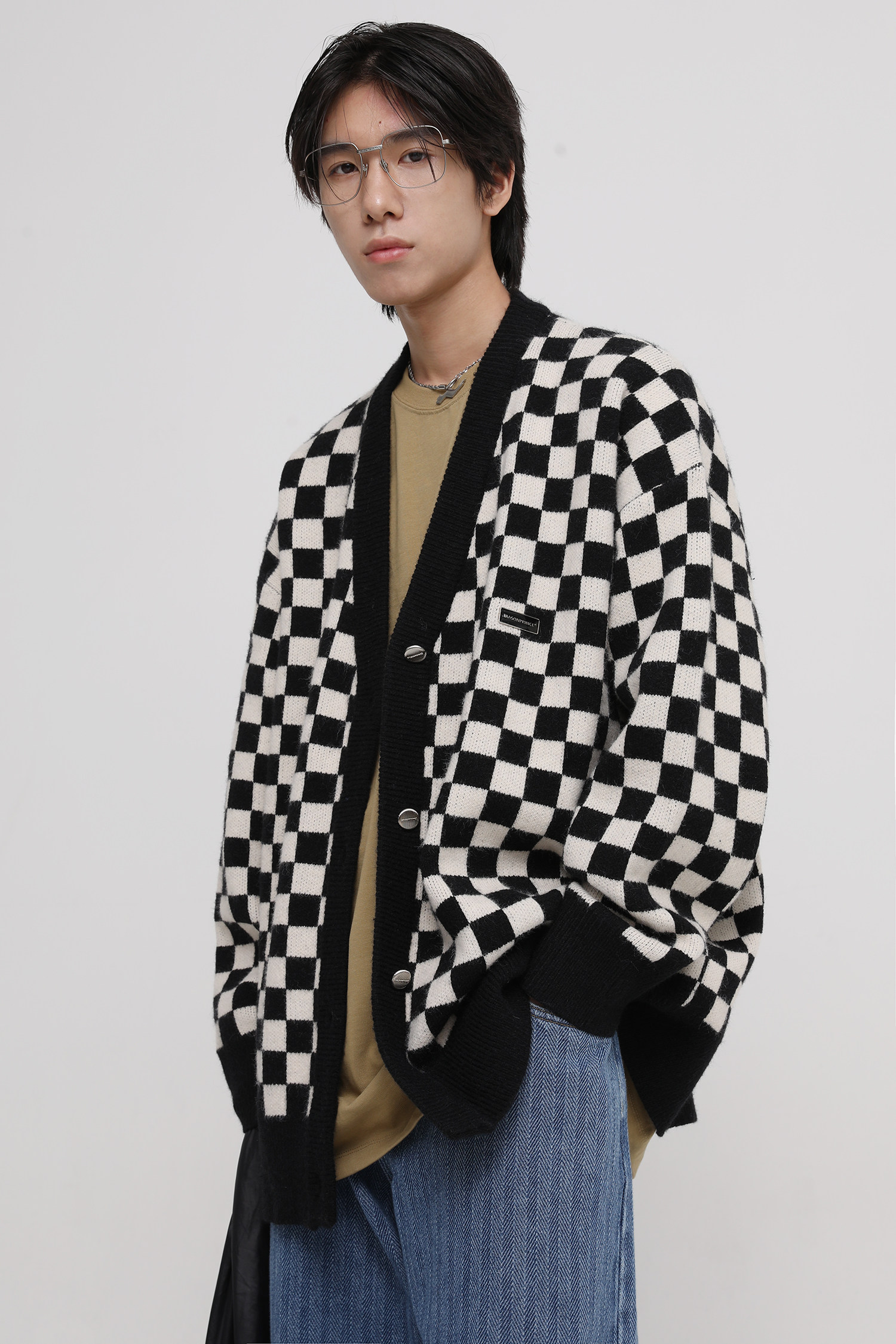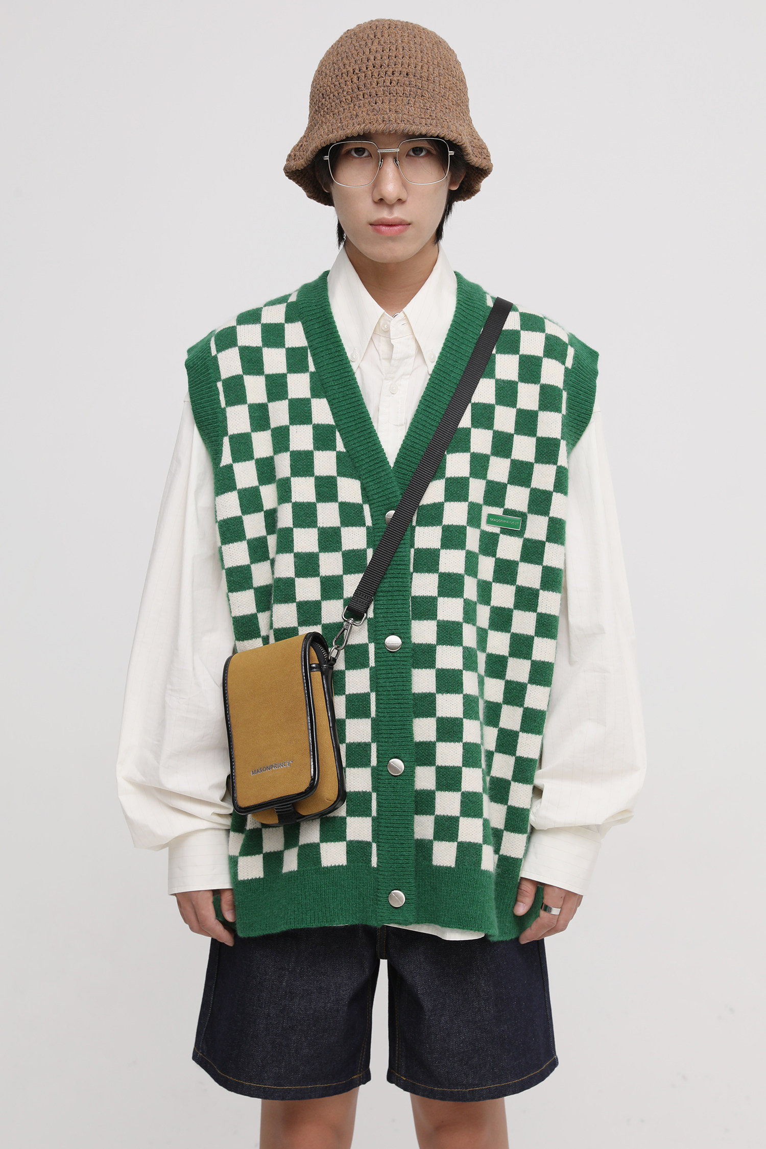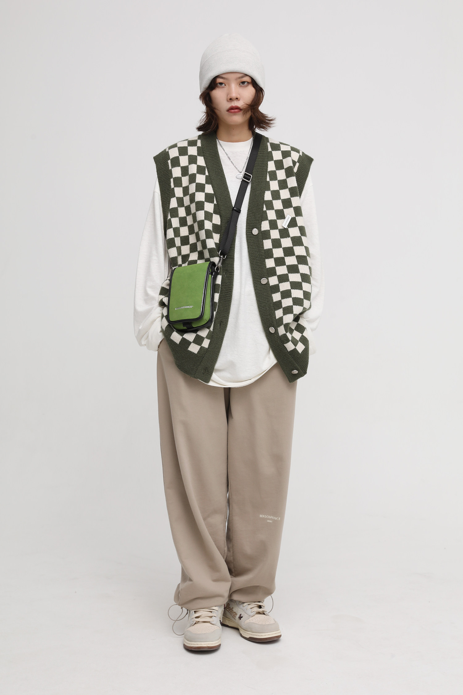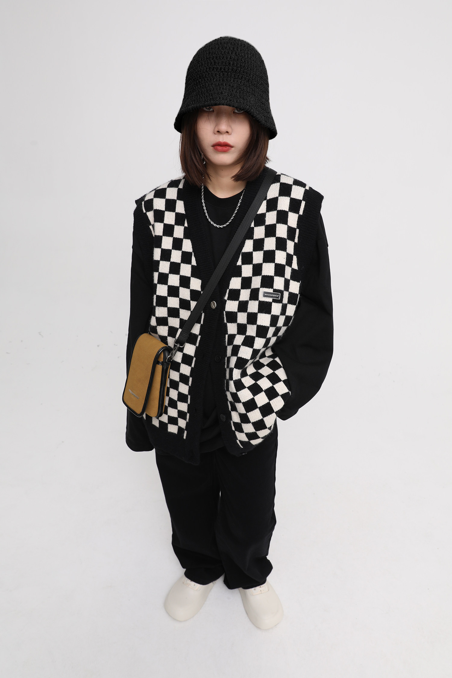 【Прилив woo эксклюзивный】MasonPrince демисезонный новая коллекция Свободная шахматная доска верх Одежда мужской трикотажный кардиган Жилет