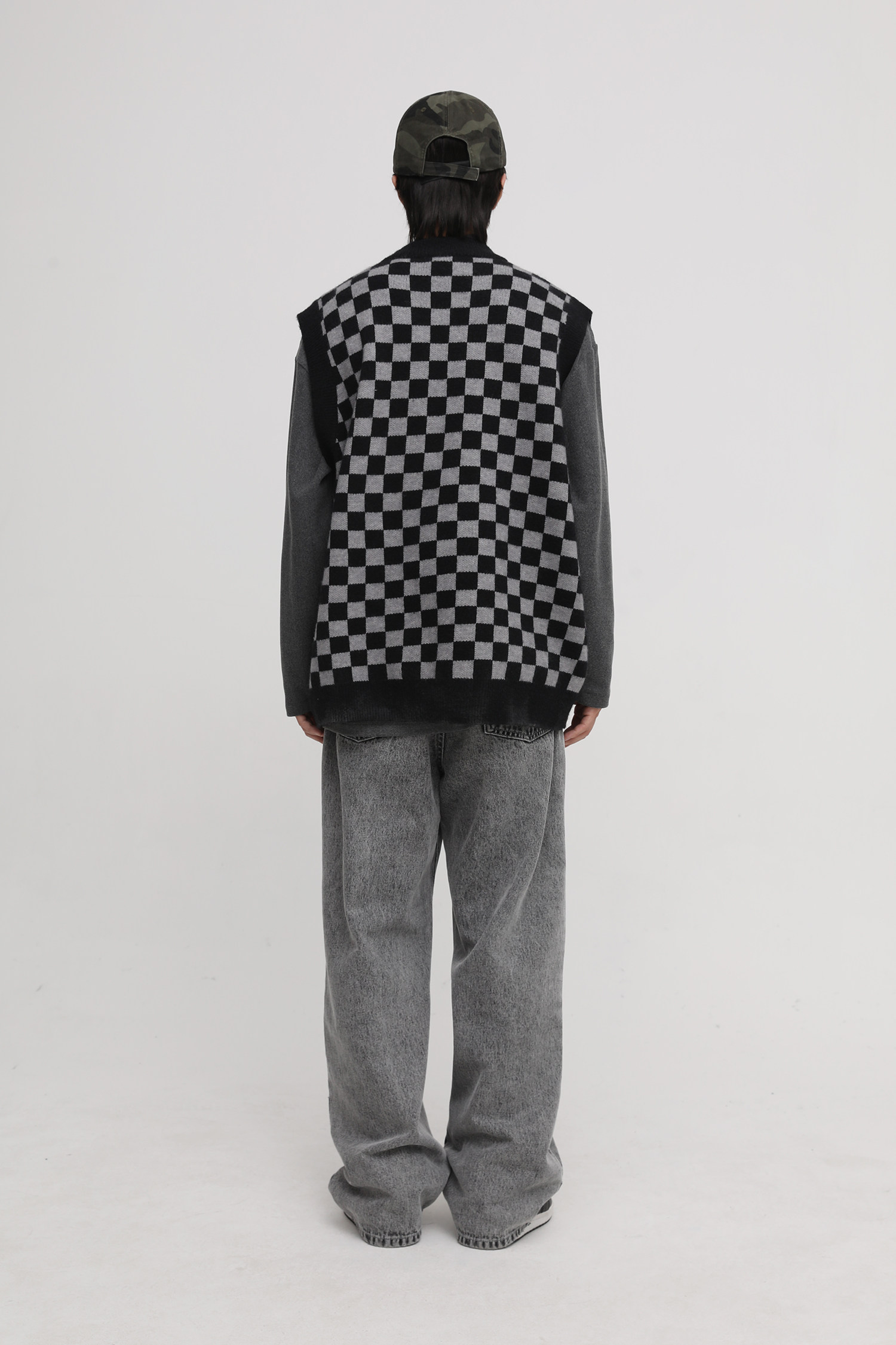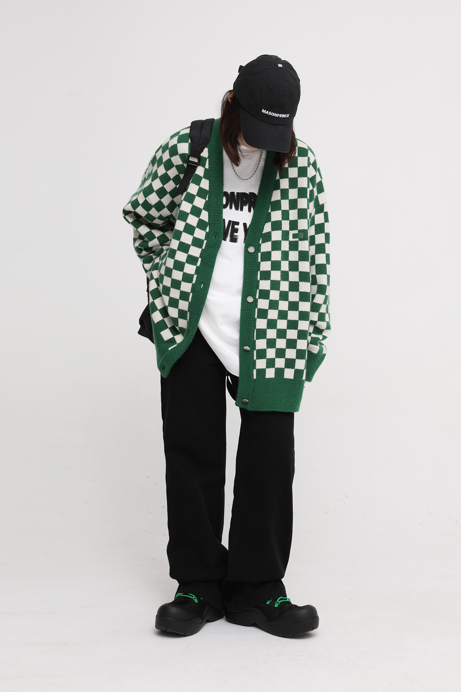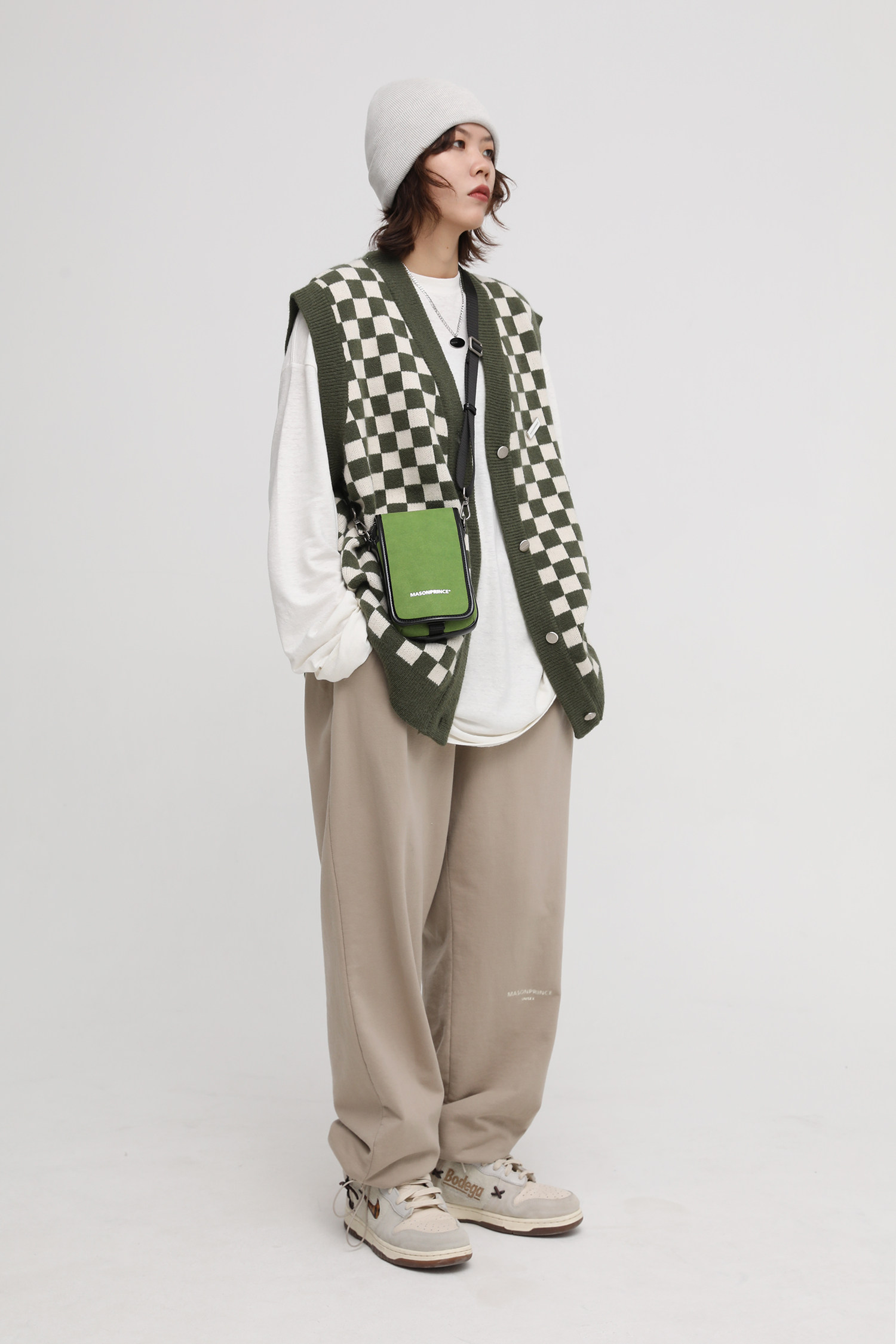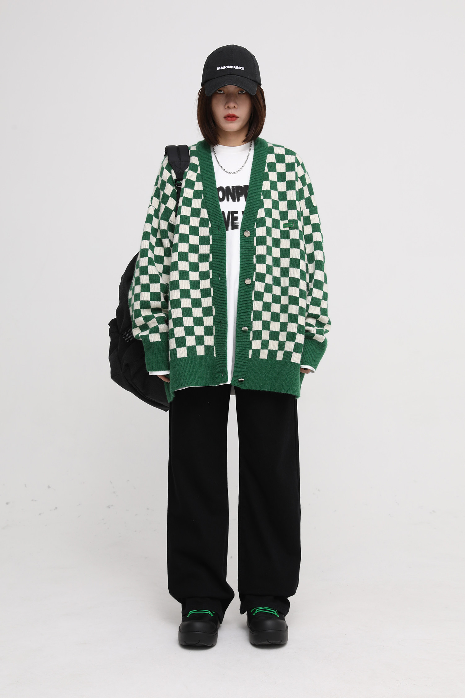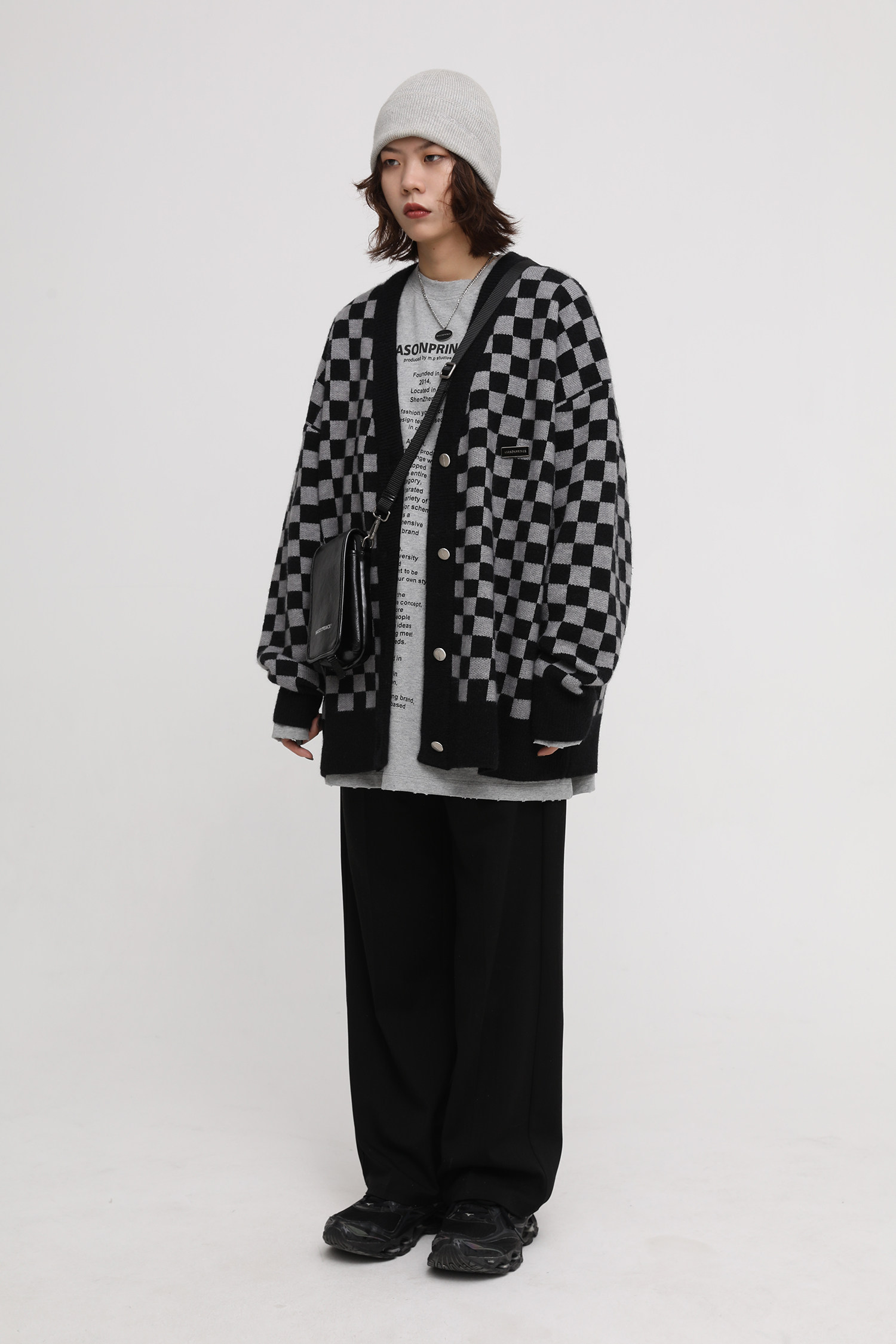 【Прилив woo эксклюзивный】MasonPrince демисезонный новая коллекция Свободная шахматная доска верх Одежда мужской трикотажный кардиган Жилет