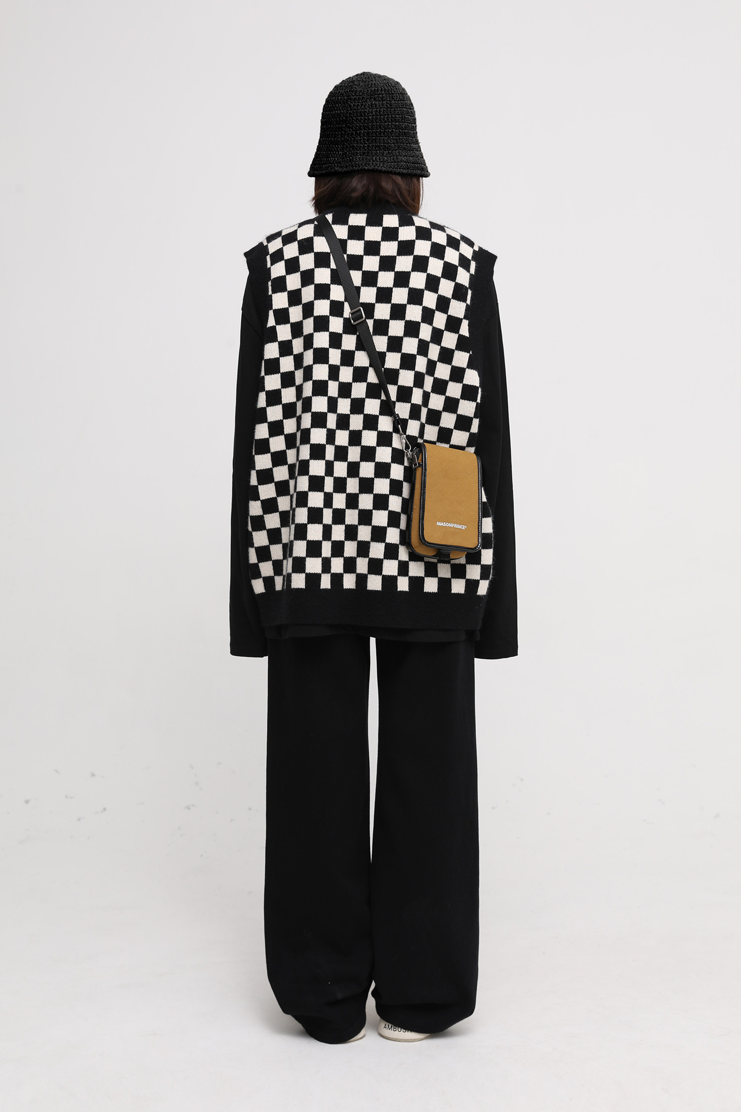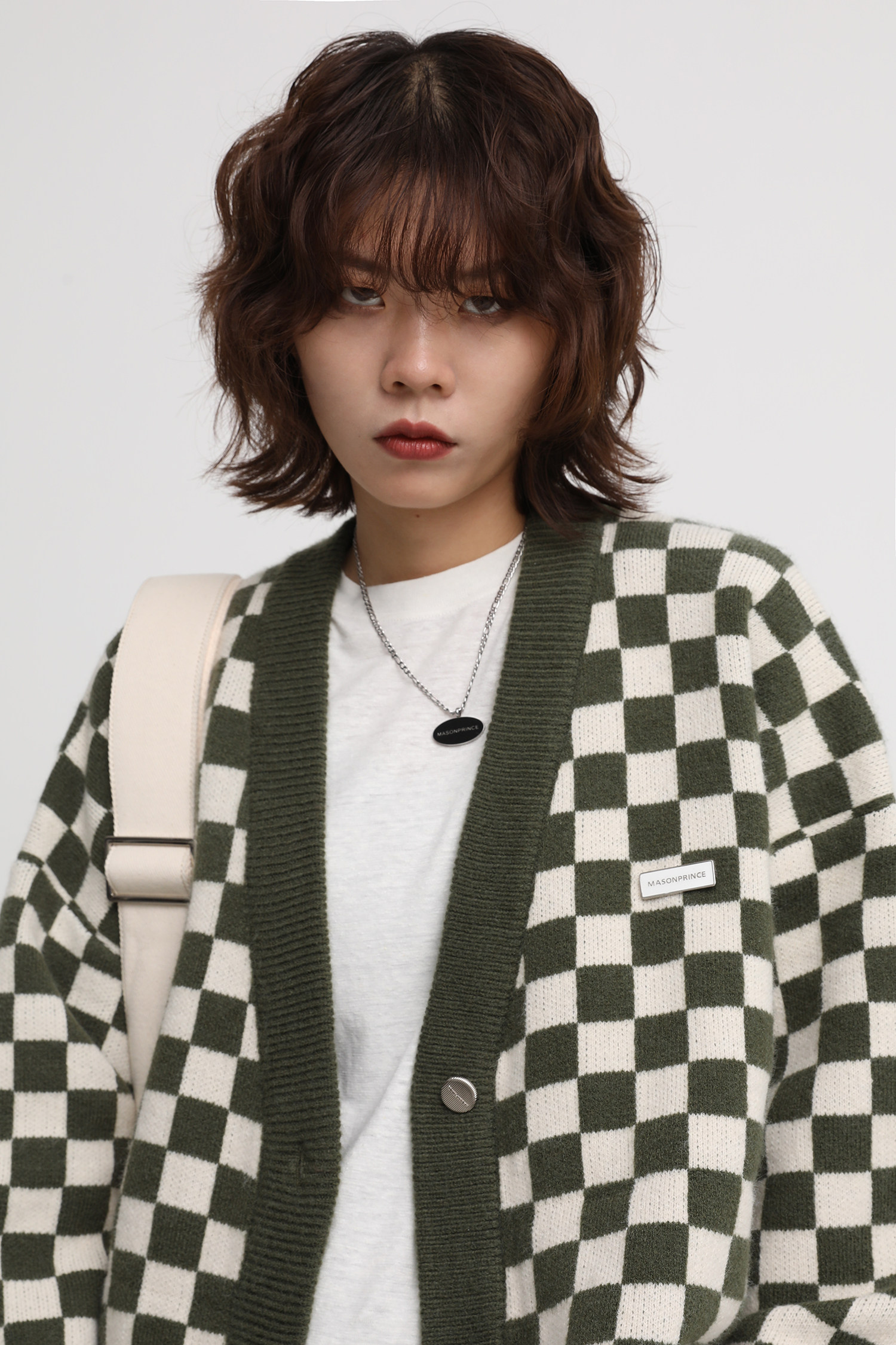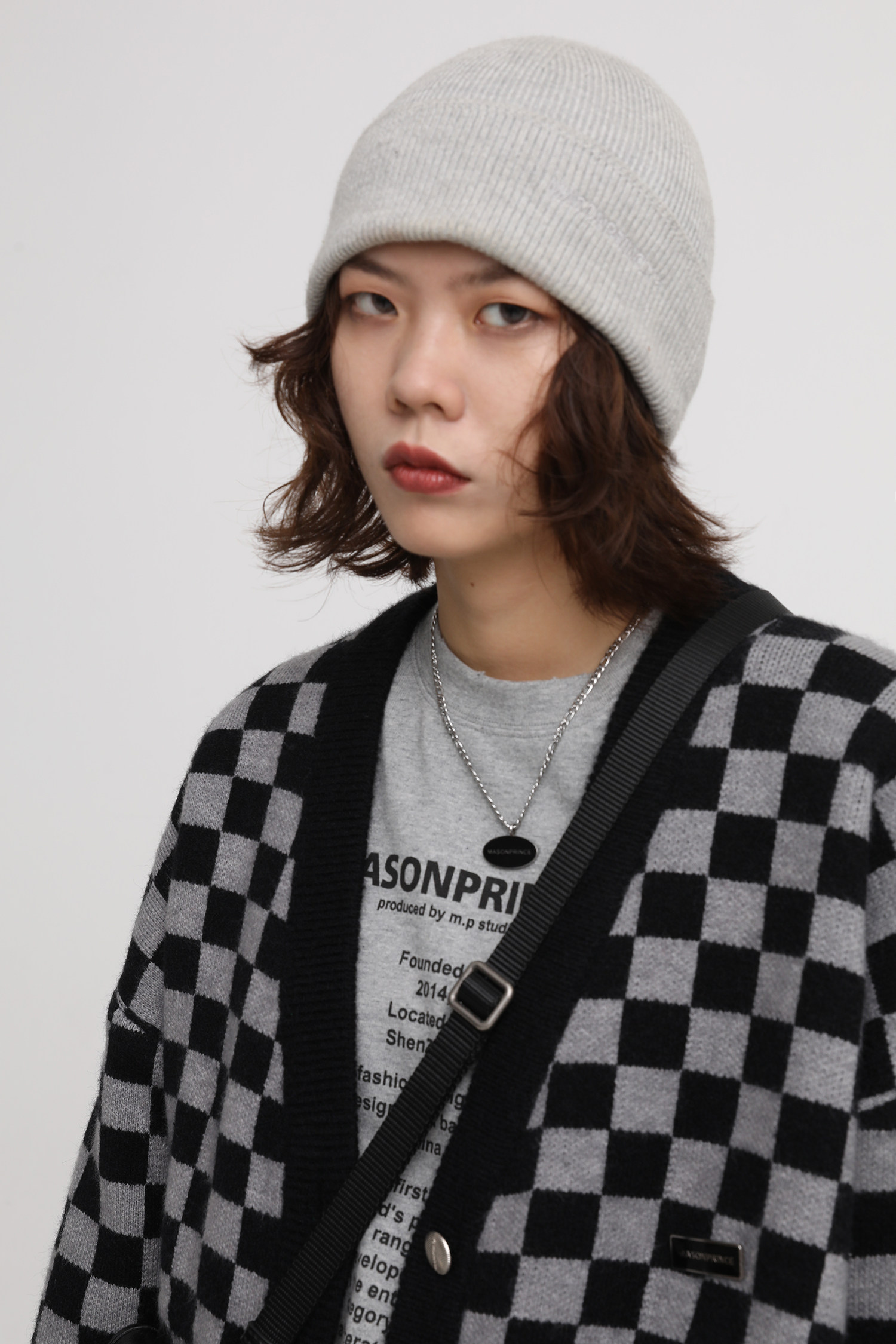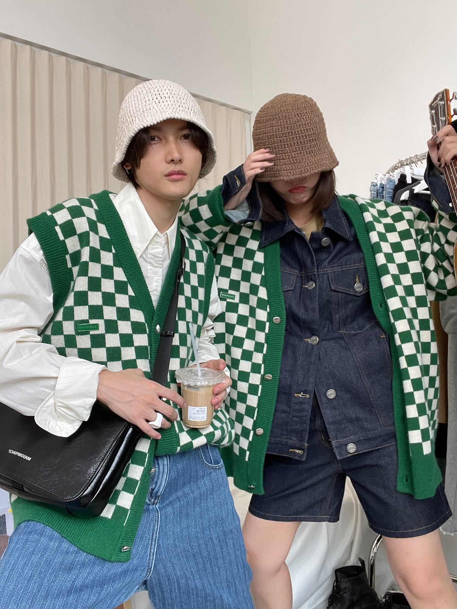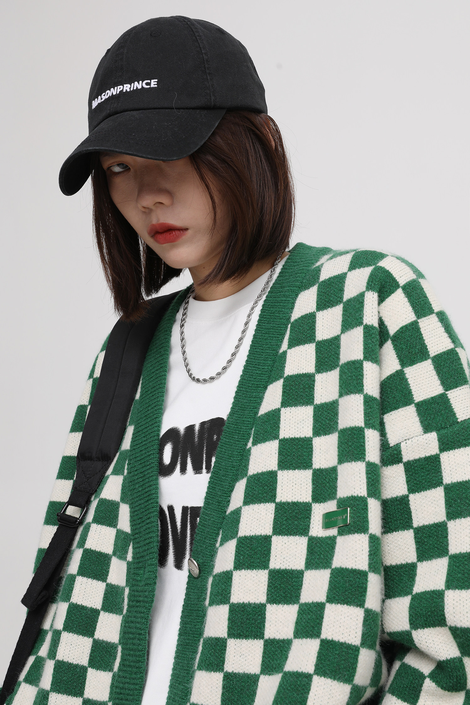【Прилив woo эксклюзивный】MasonPrince демисезонный новая коллекция Свободная шахматная доска верх Одежда мужской трикотажный кардиган Жилет