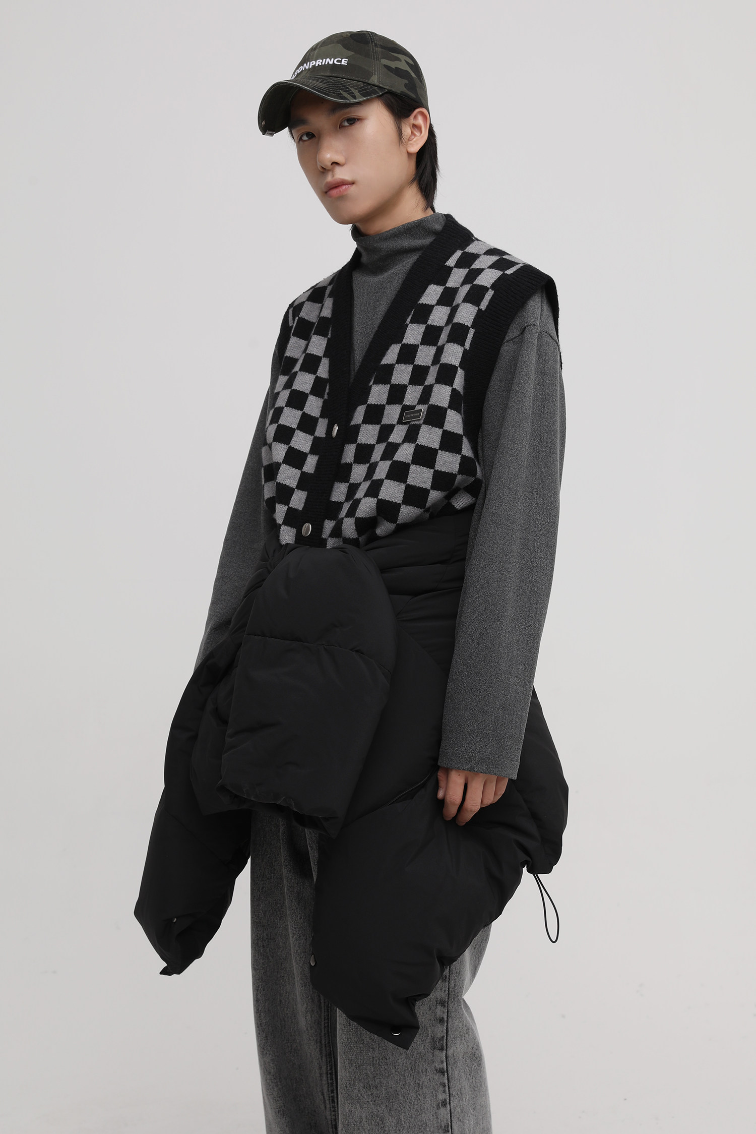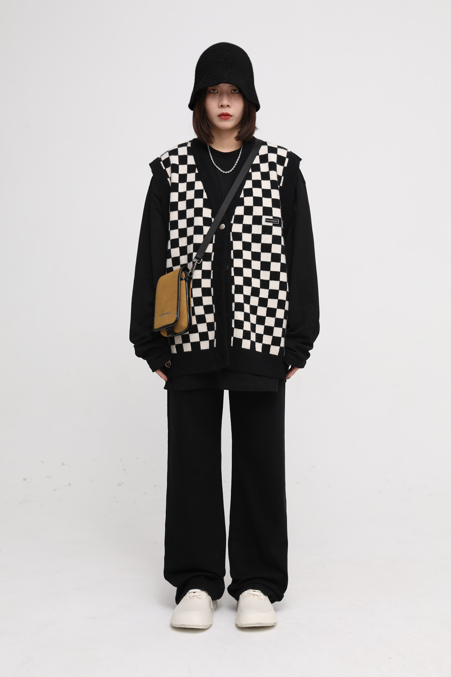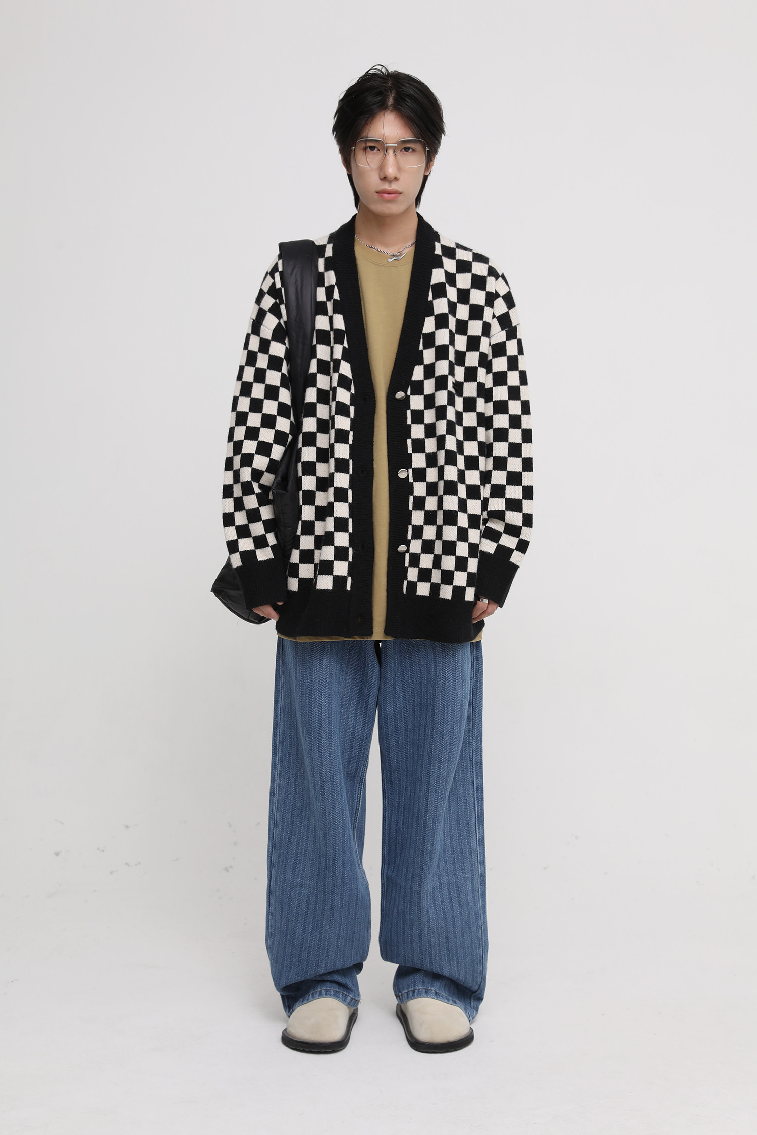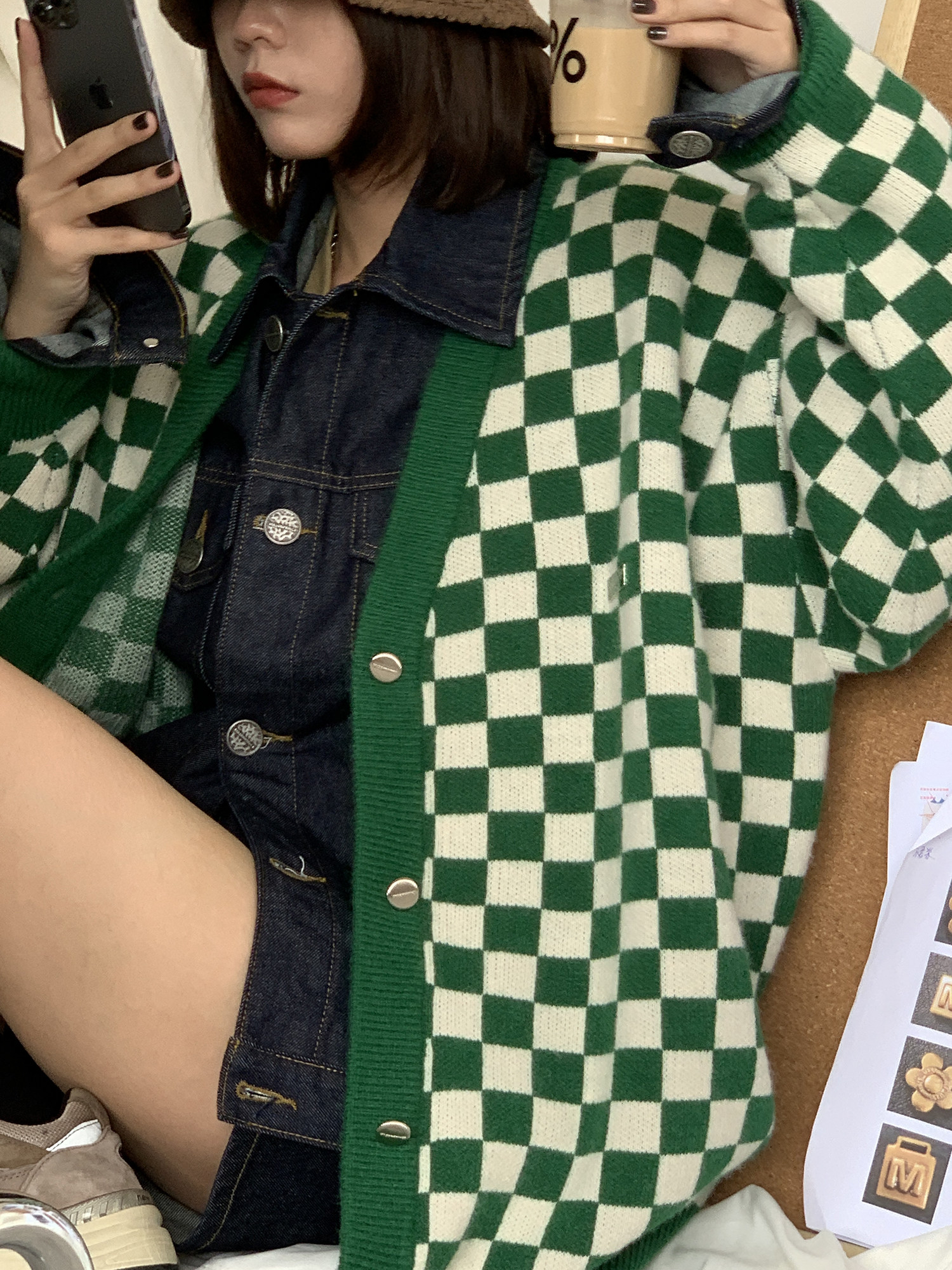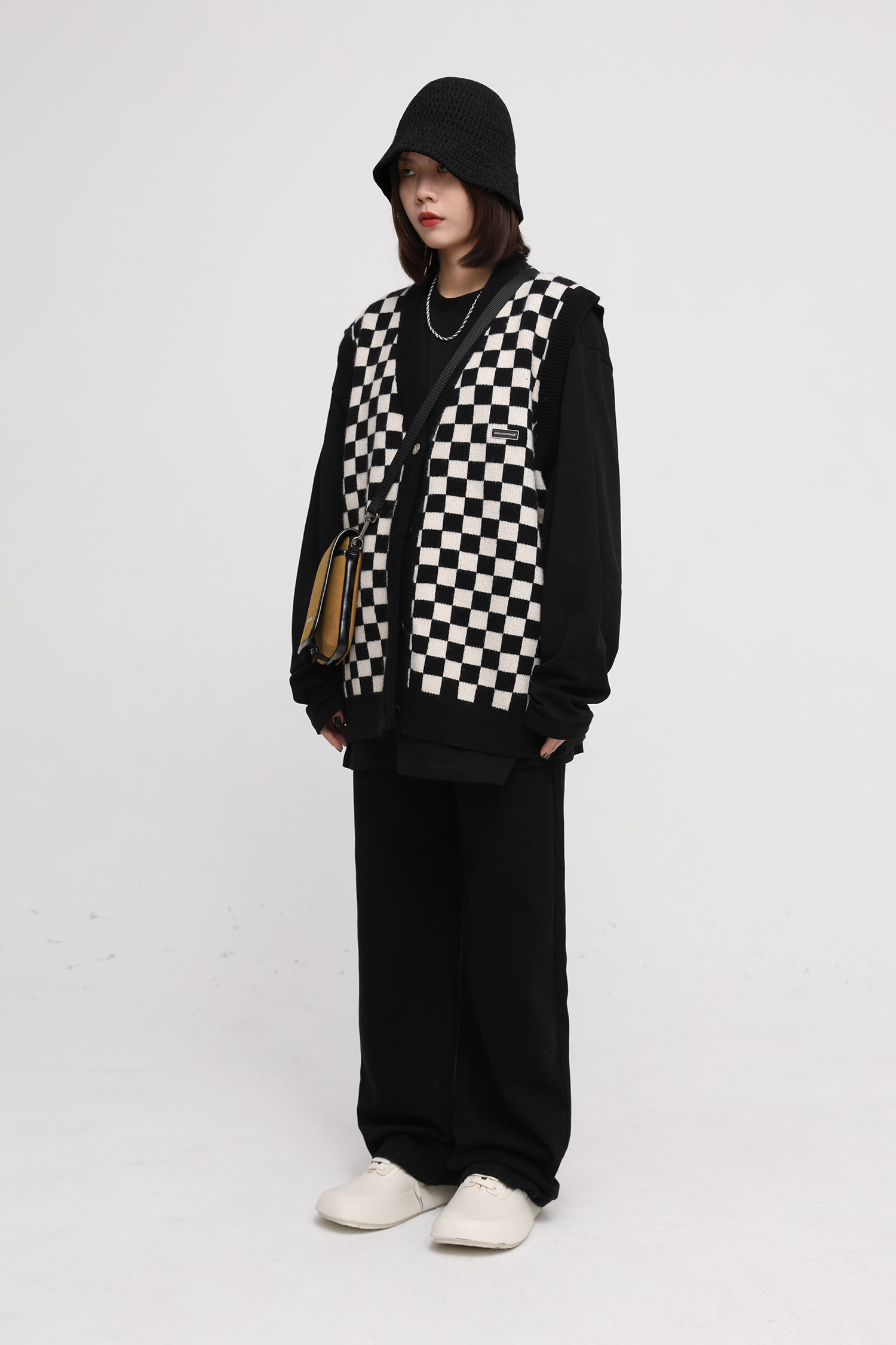 【Прилив woo эксклюзивный】MasonPrince демисезонный новая коллекция Свободная шахматная доска верх Одежда мужской трикотажный кардиган Жилет