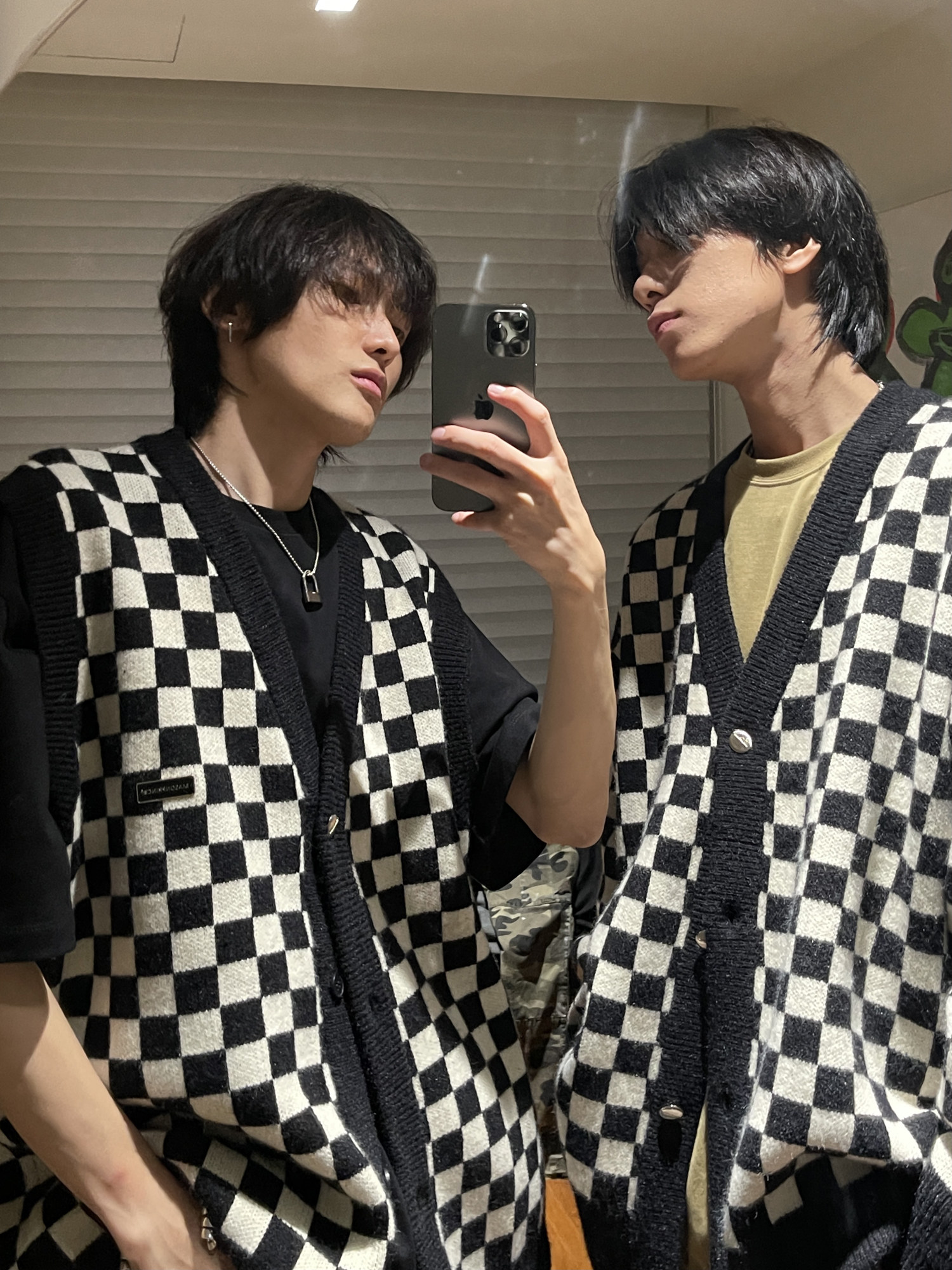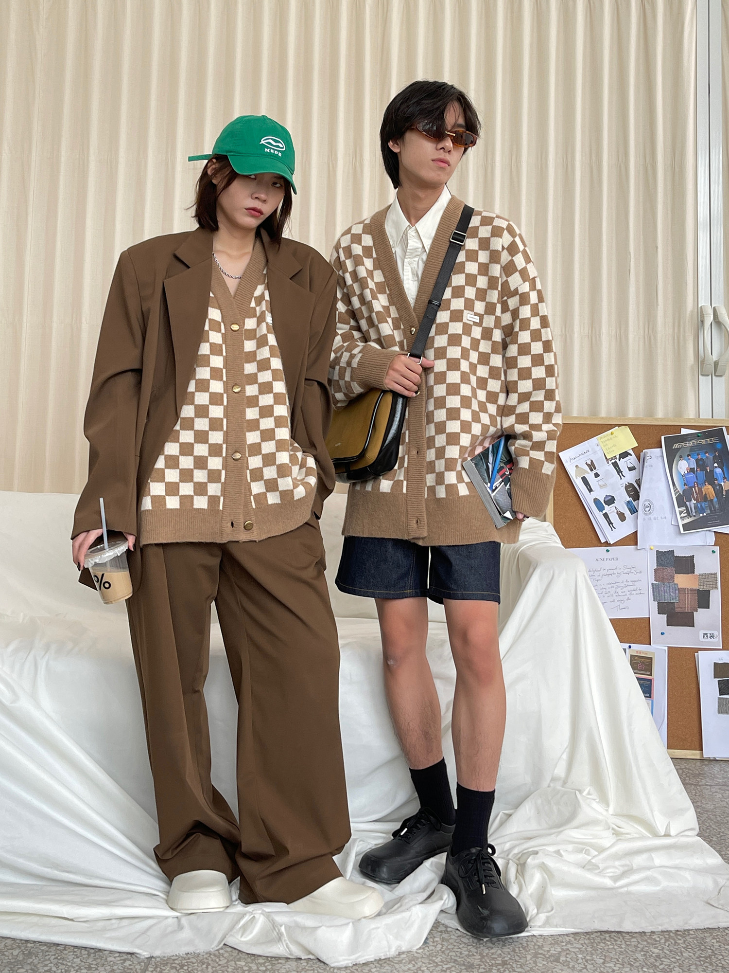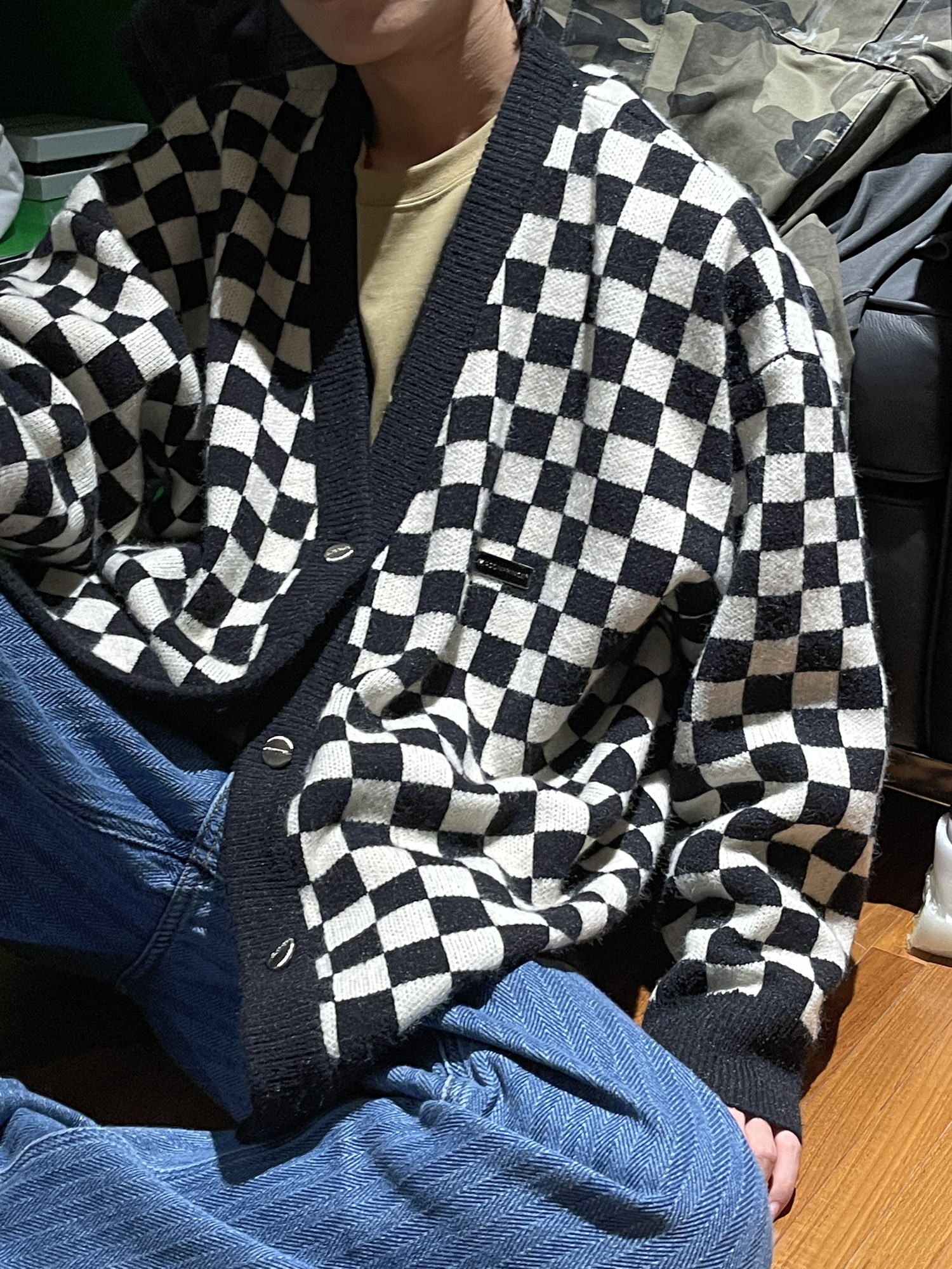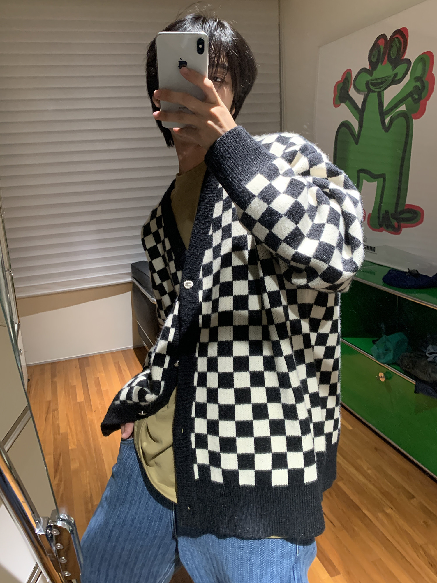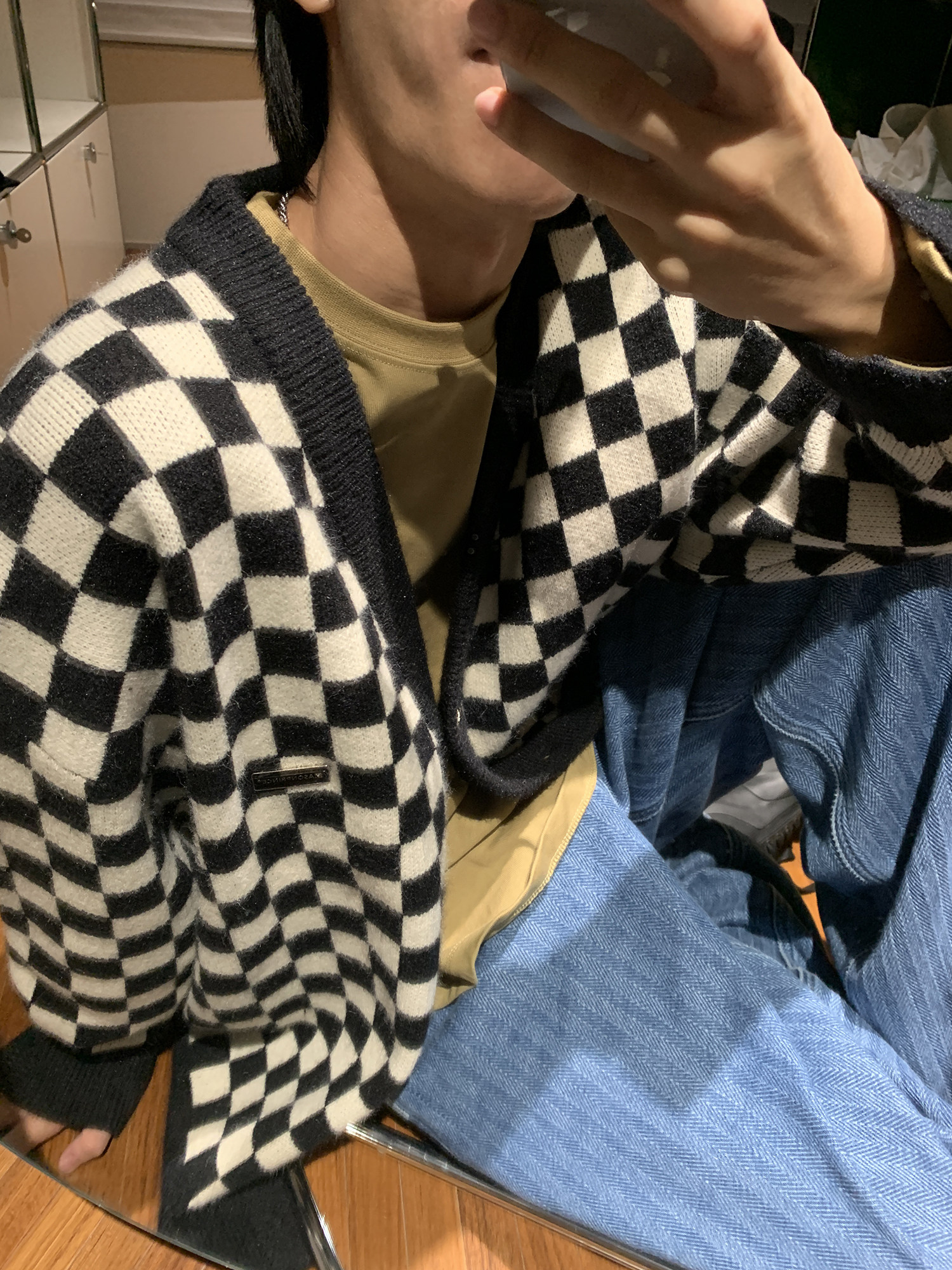 【Прилив woo эксклюзивный】MasonPrince демисезонный новая коллекция Свободная шахматная доска верх Одежда мужской трикотажный кардиган Жилет