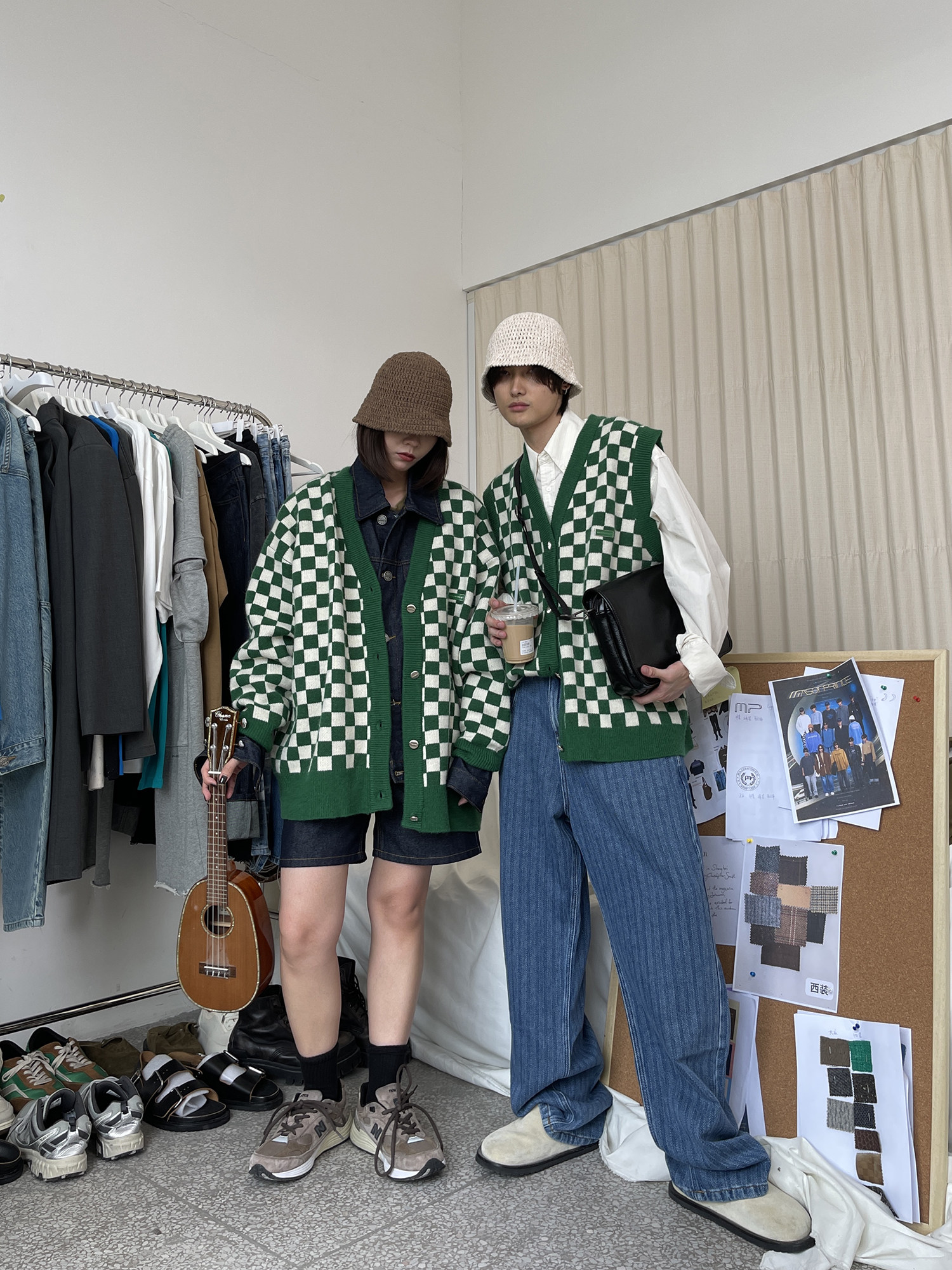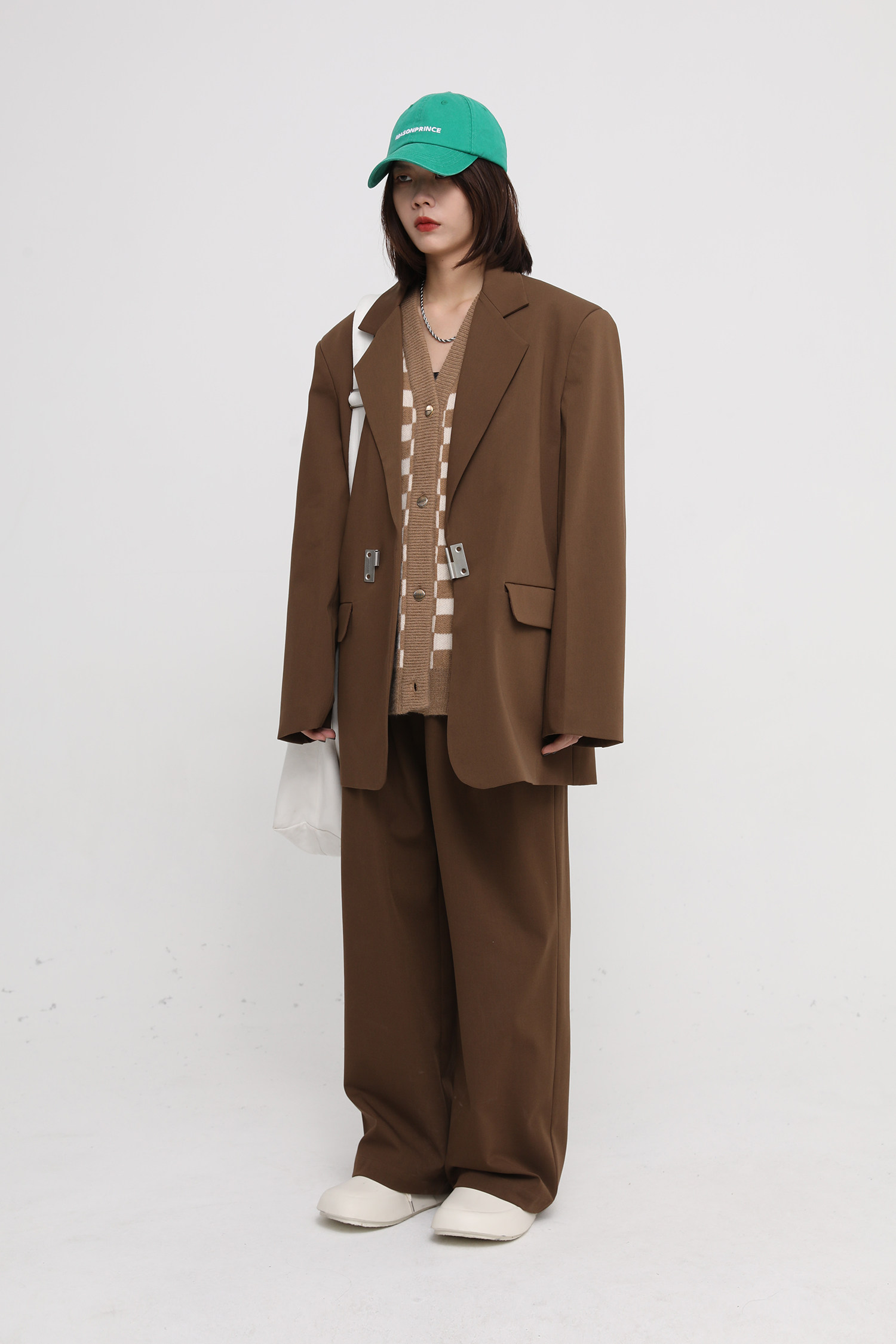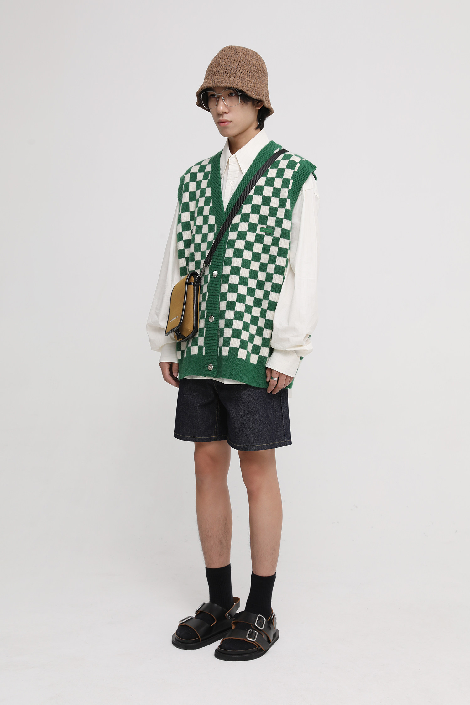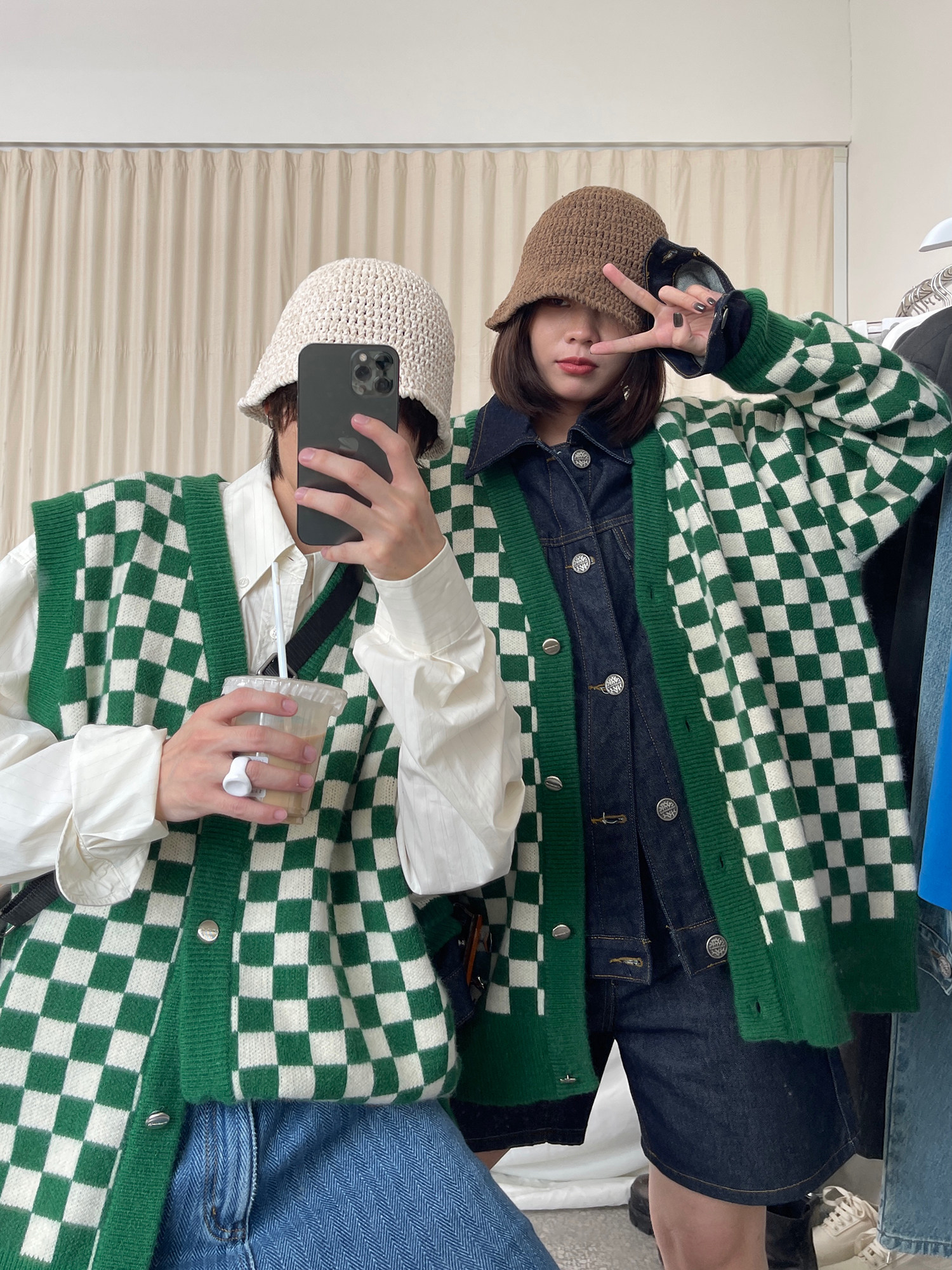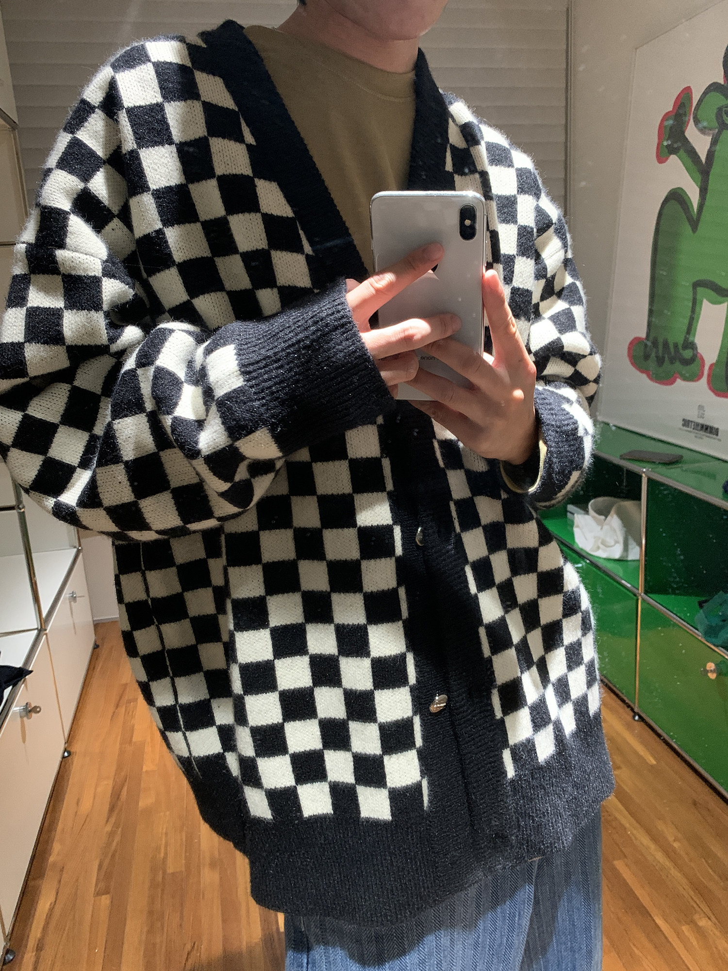 【Прилив woo эксклюзивный】MasonPrince демисезонный новая коллекция Свободная шахматная доска верх Одежда мужской трикотажный кардиган Жилет