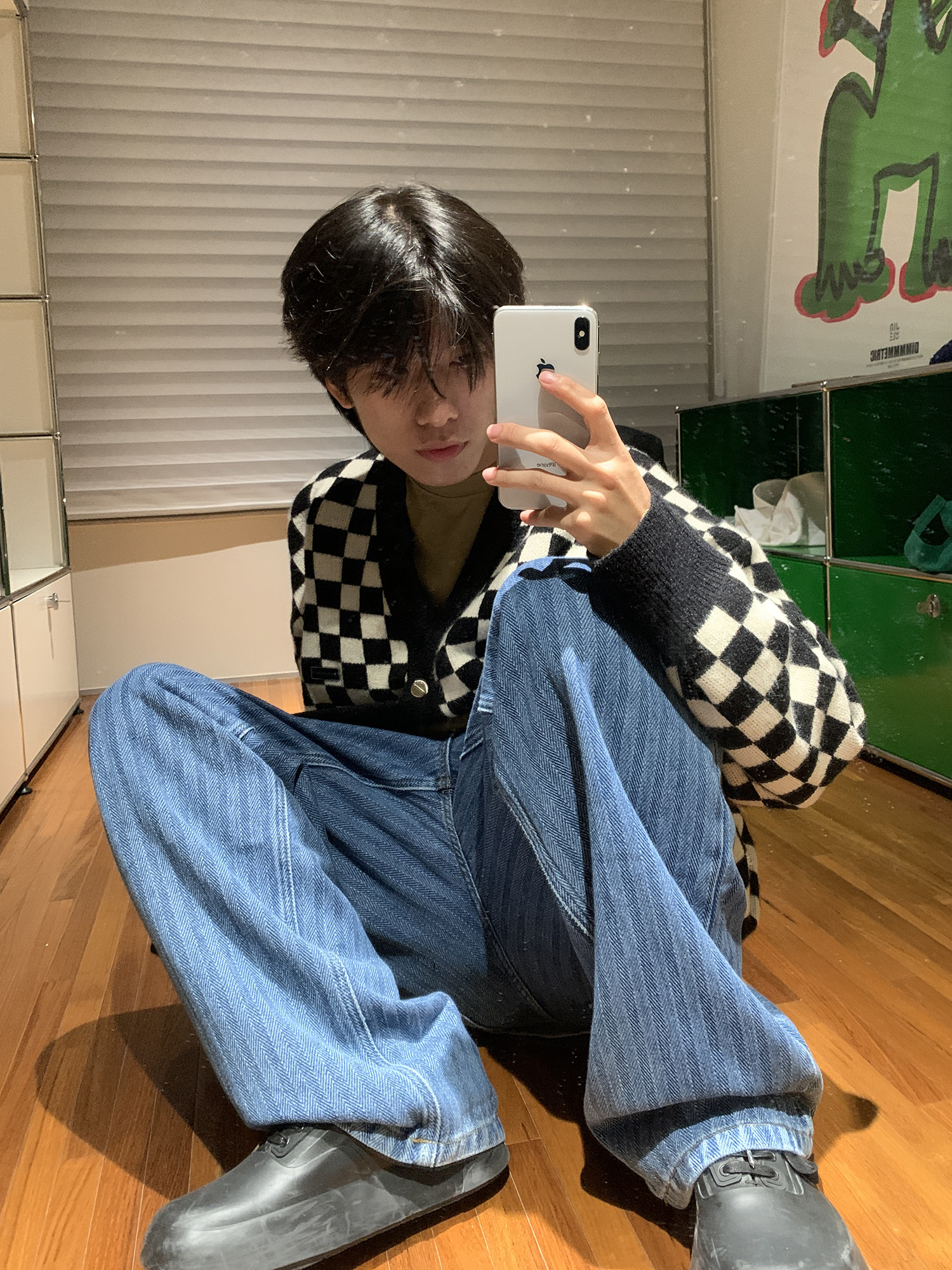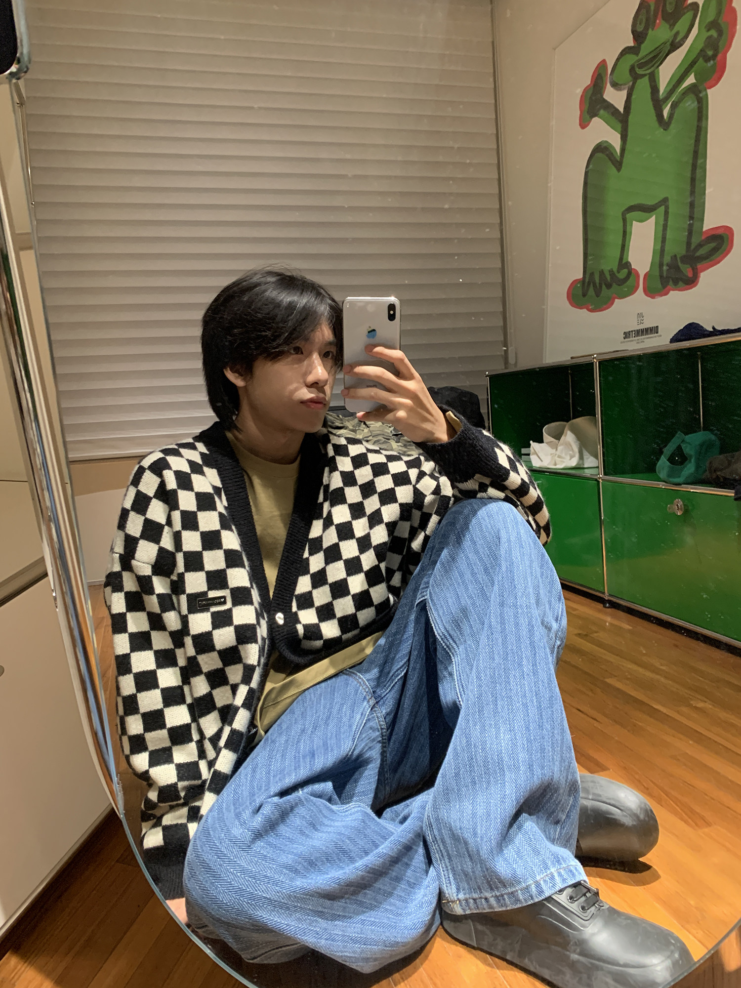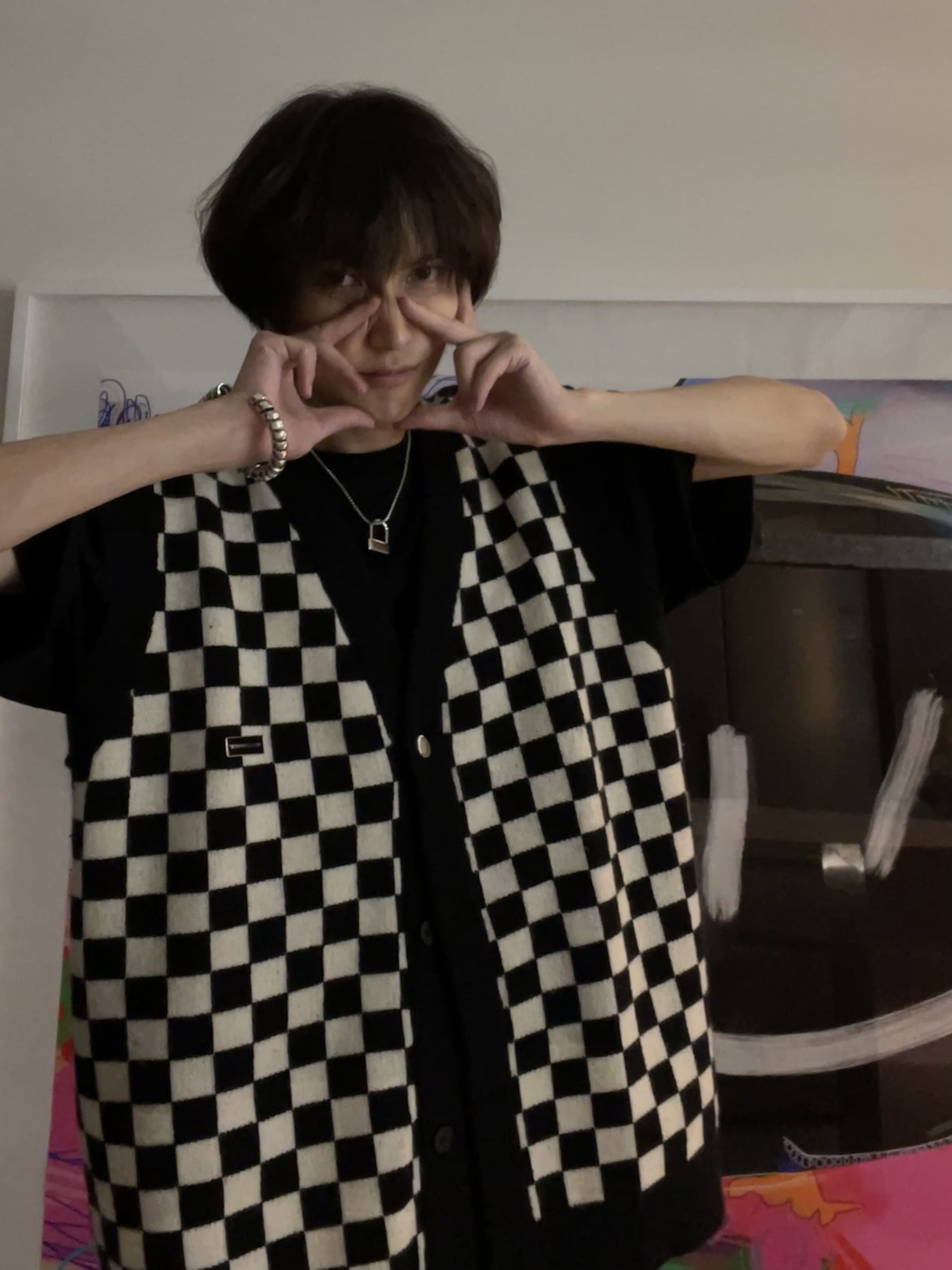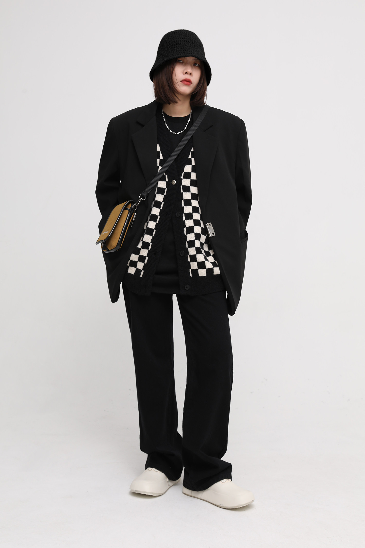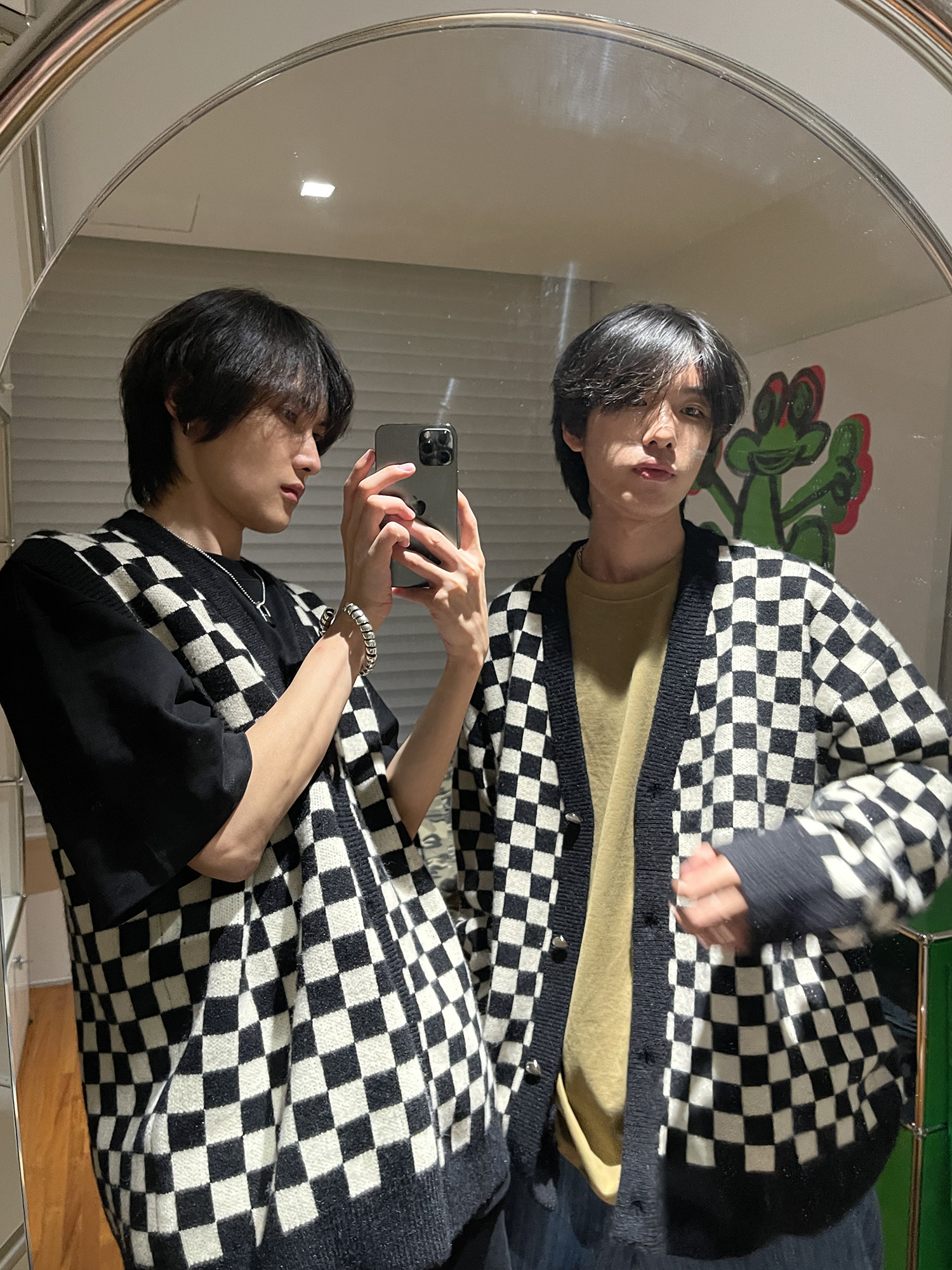 【Прилив woo эксклюзивный】MasonPrince демисезонный новая коллекция Свободная шахматная доска верх Одежда мужской трикотажный кардиган Жилет
