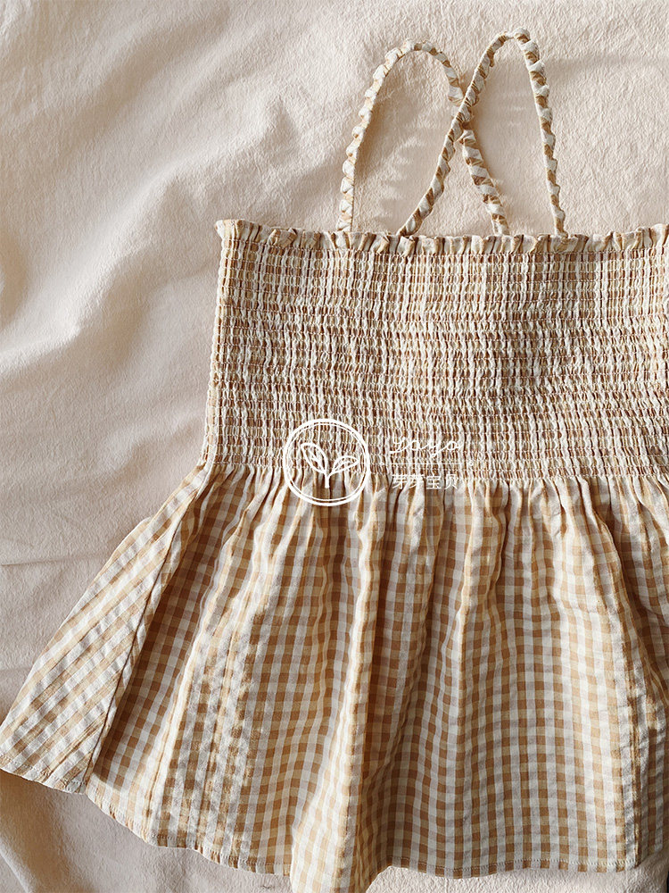 3 кусочки 5 Bud Bud Bud Bud Bud Buotoni Konges Spring и Summer's Baby прогрессивный Свободный клетчатый Платье с краю наноса