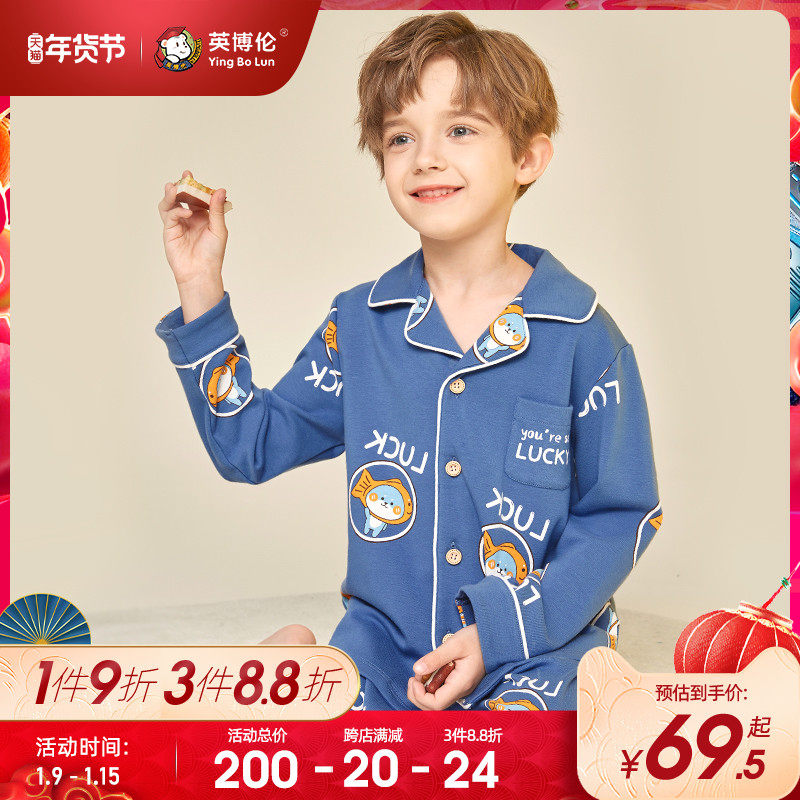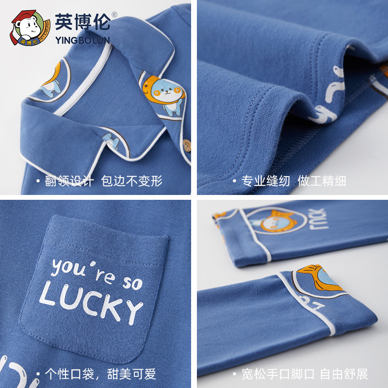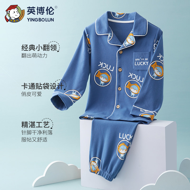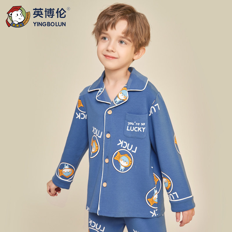 Британец демисезонный детские пижама чистый хлопок длинный рукав на мальчика Домашняя служба большие дети мужской ребенок полностью хлопок Тонкий стиль кардиган комплект
