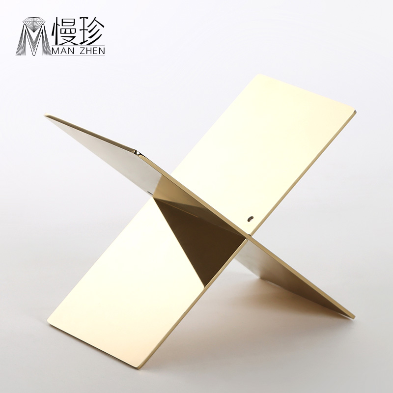 В настоящее время поколение Легкая роскошная нержавеющая сталь золотой Журнал книжная полка настольный орнамент орнамент панель Мягкий стиль