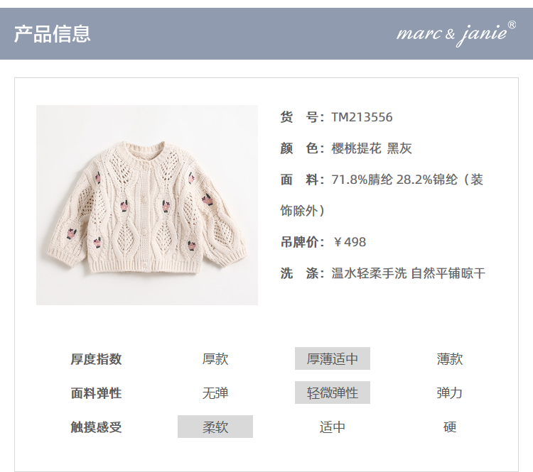Марк Дженни 2022 Весенняя вишня жаккарда на девочку трикотажный кардиган демисезонный детские Свитер 213556.