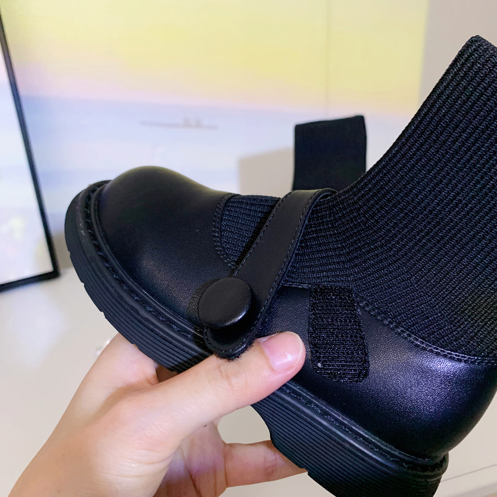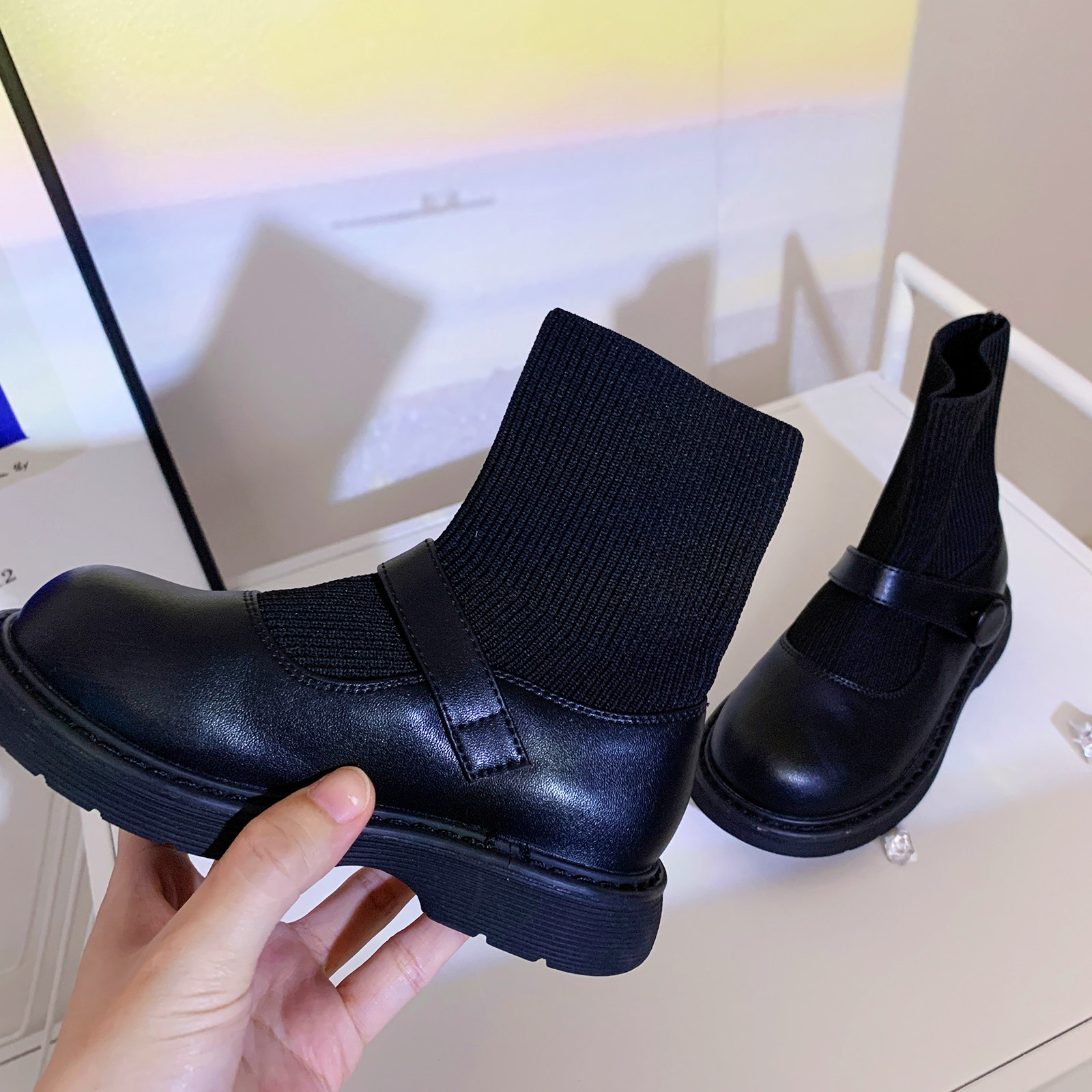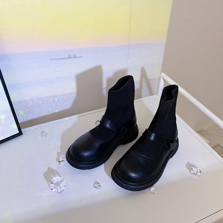 На девочку Носки сапоги 2021. демисезонный время года новая коллекция винтаж детские Обувь сетка красный черный ботинки детские Небольшой кожаная обувь