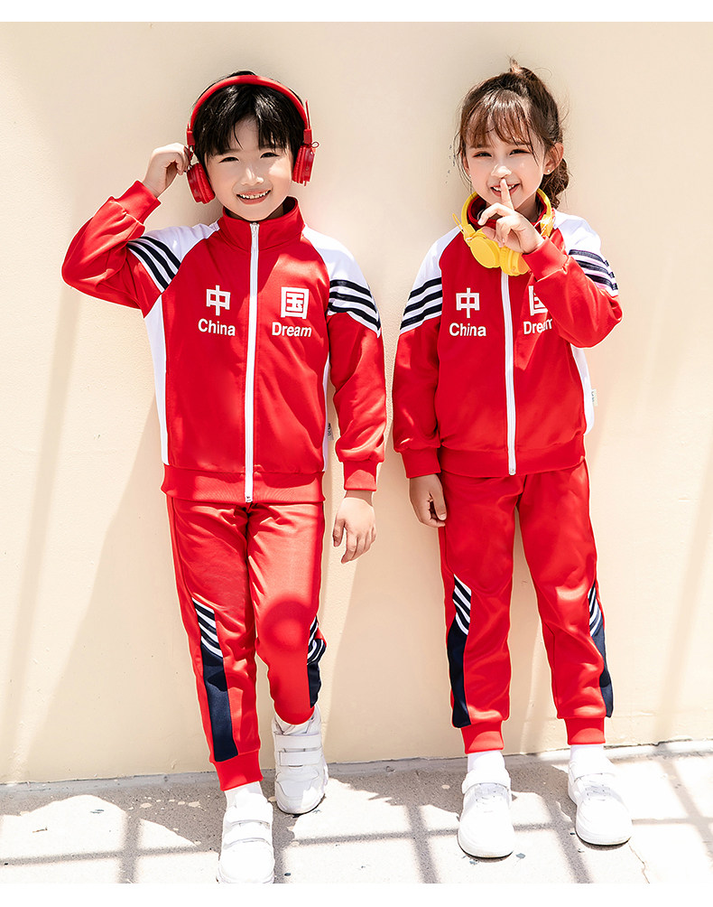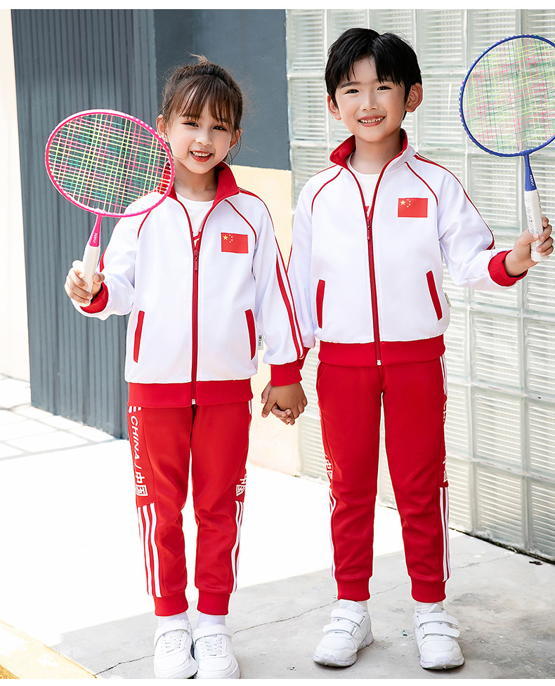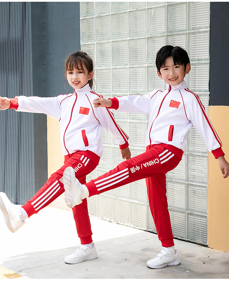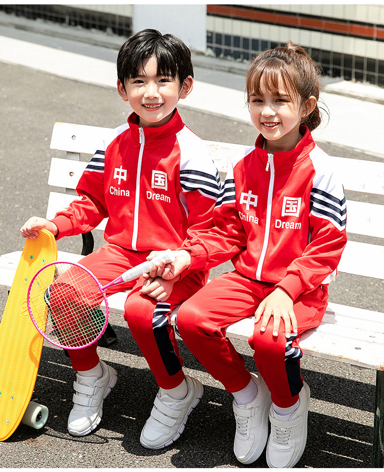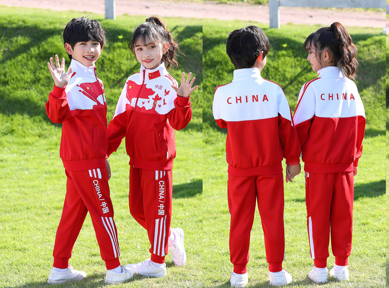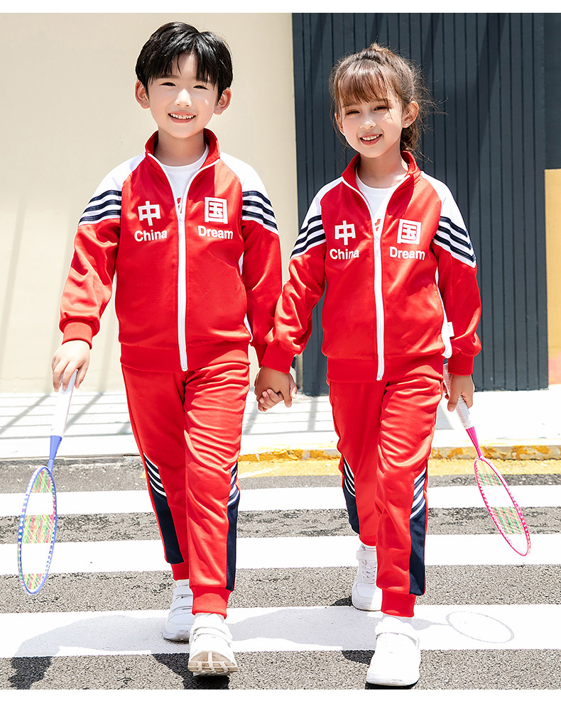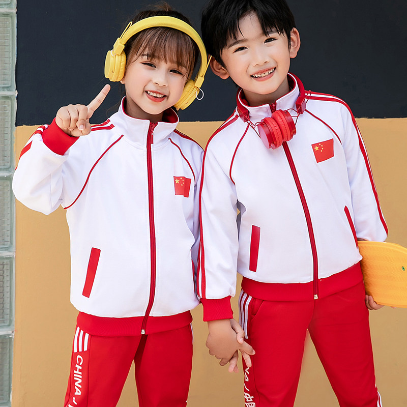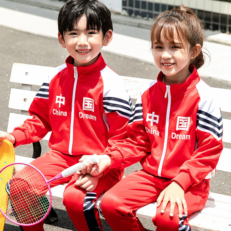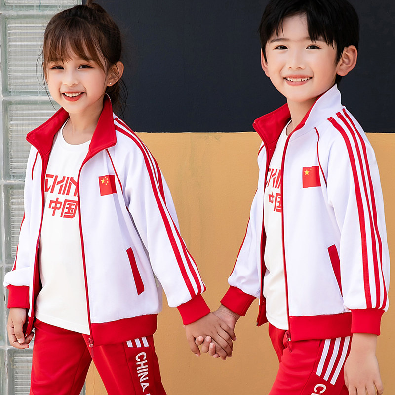 Китайский ветер и сад ядра демисезонный Установите начальную школьную форму детские Спортивная одежда 3 накладки Пакет красный белый Услуги класса