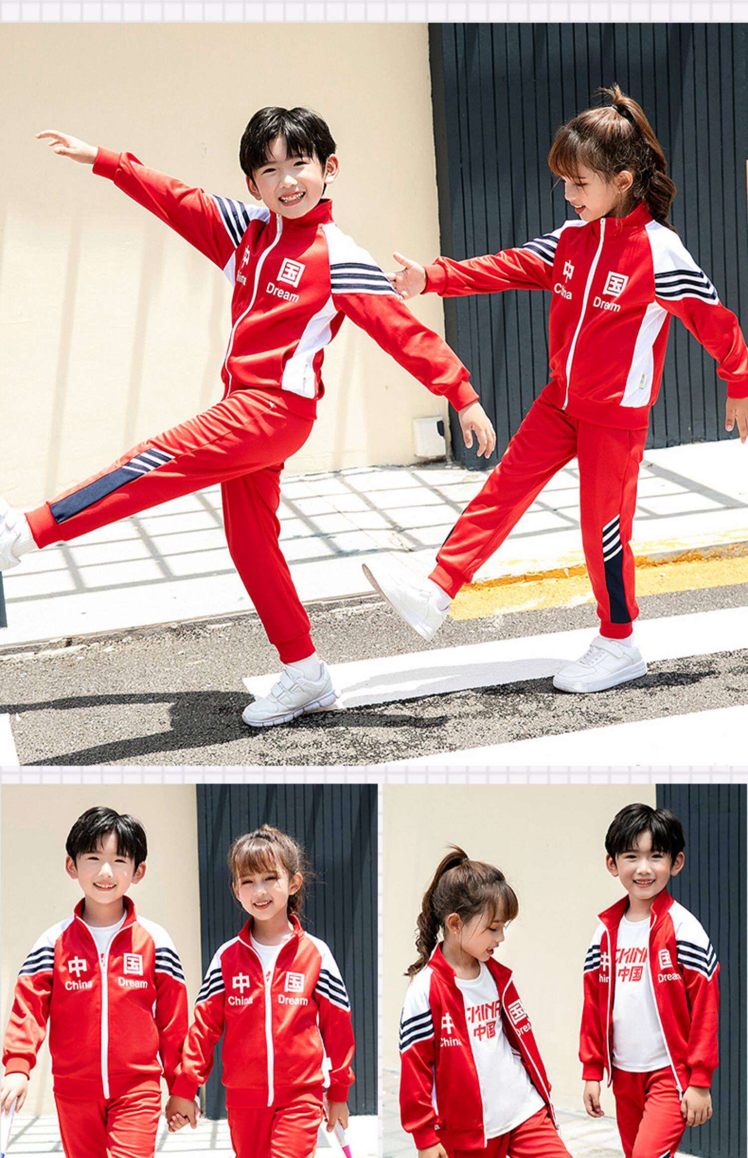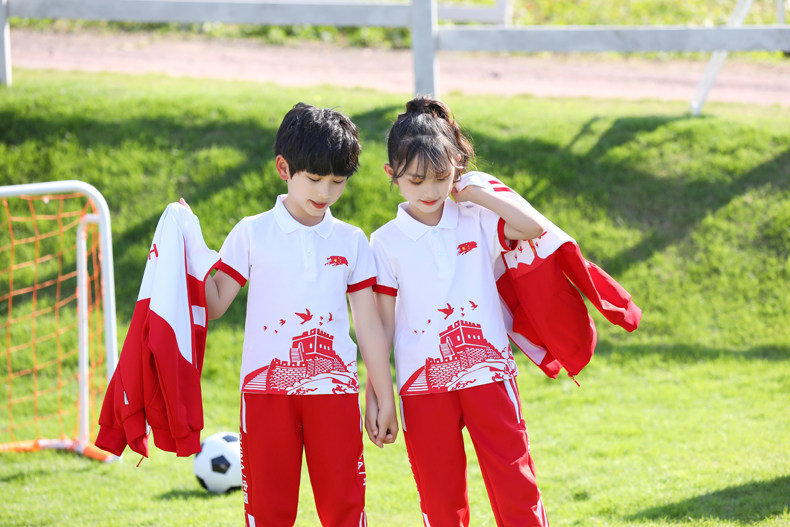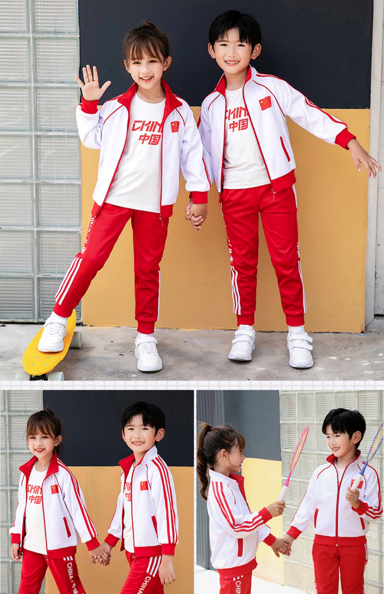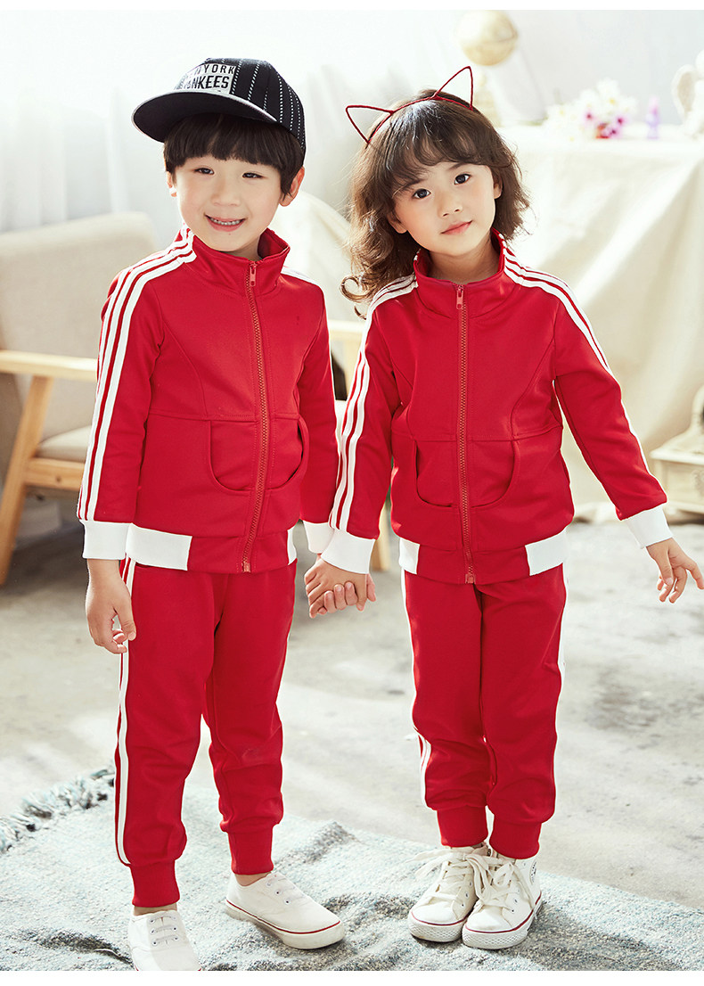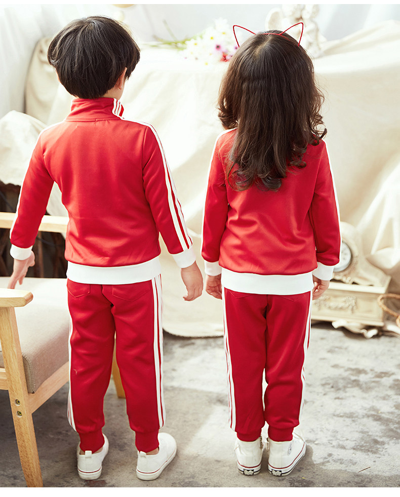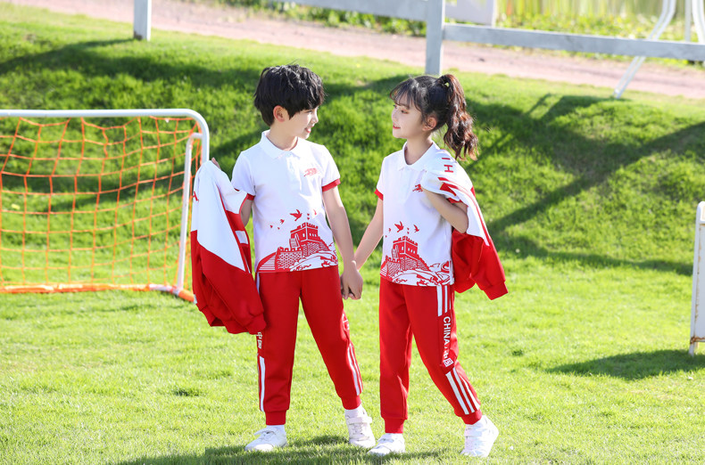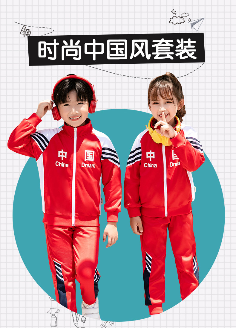 Китайский ветер и сад ядра демисезонный Установите начальную школьную форму детские Спортивная одежда 3 накладки Пакет красный белый Услуги класса