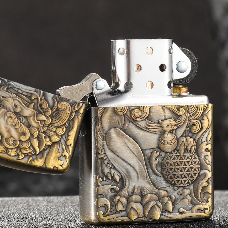 Оригинал в оригинальной упаковке Зиппо легче есть версия Жубао чистый медный анти-ветровый шлем Лев Гортензия мужской Коллективное креативность