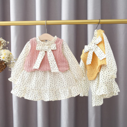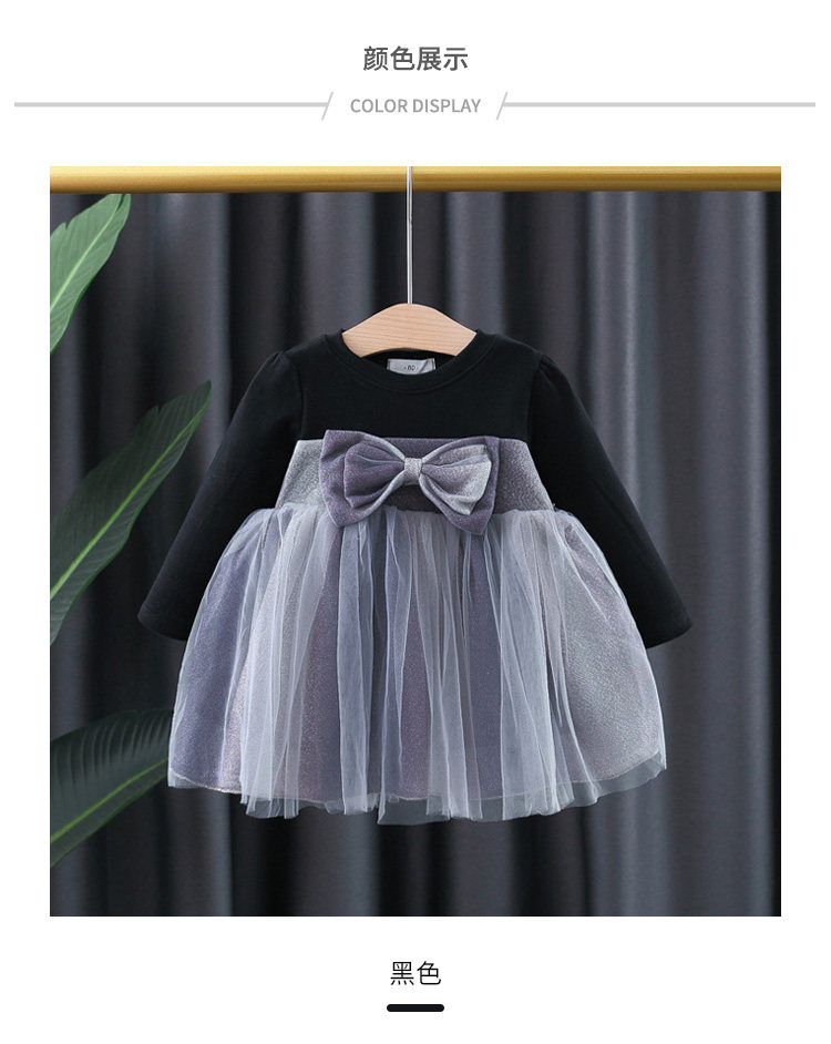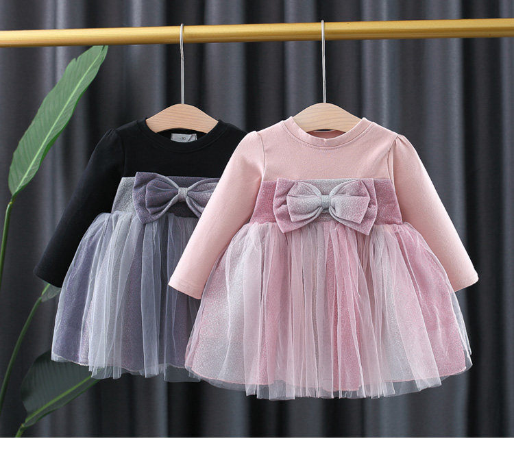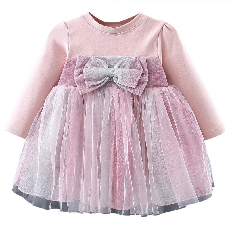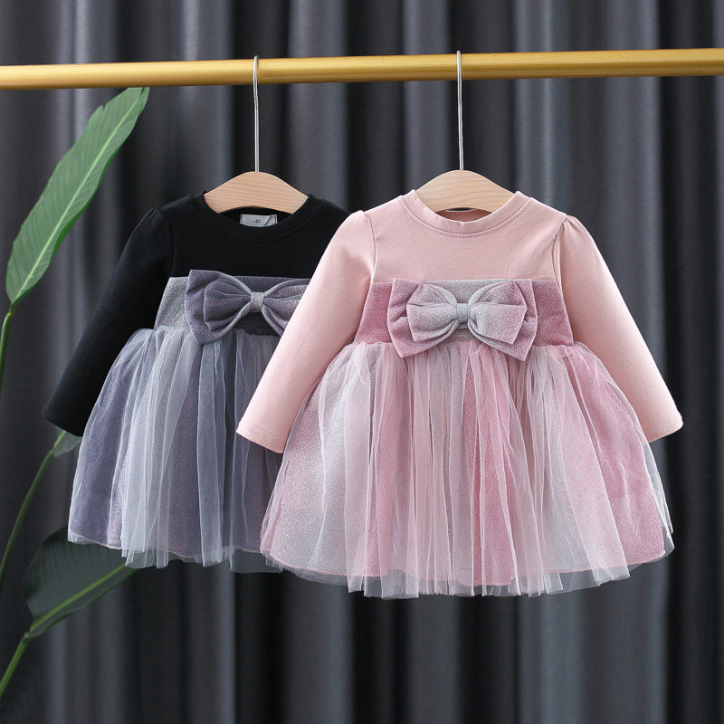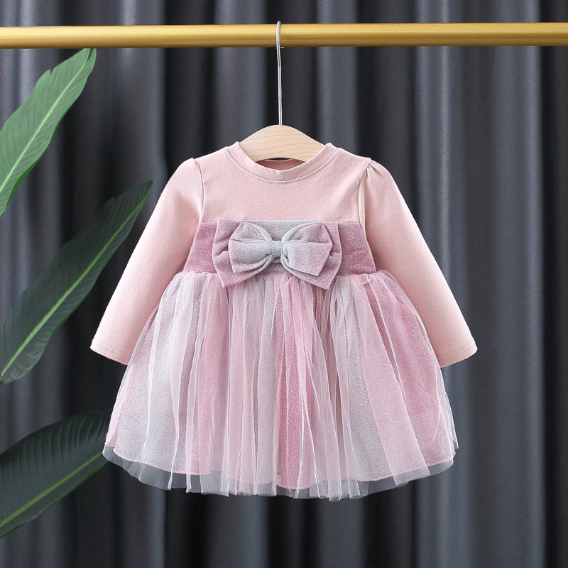 На девочку платье демисезонный стиль детские малышка длинный рукав бантики Пряжа лапши для маленькой принцессы Юбка детские Осенняя одежда