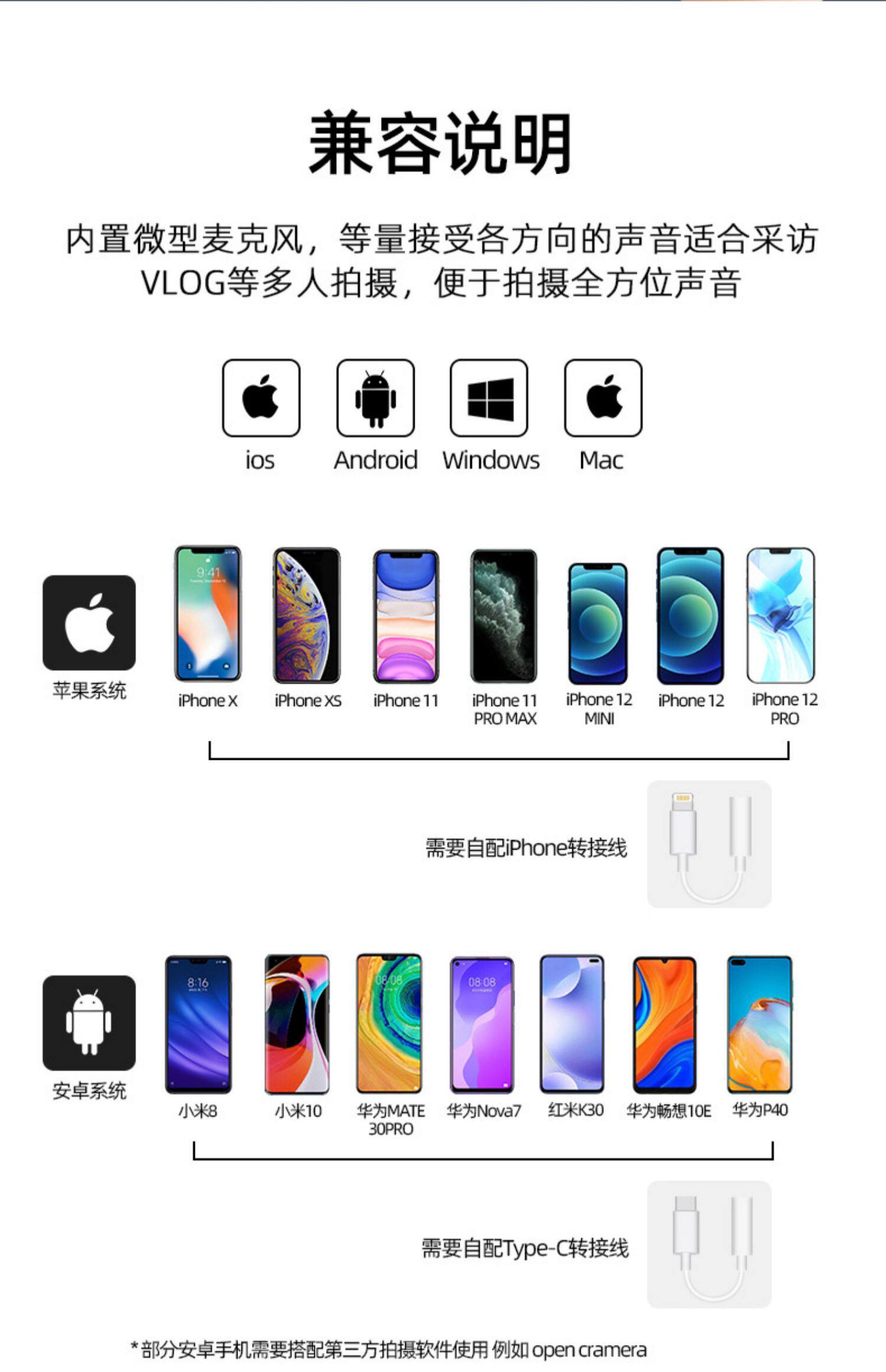 Без Просмотр мобильного телефона линии микрофона микрофона частота Класс сети в прямом эфире для Оборудование для камеры Vlog Little Bee iPhone Apple синий Снижение шума зубной пшеницы, перетаскивая два, чтобы съесть микрофон