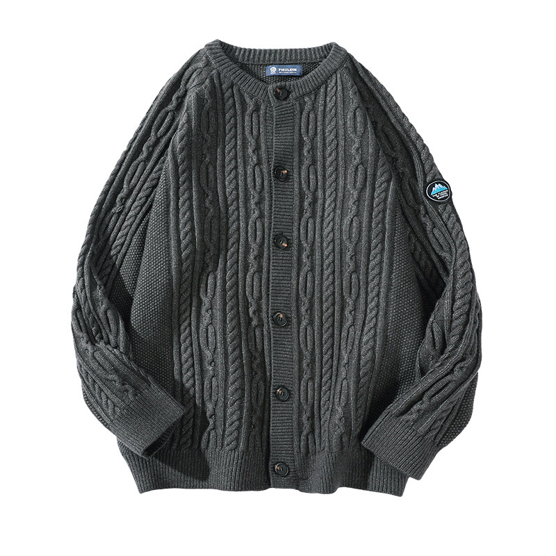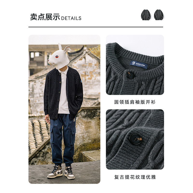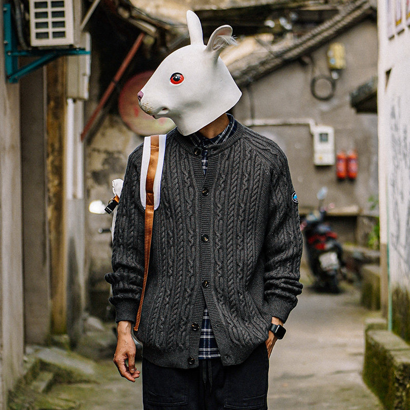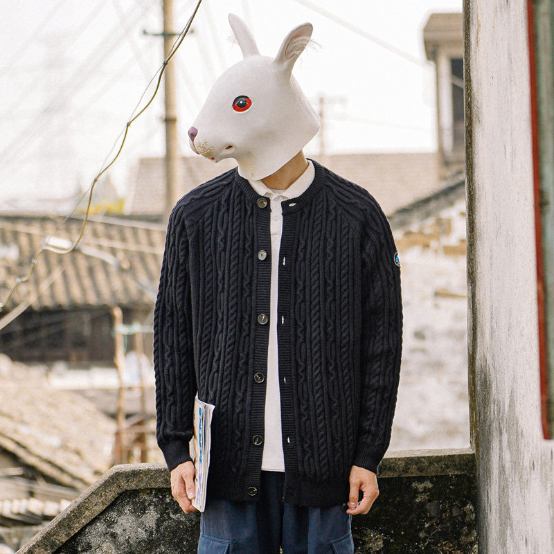Кролик сен домашний демисезонный Крутить кардиган мужской трикотажный куртка Японский винтаж черный Свободный для отдыха корейская версия свитер