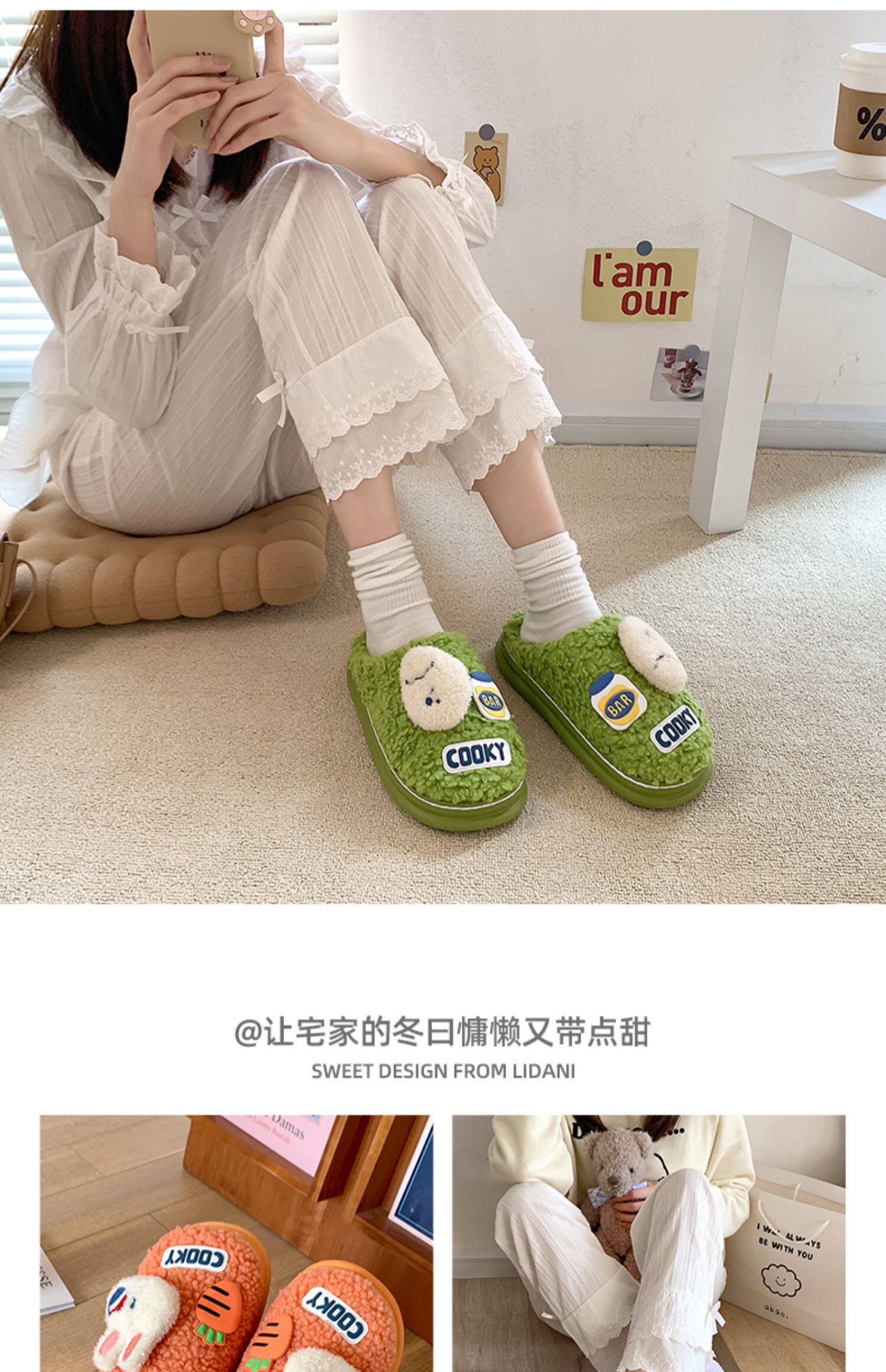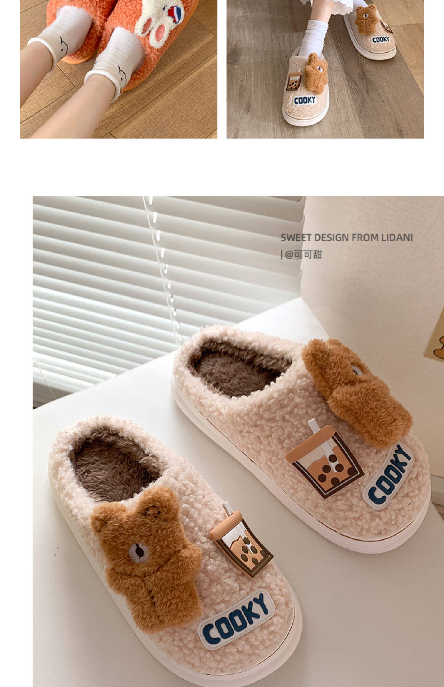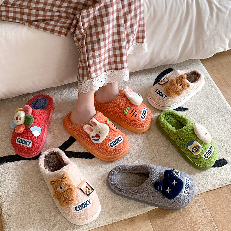 Съемный маленький цветок хлопок тапки Женская зима крытый милый 2021 новая коллекция домашние С мехом тапки осень-зима время года